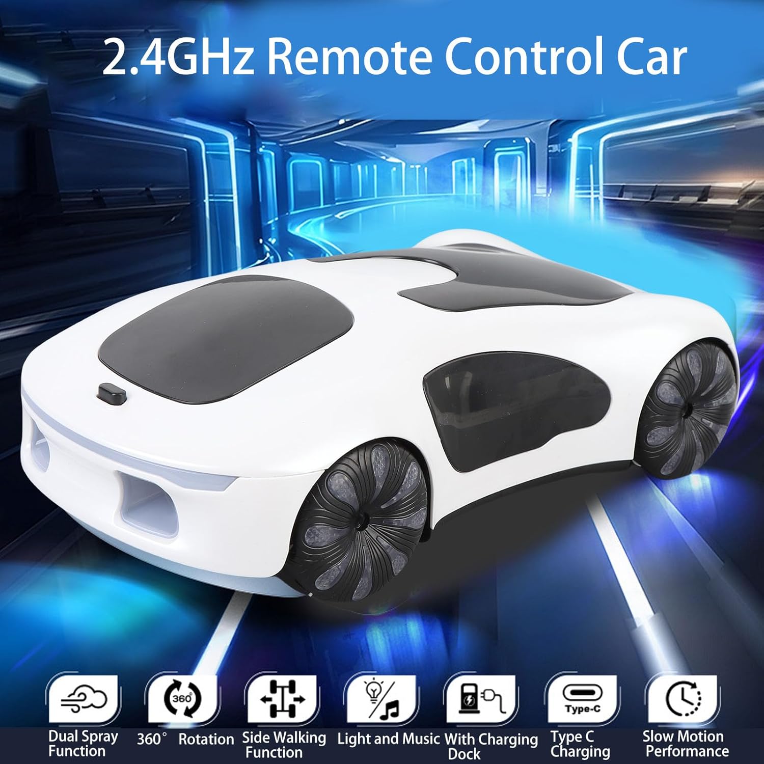 Luci di esecuzione: con un design di luce in esecuzione con quattro modalità di illuminazione, questa auto Drift RC può lampeggiare in condizioni di scarsa illuminazione, aumentando sia la sicurezza che l'attrazione durante le avventure notturne. musicale costruito: goditi un'esperienza di guida più piacevole con il musicale incorporato che ti consente di suonare i tuoi brani preferiti, rendendo ogni divertente e vivace. Funzione a doppia nebbia: il design a doppia nebbia rilascia un vapore acqueo durante la guida, aggiungendo un effetto divertente e visivamente attraente al tuo gioco RC, rendendo ogni gara più eccitante. RC Drift Car: questa innovativa auto di controllo remoto offre potenti dinamiche e capacità di derivante eccezionale, offrendo un'esperienza di guida entusiasmante che piacerà ai cercatori. Acrobazia pronta: questa auto giocattolo RC supporta una varietà di grandi difficoltà a guidare manovre e acrobazie, permettendoti di sfidare te stesso mentre ti diverti, rendendolo ideale per i cercatori!