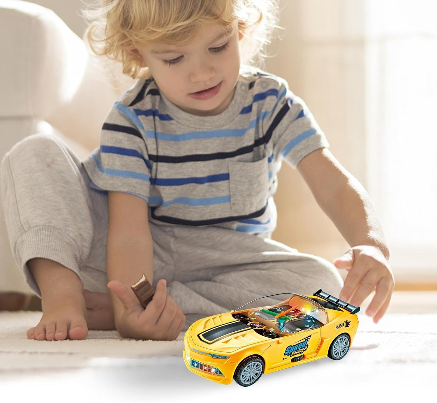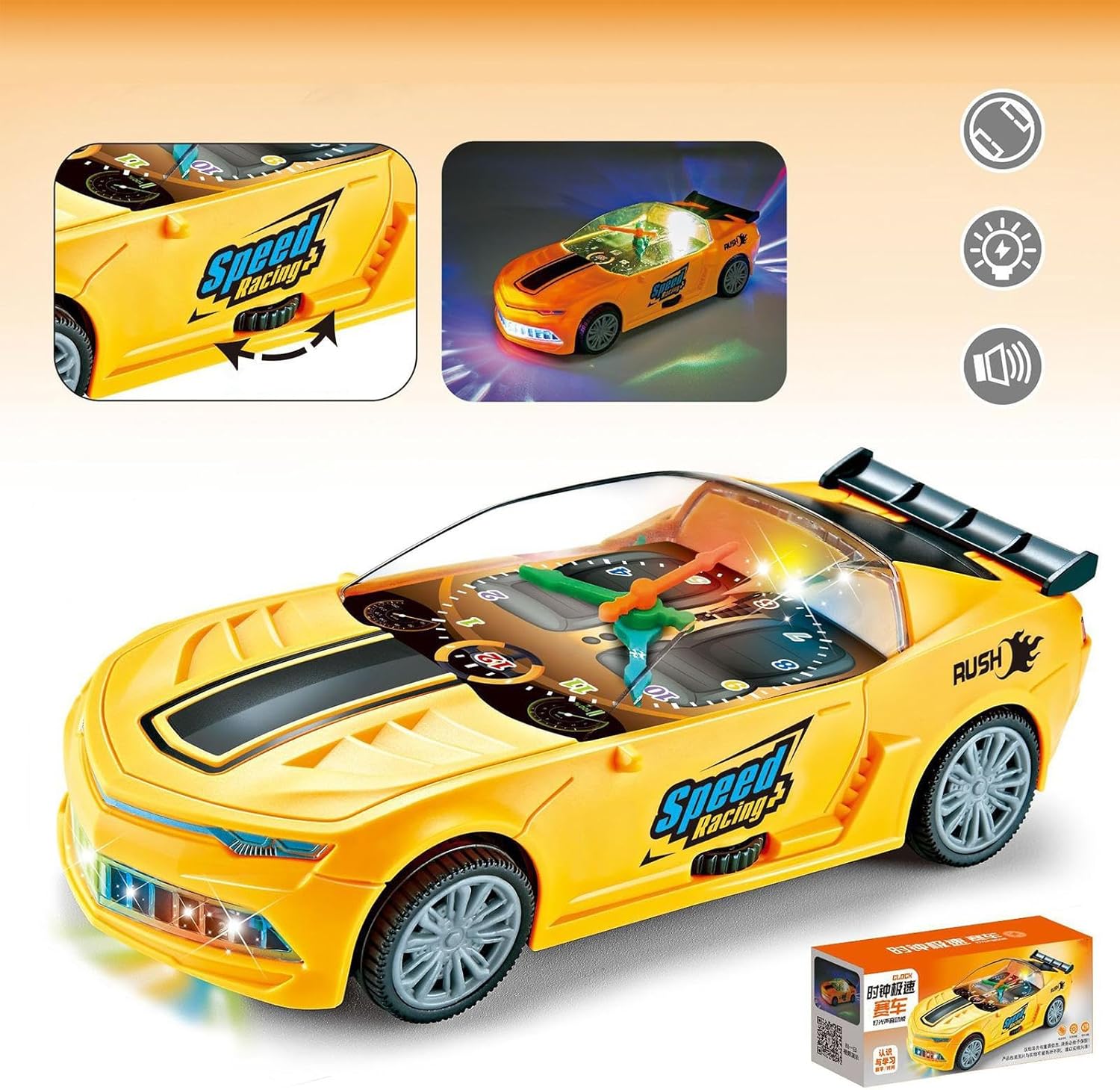 Migliora l'apprendimento: il nostro innovativo giocattolo per auto elettrica offre una divertente funzione orologio, rendendolo un giocattolo educativo e interattivo. Può insegnare ai bambini a conoscere il mentre giocano, aumentando l'interattività e il significato educativo di questo giocattolo Effetti luminosi e musicali: lascia che i bambini si godano una festa audiovisiva mentre giocano, poiché è dotato di luci colorate e musica piacevole per attirare l'attenzione dei bambini e creare un'atmosfera di gioco Controllo flessibile: lascia che i bambini sperimentino il divertimento del controllo flessibile con questa auto elettrica giocattolo, dotata di azionamento elettrico che garantisce avventure di gioco fluide ed emozionanti Protezione garantita: con il suo design di sicurezza e i bordi lisci, la nostra auto elettrica fornisce una struttura robusta realizzata con materiali sicuri e sani per la massima protezione del bambino durante il gioco Ampiamente usato: combinando design e funzionalità unici, questa auto elettrica è perfetta per i giovani interessati alla meccanica e all'elettronica, offrendo un'esperienza educativa adatta a tutte le età