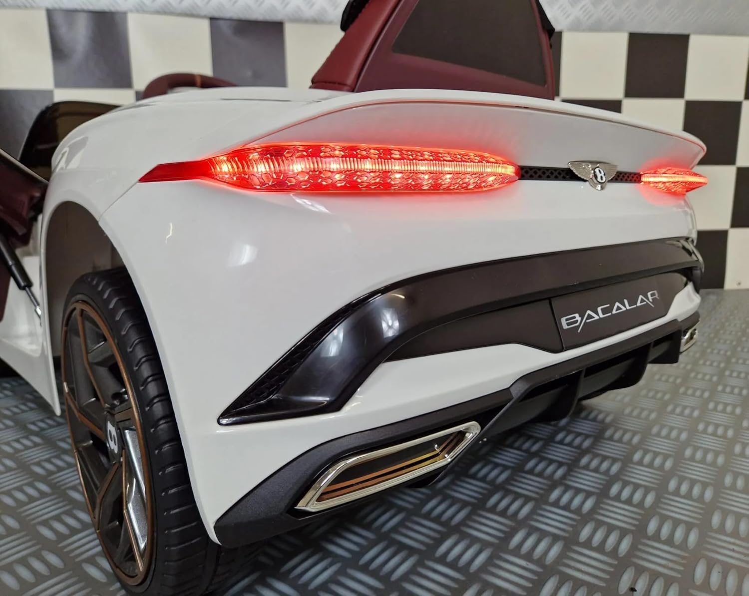 Tensione 12 volt 7 AH Età consigliata da 1 a 5 anni. 2.4 GRC, avvio morbido Sì Numero di motori 2 x 12 V Telecomando Sì Cerchi gomma Bluetooth Sì suono / musica Sì Colore bianco Sedile in pelle Sì Cintura di sicurezza cinture a tre punti Peso massimo caricabile 30 kg Velocità massima Circa fino a 5 km/u connessione mp3 Sì connessione USB Sì persone 1 persona Luci Sì Dimensioni L108xW65xH45 cm