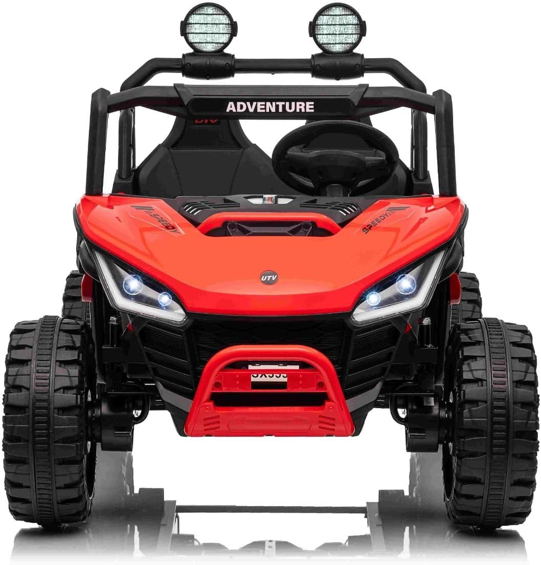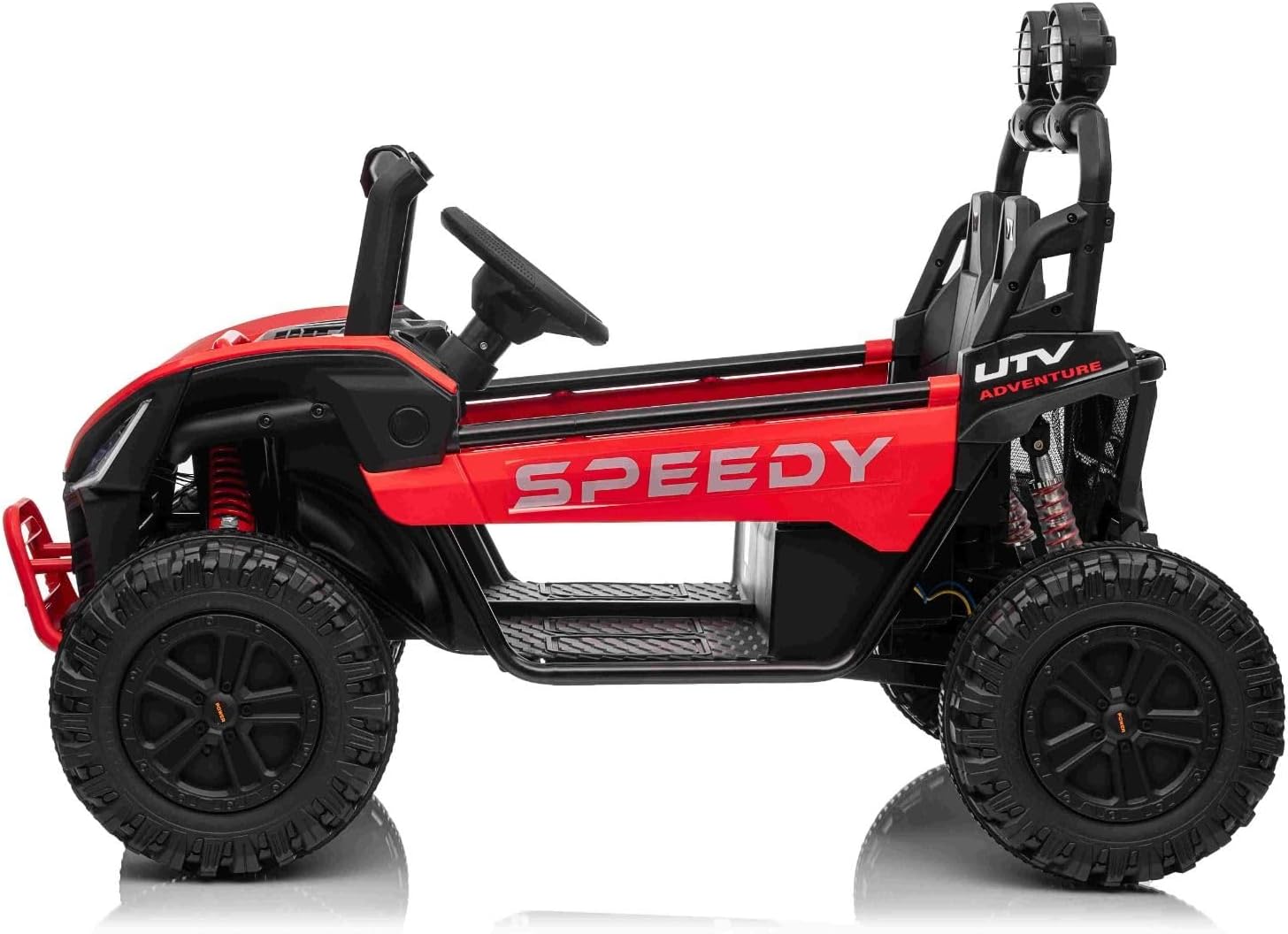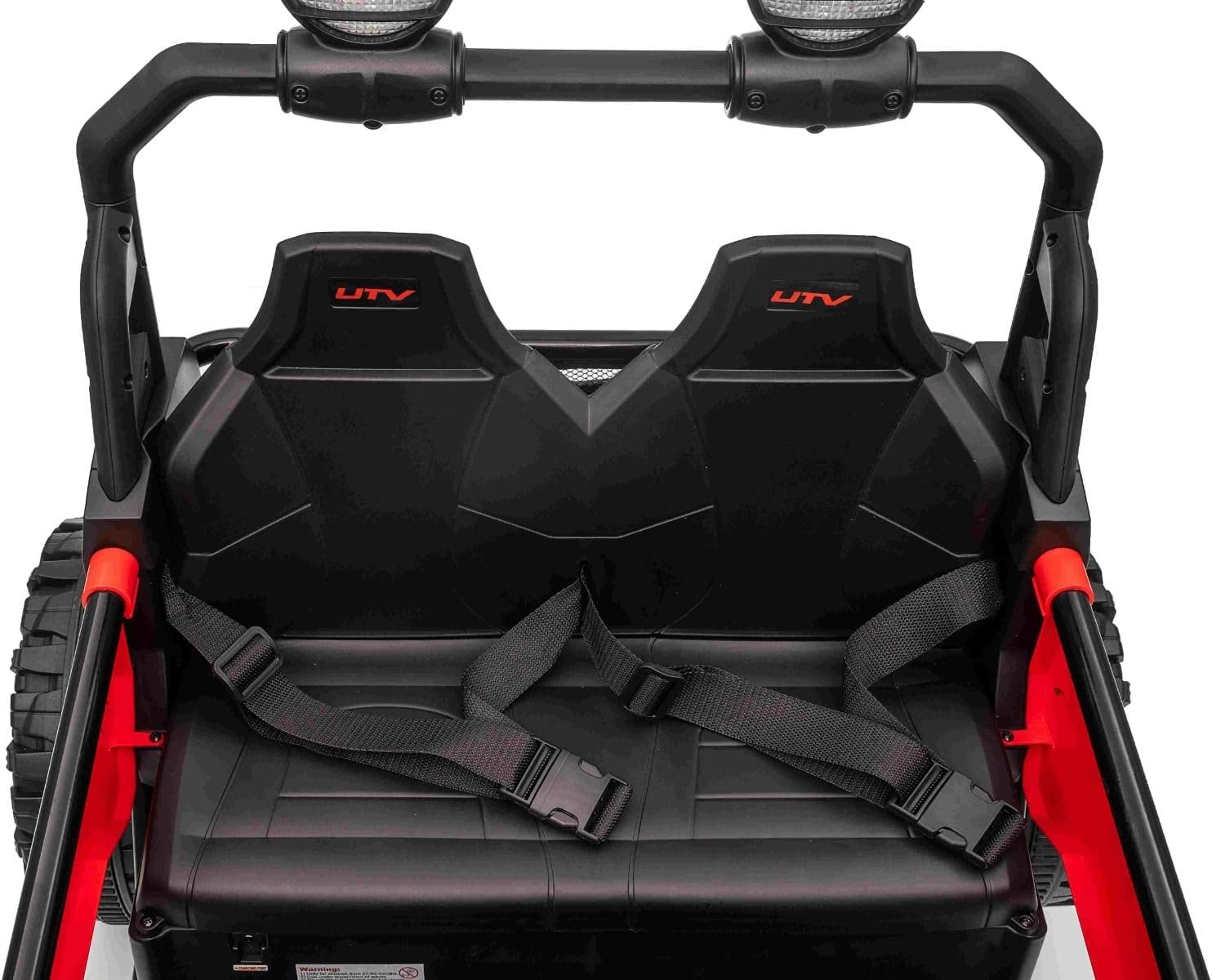 🚗 Auto elettrica per bambini 24V 4×4 trazione integrale - 4 motori da 45 W ciascuno (180 W di potenza totale), velocità 3-8 km/h, avviamento graduale e freno elettrico automatico per una guida sicura. 👦👧 Auto per bambini a 2 posti da 3-8 anni - dimensioni 123 × 79 × 82,7 cm, peso 27 kg, portata 60 kg (testata fino a 80 kg), robusta struttura in metallo, porte apribili, vano portaoggetti posteriore. 🔋 Batteria al litio 21,6 V / 5 Ah: ricarica rapida in 4-5 ore, tempo di guida fino a 3,5 ore, fino a 1000 cicli di ricarica, 70% più leggera delle batterie al piombo, più potenza e maggiore durata. 🎮 Telecomando da 2,4 GHz per genitori - funzione di frenata di emergenza, selezione della velocità (alta/bassa), visualizzazione della modalità di guida sul telecomando, pieno controllo parentale del veicolo per bambini. 💥 Veicolo fuoristrada per bambini con sospensioni: trazione 4×4, elevata altezza da terra, grandi ruote ammortizzate e sospensione dell'asse posteriore per una guida silenziosa anche su terreni irregolari. 🎶 Illuminazione multimediale e LED: LED anteriori e sul tetto, illuminazione del cofano, clacson, suoni del motore, volante con canzoni per bambini, lettore MP3 integrato con USB/AUX. 🛡️ Sicurezza e comfort nell'auto per bambini - Cintura di sicurezza regolabile, freno elettrico, avviamento graduale, indicatore del livello della batteria sul cruscotto, comfort di seduta di alta qualità.