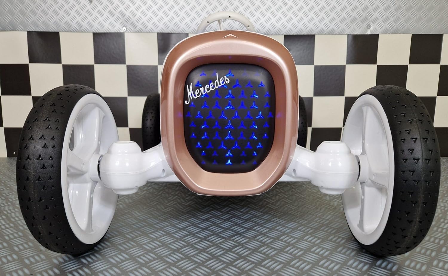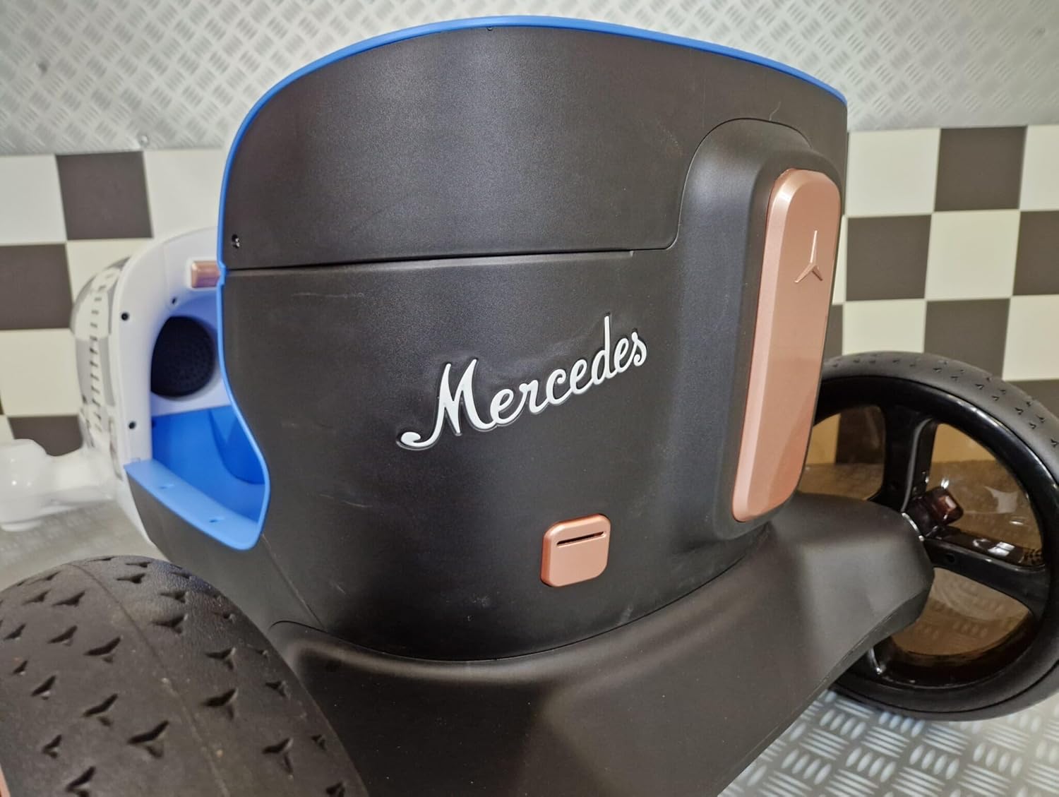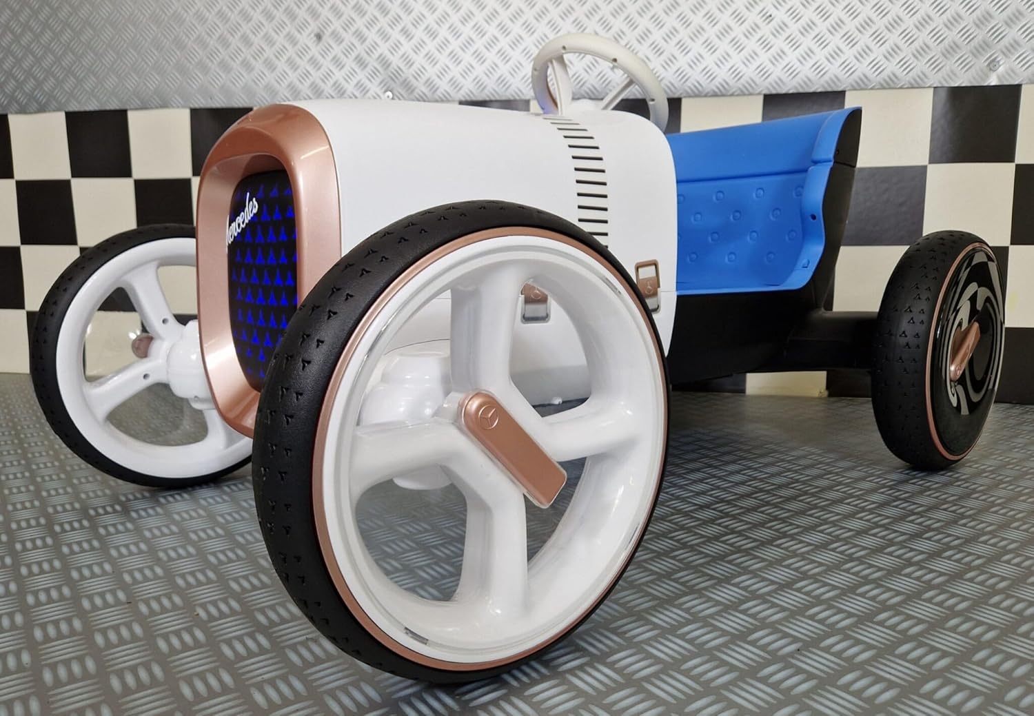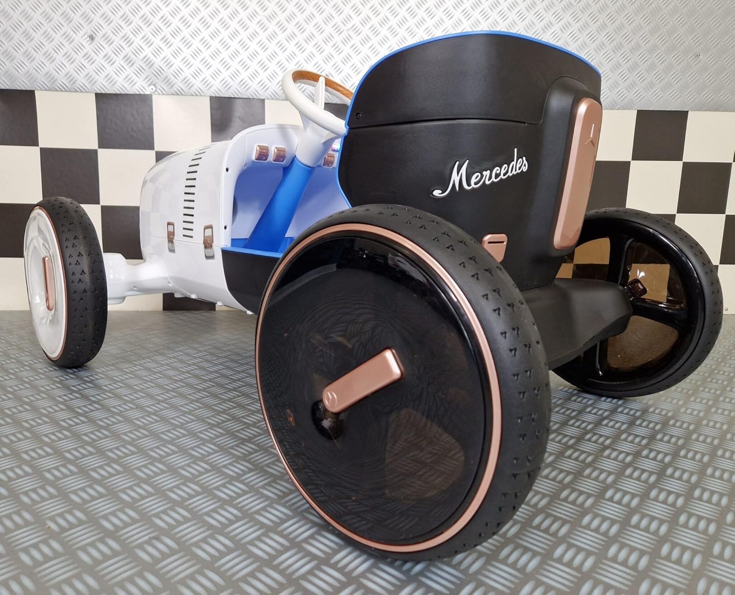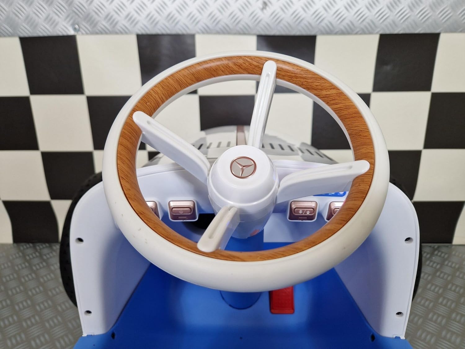 Tensione 12 volt 7 AH Età consigliata da 3 a 7 anni. Velocità massima da 3 a 6 chilometri 2.4 GRC, avvio morbido Sì Telecomando Sì Dimensioni L121xB72.5xH59 cm Suono/Musica Sì Bluetooth Sì Numero di motori 2 motori connessione USB Sì Luci Sì Peso massimo caricabile 50 kg persone 1 persona Cerchi EVA