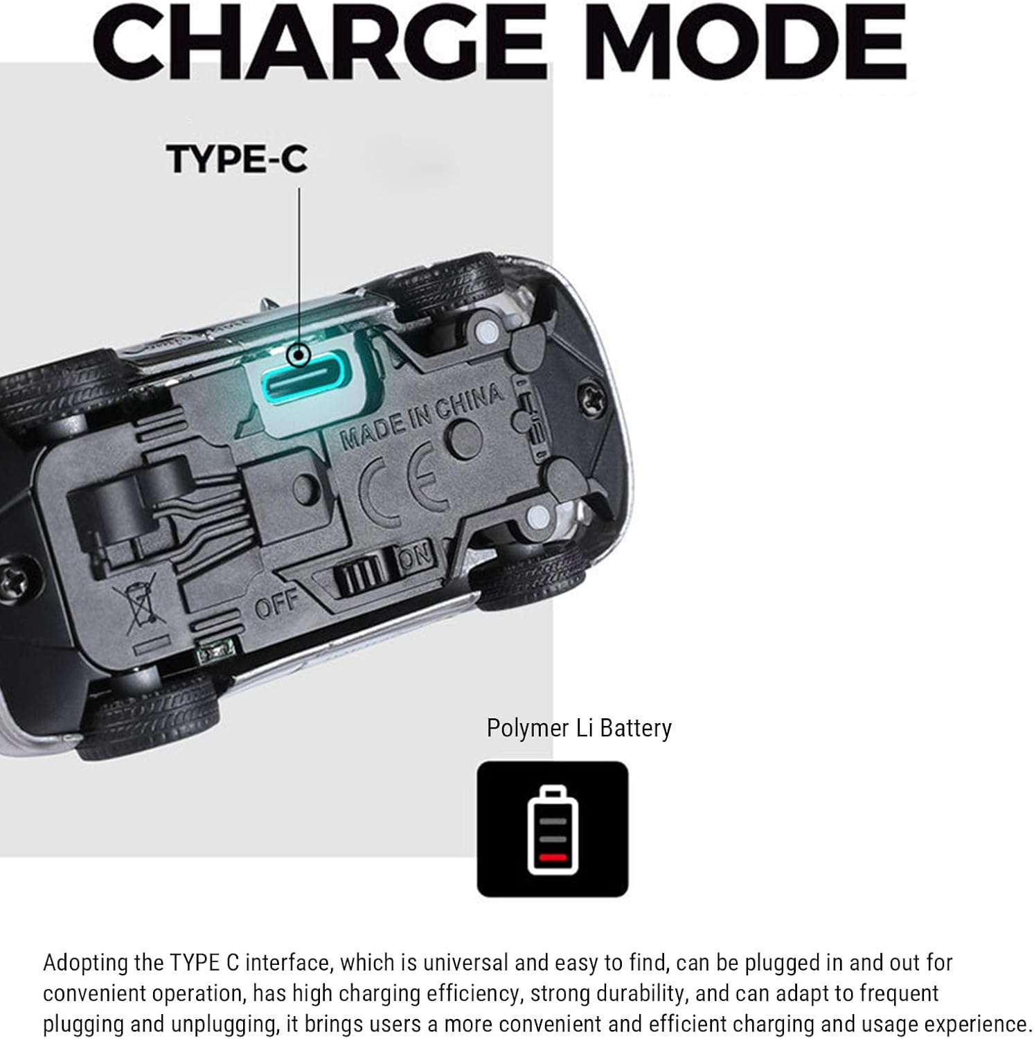1:64 Design compatto: con una mini scala 1:64, questa auto di deriva del telecomando FPV è perfettamente dimensionata per gli spazi interni. Eccelle a turni e inversioni a U, permettendoti di sfregare i mobili (ad es. Tavoli, sedie) con precisione. La costruzione compatta non lo rende ideale per l'uso domestico, ma anche facile da conservare o trasportare. Strong trazione e stabilità: dotato di pneumatici ad alte prestazioni e un di sospensione avanzato, questa mini auto RC offre potenti prestazioni su varie superfici interne. I pneumatici forniscono una trazione eccezionale, prevenendo lo scivolamento o lo slittamento, mentre la sospensione assorbe i dossi. Trasmissione video in tempo reale: con una fotocamera FPV HD integrata, i flussi di auto dal vivo, chiara video direttamente sul tuo smartphone/tablet tramite un'app dedicata. La trasmissione in tempo reale ti consente di catturare ogni momento emozionante e puoi persino registrare video/foto per condividere le tue migliori gare o esplorazioni con gli amici. Coinvolgimento dell'esperienza di corse multiplayer: progettata per divertimento competitivo, questa auto alla deriva supporta il gioco multiplayer (grazie alla tecnologia anti-interferenza da 2,4 g): le auto molteplici possono correre contemporaneamente senza sovrapposizioni di segnale. Raccogli amici o familiari per emozionanti competizioni testa a testa e usa l'app per registrare momenti pieni di azione. Dual Control (Remote & App): utilizzare l'auto senza sforzo tramite il telecomando incluso (con pulsanti intuitivi per direzione, velocità e modalità) o l'app, con la priorità remota per la reattività immediata. Ideale per gli utenti che preferiscono i controlli tradizionali o vogliono utilizzare il proprio telefono per funzionalità extra.