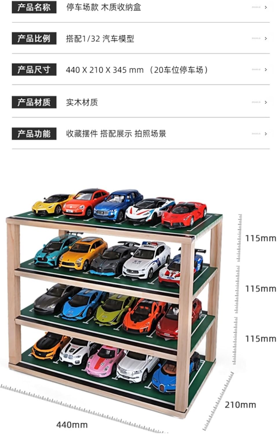 1:32 parcheggio/modello di auto espositore scena garage sotterraneo scatola di raccolta di auto giocattolo in lega Il parcheggio è realizzato in legno massiccio e può essere posizionato nell'armadio come decorazione Il parcheggio multipiano e multiparcheggio consente di posizionare in modo ordinato i modelli di auto il modello di parcheggio ha un design fai-da-te. Puoi regolare il numero e la disposizione dei parcheggi in base alle tue preferenze ed esigenze, aumentando il divertimento del gioco. vetrina simulata per parcheggio in scala , ideale per esporre auto sportive e modelli di auto giocattolo da collezione.