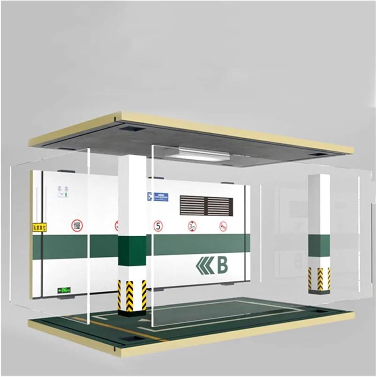 Giocattolo regalo di scena di simulazione del garage sotterraneo del parcheggio in scala 1/24 della decorazione del modello della scatola di visualizzazione del modello di auto lega di materiale per auto e materiale plastico ABS, ad alta resistenza e durevole. Simulazione della lavorazione, qualità dell'immagine delicata, non facile da sbiadire. il modello di parcheggio ha un design fai-da-te. Puoi regolare il numero e la disposizione dei parcheggi in base alle tue preferenze ed esigenze, aumentando il divertimento del gioco. vetrina simulata per parcheggio in scala , ideale per esporre auto sportive e modelli di auto giocattolo da collezione.