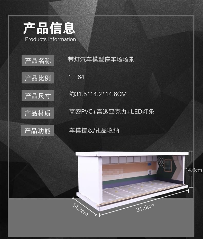 Illuminazione PVC 1:64 modello di auto parcheggio simulazione garage sotterraneo scena scatola di immagazzinaggio espositiva antipolvere Scena di parcheggio a tema, scena del modello di simulazione, ricchi dettagli interni per ripristinare il reale Design di assemblaggio semplice con dettagli funzionali completi, concetto di design, stili diversi, per offrirti scelte e sensazioni diverse. il modello di parcheggio ha un design fai-da-te. Puoi regolare il numero e la disposizione dei parcheggi in base alle tue preferenze ed esigenze, aumentando il divertimento del gioco. vetrina simulata per parcheggio in scala , ideale per esporre auto sportive e modelli di auto giocattolo da collezione.