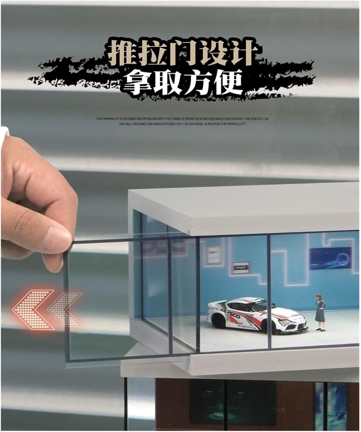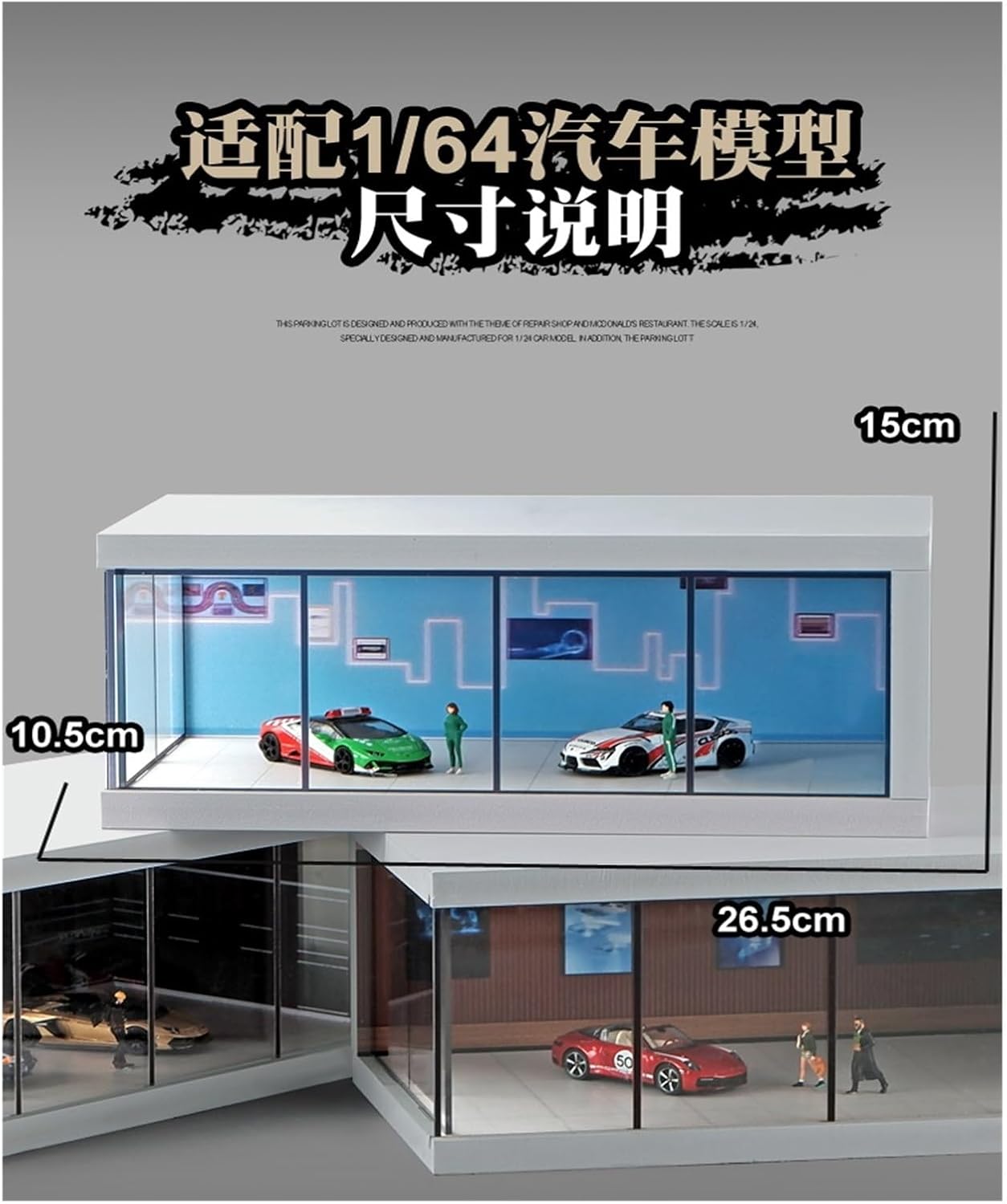 Scena del garage della sala espositiva modello di parcheggio 1:64 con ornamenti per espositori antipolvere per deposito auto leggero Costruisci il tuo laboratorio con modellini di bambole risalenti a 164 anni fa e illumina la scena con i pulsanti luminosi integrati Puoi impilarli e posizionarli nel fai-da-te del tuo garage e il design della porta scorrevole è facile da prendere il modello di parcheggio ha un design fai-da-te. Puoi regolare il numero e la disposizione dei parcheggi in base alle tue preferenze ed esigenze, aumentando il divertimento del gioco. vetrina simulata per parcheggio in scala , ideale per esporre auto sportive e modelli di auto giocattolo da collezione.