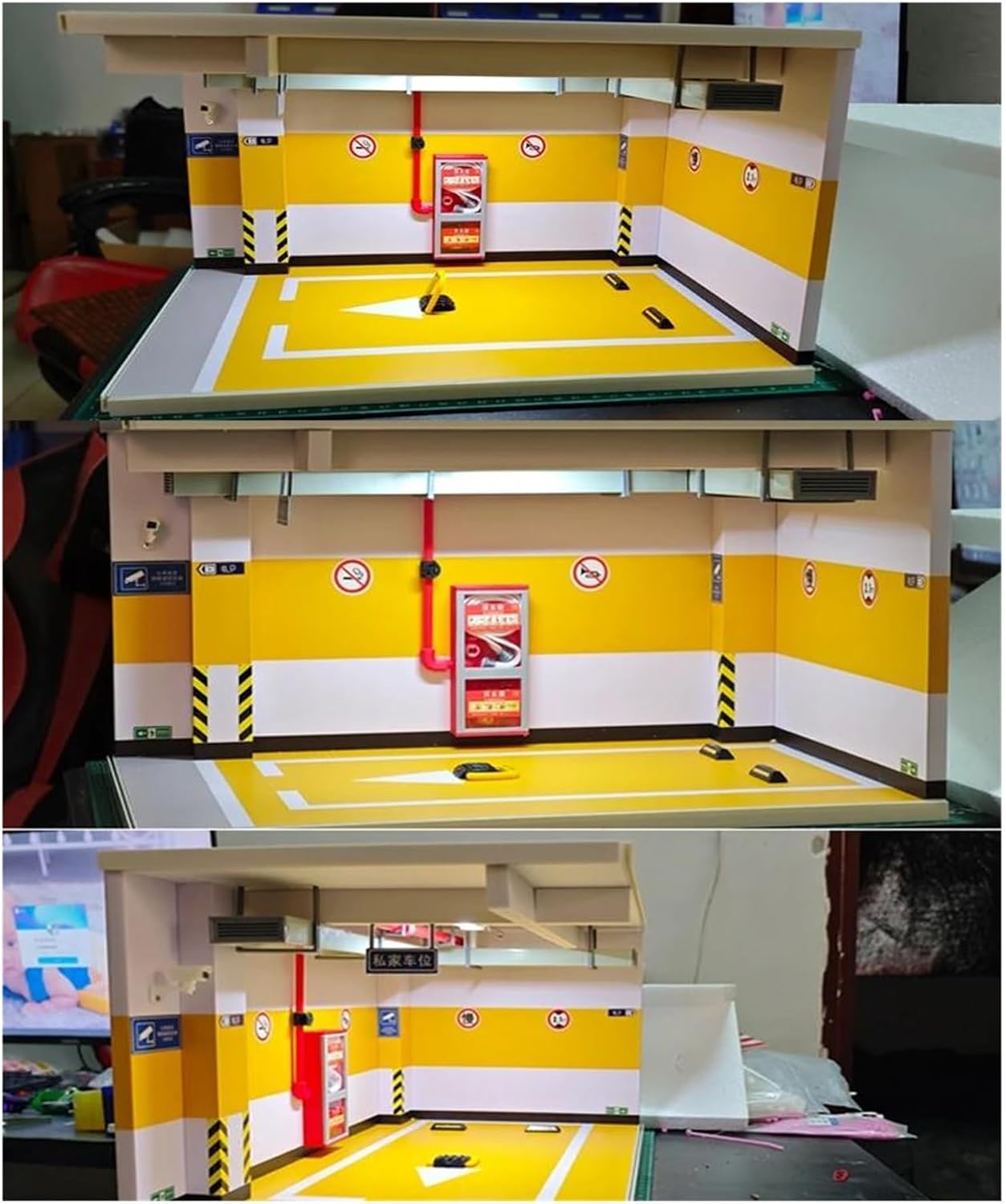 Simulazione Modello di Auto Parcheggio Sotterraneo Scena di Garage Singolo per 1/18 RC per Auto Cingolata per TRX4M per Defender per Bronco struttura in legno, pannello acrilico altamente trasparente, antipolvere, robusto e durevole Fornisci una scena di parcheggio per il tuo modello di auto, un parcheggio unico, consentendo al modello di auto e alla scena di integrarsi tra loro e mostrare il tuo stile il modello di parcheggio ha un design fai-da-te. Puoi regolare il numero e la disposizione dei parcheggi in base alle tue preferenze ed esigenze, aumentando il divertimento del gioco. vetrina simulata per parcheggio in scala , ideale per esporre auto sportive e modelli di auto giocattolo da collezione.