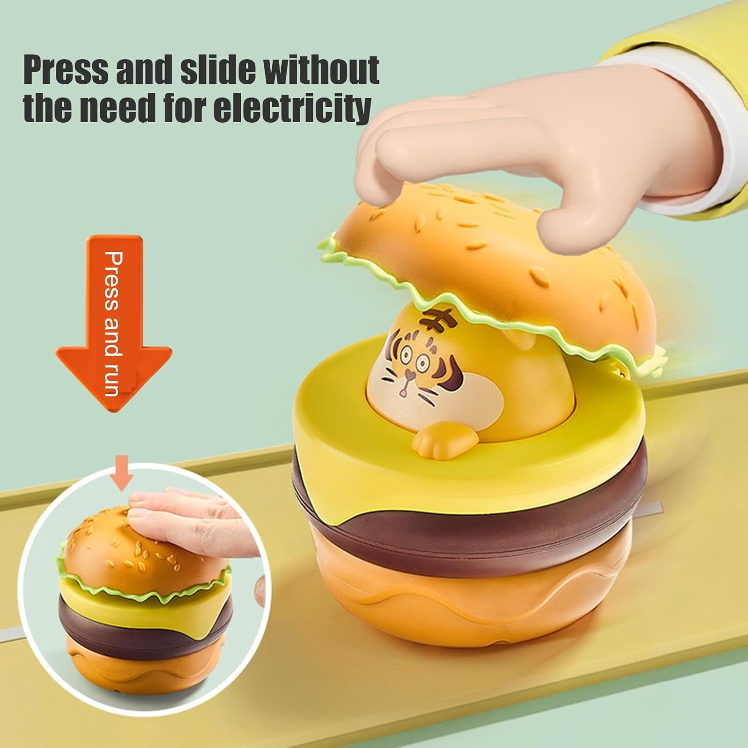 ABS robusto: questa auto a rinculo è progettata per un uso duraturo con materiale ABS sicuro e bordi lucidati a 360 gradi per evitare danni durante il gioco attivo, garantendo un'opzione robusta che il tuo bambino adorerà. Forma creativa di hamburger: con la sua forma di hamburger in stile cartone animato, la nostra auto trainabile cattura l'attenzione dei bambini, accende la creatività e aggiunge divertimento al tempo di gioco. Nessuna batteria richiesta: goditi l'emozione di giocare sempre e ovunque con la nostra auto rimovibile. Utilizzando semplici meccanismi fisici, questo giocattolo scivolerà attraverso qualsiasi ostacolo, portando emozioni infinite ai bambini di tutte le età. Comodo da usare: basta premere delicatamente la parte scorrevole dell'auto, quindi rilasciarla. L'auto scivolerà automaticamente in avanti di una certa distanza, il che faciliterà la sua maneggevolezza. Crescita delle abilità: lascia che il tuo bambino sviluppi una preziosa coordinazione delle mani e una semplice comprensione dei principi della fisica con questa auto interattiva, perfetta per allenarsi divertendosi.