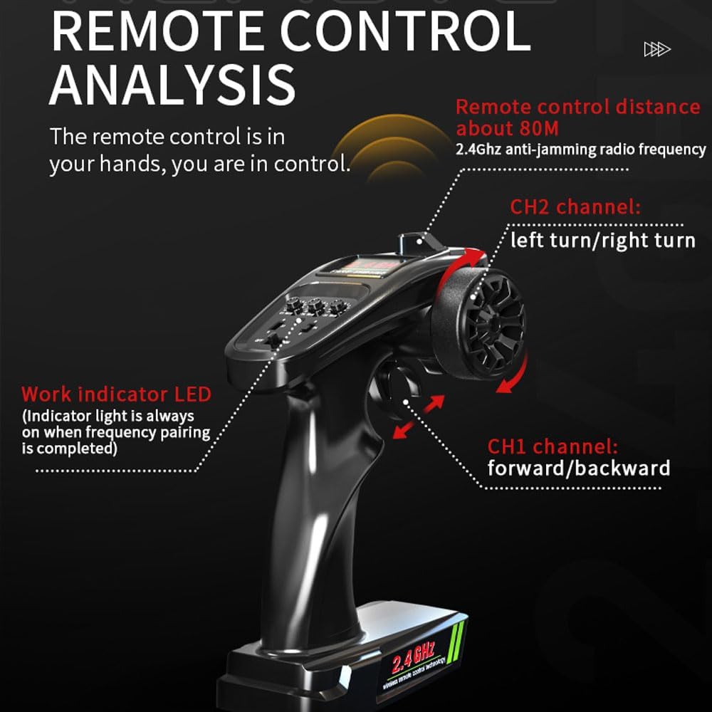 ★Facile da controllare: dotato di controller a 2,4 GHz, il segnale è stabile e senza interferenze. Due o più auto telecomandate possono gareggiare insieme senza causare confusione, migliorando così la controllabilità dell'auto. ★Pneumatici antiscivolo: le ruote in gomma cava sono anticollisione e antiscivolo, riducendo le vibrazioni dell'auto durante la guida. Offrono una migliore presa per l'auto e aiutano anche l'auto a salire in collina e superare gli ostacoli. ★Prestazioni potenti: questa auto radiocomandata è progettata con componenti durevoli, robusti e potenti, appositamente progettati per multi-terreno, nessun problema durante la guida su deserti, tappeti, piastrelle, strade aperte, erba, fango, ecc. ★Esercita le capacità dei bambini: ogni bambino ha un sogno di auto nella sua infanzia. Può sviluppare notevolmente le capacità operative del tuo bambino e, allo stesso tempo, regalargli tante sorprese e divertimento. ★Servizio post-vendita: per qualsiasi domanda, contattaci tramite il sistema di posta di Amazon. Ti risponderemo entro 24 ore e ti forniremo una soluzione soddisfacente.