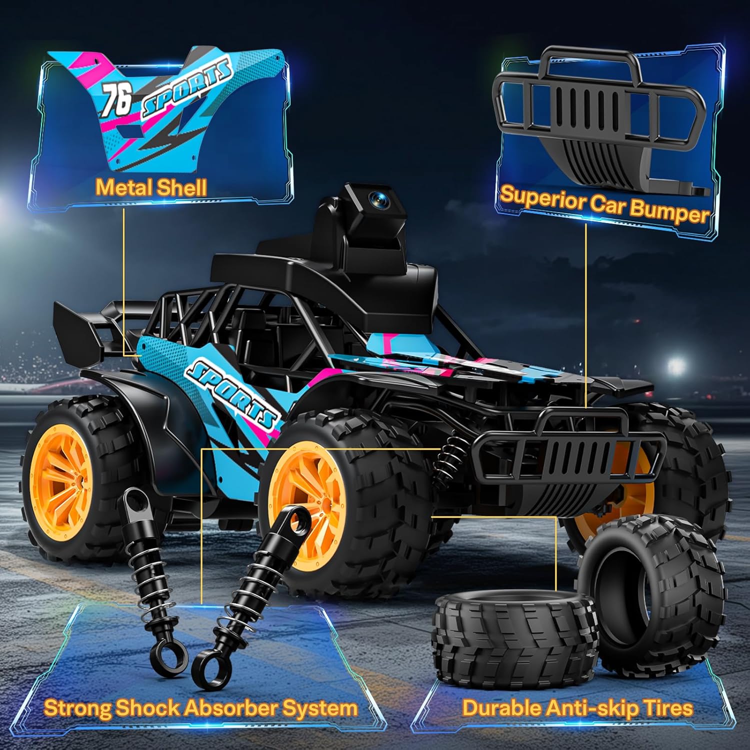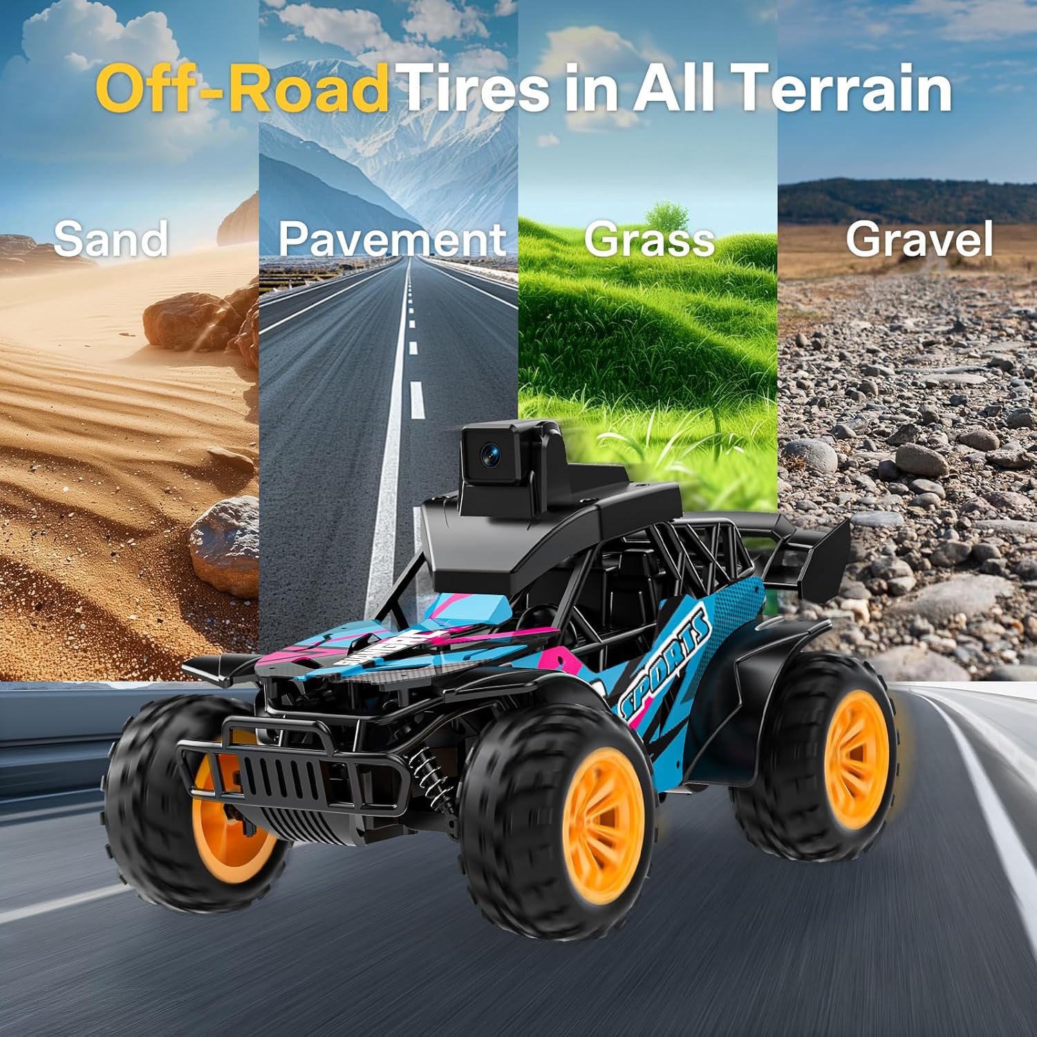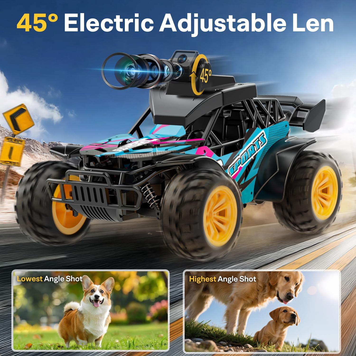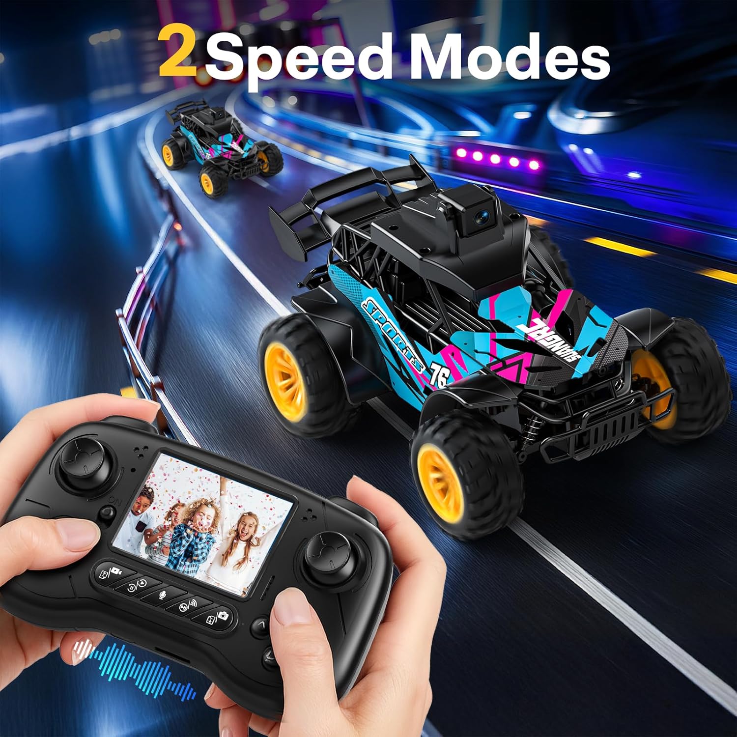 Telecamera FPV HD 2.4GHz: Vivi emozioni in tempo reale con la telecamera regolabile. Il telecomando con schermo da 2,4" visualizza filmati nitidi grazie alla trasmissione 2.4GHz, perfetta per avventure FPV. Truck Tutto-Terreno: Questo RC off-road con gomme robuste e design da truck domina erba, ghiaia e pendenze. Due velocità (8,5 km/h veloce / 4,5 km/h lenta) assicurano controllo totale a bambini e principianti. Auto RC Ricaricabile: La batteria da 600mAh offre oltre 44 minuti di divertimento continuo. Inoltre, l'auto telecomandata include una scheda da 4GB + lettore: registra i tuoi viaggi senza preoccupazioni. Adatto a Tutte le Età: Progettato per adulti e bambini! La modalità lenta aiuta i principianti, mentre quella veloce entusiasma gli esperti. La costruzione robusta resiste agli urti, perfetta come regalo di Natale. Contenuto della Confezione: Ricevi più di un semplice camion telecomandato! Il set C093S include: telecomando 5GHz con schermo, scheda 4GB + lettore e un'auto RC costruita per durare. Ideale per interno ed esterno.