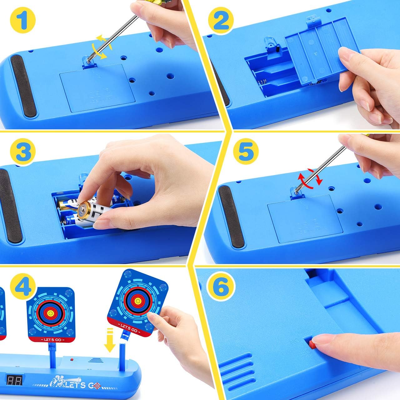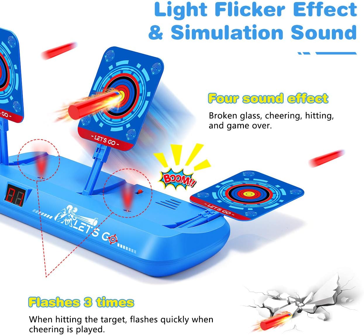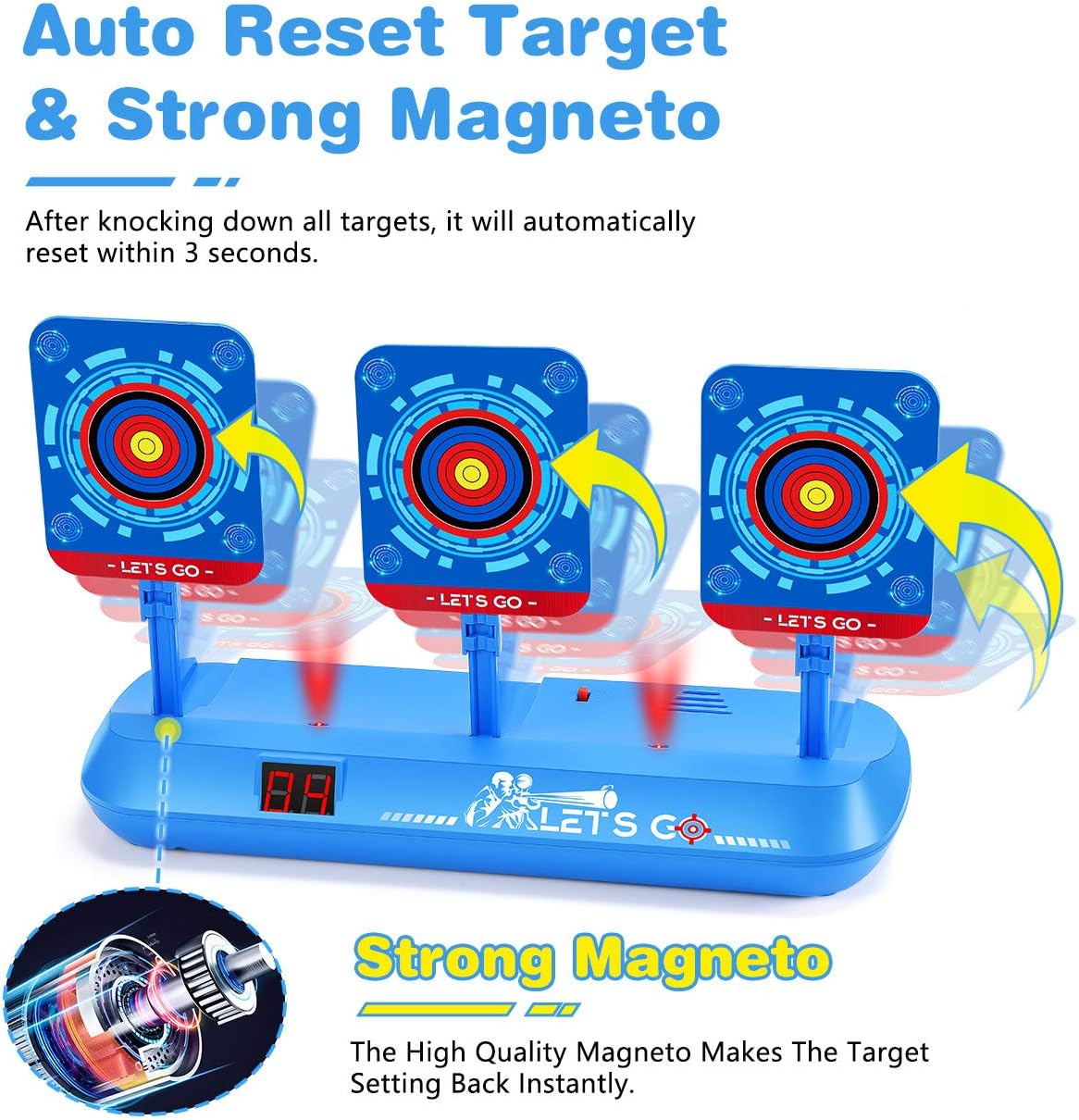【Bersaglio Aggiornato】Il bersaglio elettrico è adatto per le della serie, Nerf Mega e Nerf Rival, così come altre marche di equipaggiamento.Naturalmente, possono essere lanciati anche altri oggetti. Molto più pratico e interessante di altri obiettivi funzionali monotoni. Deve utilizzare 3 batterie "AA" (non incluse). 【Punteggio Elettronico e Ripristino Automatico】Quando il bersaglio viene colpito, cadrà, colpirà 3 bersagli per ottenere 2 punto, il punteggio verrà visualizzato sul tabellone digitale LCD. Se tutti e tre i bersagli cadono, tutti e tre i bersagli riprenderanno automaticamente. Il ripristino del bersaglio attira i bambini a continuare a sparare al bersaglio e rende il gioco di tiro divertente. 【Stimolazione Dell'effetto Sonoro e Luminoso】Quando ogni bersaglio viene colpito, emetterà un effetto sonoro simulato di tiro o di vetro rotto, accompagnato da una luce rossa lampeggiante, dando alle persone una sensazione reale. Ciò migliora l'atmosfera del gioco, migliora l'esperienza di tiro del giocatore ed è più interessante. Anche agli adulti piacerà giocare a giochi di tiro. 【Promuove lo Sviluppo】Questo giocattolo può aiutare i bambini a promuovere lo sviluppo e la creatività nelle prestazioni cerebrali, nella memoria, nella fiducia in se stessi, nella pazienza, nell'interazione sociale, nella coordinazione occhio-mano! Sicuramente un giocattolo per ragazzi e ragazze sia indoor che outdoor. Molto adatto a bambini sopra i 6 anni. 【Regali Giocattolo per Bambini】 I giocattoli bersaglio elettronici sono adatti a ragazzi e ragazze di tutte le età, adatti per uso interno ed esterno! È confezionato in una bella confezione regalo ed è il regalo perfetto per compleanni, vacanze, festa dei bambini, Natale, Halloween e Capodanno. divertirsi! In caso di problemi, non esitate a contattarci.