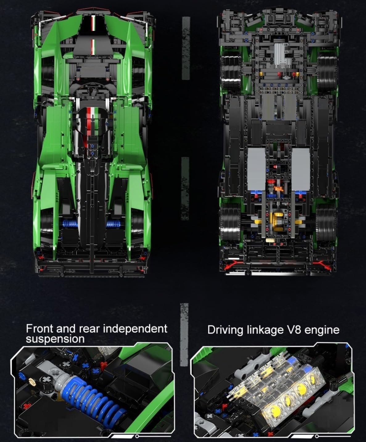 🚗【Scala 1:8】- Il modello è basato sulla "macchina da corsa Lambo SC63". Il massimo livello di dettaglio crea una replica sorprendentemente simile all'originale. Questo set tecnologico ti avvicina più che mai alla vera auto da corsa Lambo SC63. Con i suoi dettagli di design fedeli all'originale, questo modello ispira l'immaginazione di ogni spettatore. Il modello dell'auto è di ca. 12,5 cm di altezza, 58 cm di lunghezza e 25,5 cm di larghezza. 📦【Consegnato nella confezione originale】- 🎁Con scatola originale! Include sacchetti di plastica numerati con le singole parti e istruzioni di montaggio stampate in modo molto chiaro. Le singole parti sono imballate separatamente a seconda delle fasi di costruzione, il che rende la costruzione molto semplice. Le istruzioni per la costruzione sono di facile comprensione e possono essere padroneggiate anche da persone meno esperte. Raccomandazione assoluta per gli appassionati di tecnologia esperti. 🙇【Esperienza di costruzione immersiva】- Con 2980 pezzi, questo è un progetto coinvolgente. Con grande attenzione ai dettagli, il modello è pieno di meccanica realistica. Una volta assemblati tutti i dettagli, ci sono molte funzioni meccaniche da scoprire. Scopri il mondo dell'ingegneria con questo kit modello di auto. Si muove in modo realistico e dispone di meccanismi realistici che introducono i giovani costruttori al mondo della tecnologia in modo comprensibile e realistico. ⚙️【Funzioni realistiche】- Con molti dettagli tecnici, ad esempio il motore V6 con pistoni mobili; le porte battenti; le sospensioni anteriori e posteriori e lo sterzo funzionante, il cofano apribile. Goditi un'esperienza di costruzione accattivante con il kit modello tecnologico. Quindi scopri le caratteristiche originali dell'auto. 🎮/📱【Motorizzabile/Aggiornabile】- Questa macchinina da collezione affascina con la sua grafica e i suoi colori sorprendenti e fedeli all'originale. Motorizzabile/aggiornabile con sistema di alimentazione (NON incluso): 2x motore XL, 1x servomotore, 1x telecomando e 1x box batteria a 4 canali. Attenzione: il set motore non è incluso! 🎁【Perfetto per gli amanti delle auto】- Questo squisito kit modello tecnologico colpisce per la sua eccezionale attenzione ai dettagli ed è stato sviluppato appositamente per gli appassionati di auto. Un progetto di costruzione utile per te o un regalo di compleanno o di Natale molto speciale per qualcuno a cui tieni molto. Con il kit in regalo non puoi assolutamente sbagliare. ♻️【Compatibile con altri marchi principali】 - Questi blocchi di serraggio sono compatibili con altri marchi principali, hanno le stesse dimensioni e una forza di serraggio buona, a volte anche più forte, rispetto alle pietre danesi originali. Le tue dita non fanno male dopo ore di costruzione. Ti prudono ancora le dita? Allora andiamo! Grazie alle semplici istruzioni per la costruzione incluse, il divertimento della costruzione può iniziare subito. ✅ 【Garanzia Auforua】 - Le parti sono tutte realizzate con stampi di alta qualità e alta precisione e materiali ABS ecologici, con trattamento superficiale liscio e senza sbavature, ogni piastra è fissa, nessun odore particolare ed è rispettosa dell'ambiente. Normalmente tutte le parti sono incluse, ma se alcune parti vengono perse o danneggiate, invieremo parti di ricambio gratuite.