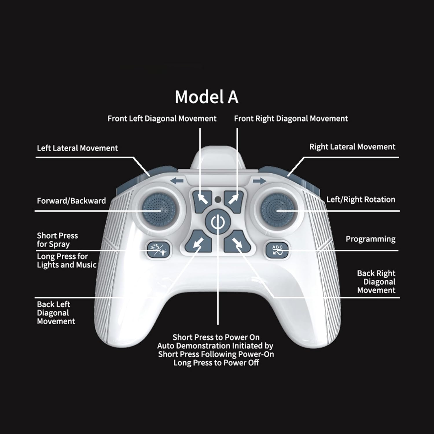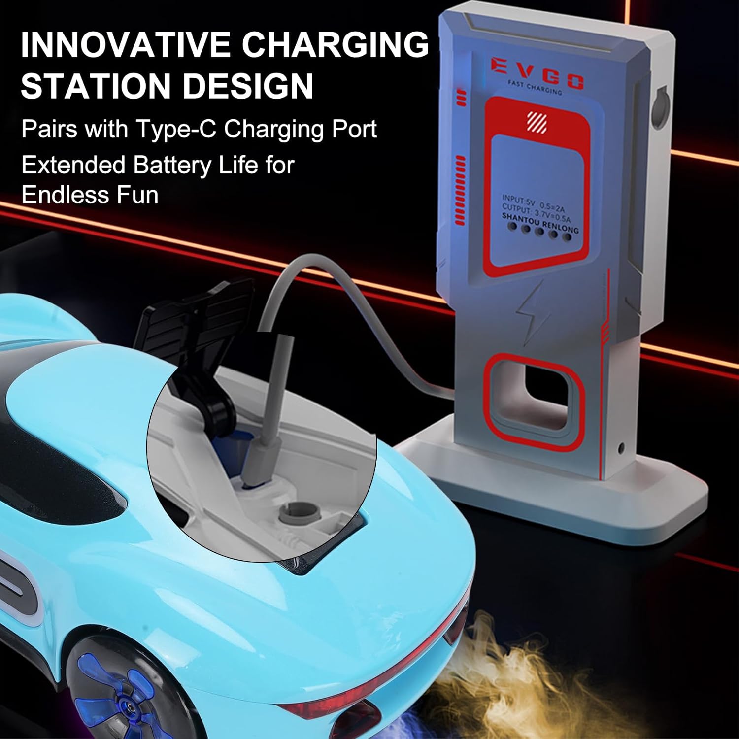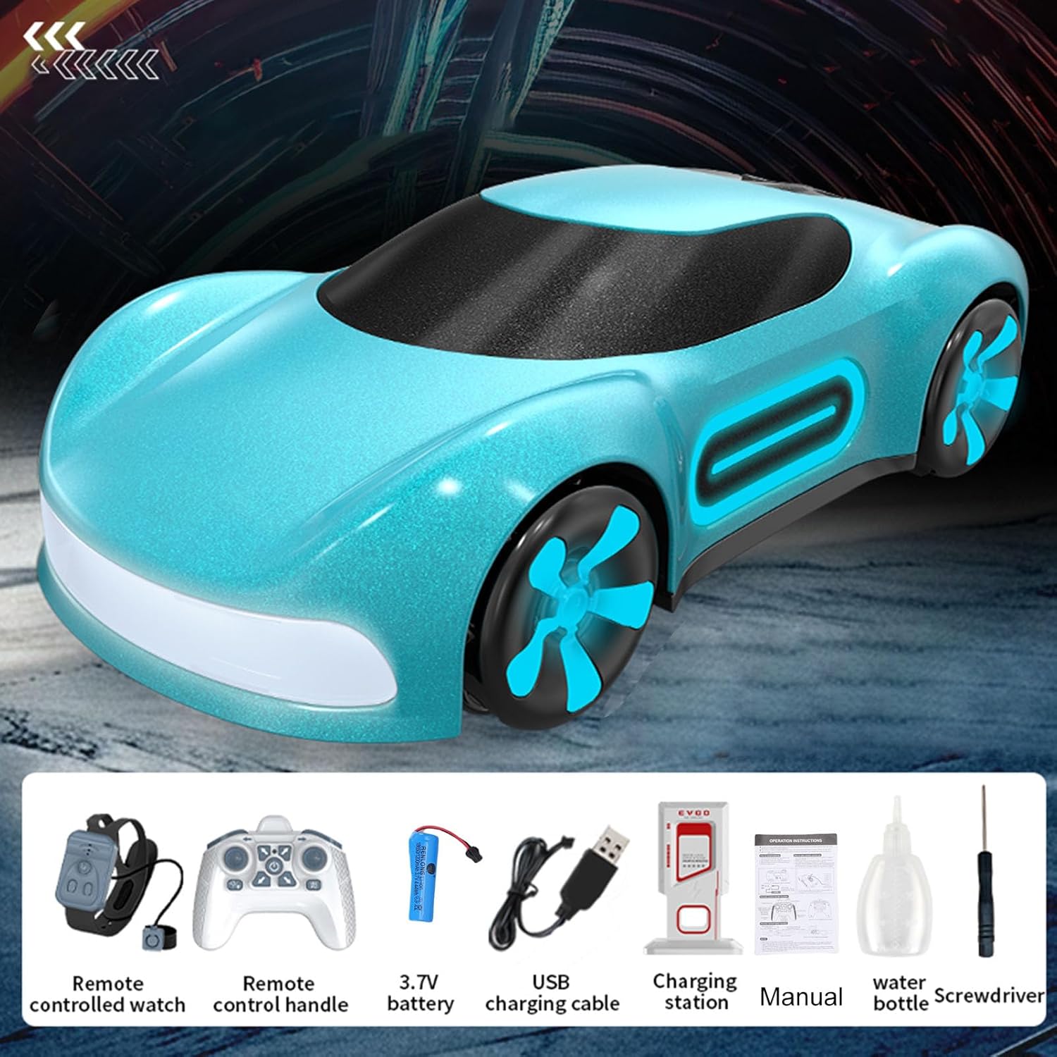 Guida all-direzionale: supporta il movimento multidirezionale: avanti, indietro, sinistra/destra curve, diapositive laterali e derive diagonali! Esegui derive emozionanti con facilità, sprint ad alta velocità e fresche manovre laterali. Prendi il pieno controllo della pista e scatena la tua passione trainante! Spray One-Click: premere un pulsante e il sistema a doppio spruzzo produce un fumo di scarico realistico. Guidare attraverso le nuvole di nebbia e sentirsi come in una vera gara. Ogni accelerazione e deriva si illumina e offre un'esperienza di guida intensa e coinvolgente Luci mozzafiato e suoni dinamici: luci anteriori bianche e luci laterali blu brillano luminose, accompagnate da musica dinamica. È ancora più bello giocare di notte e offrire una festa audiovisiva istantanea. Dock di ricarica di tipo C, divertimento duraturo: l'innovativo dock di ricarica di tipo C garantisce una ricarica facile e veloce. Con una lunga durata della batteria, puoi dire addio alle preoccupazioni con batteria scarica e goditi il divertimento di guida ininterrotto in ogni gara. Dual Control per nuove esperienze: fornito con un telecomando per orologio con sensore gesto e un telecomando convenzionale con impugnatura. Controlla l'auto con un semplice albero a mano per una sensazione high-tech o usa la maniglia per un funzionamento preciso. Diverse opzioni di controllo, divertimento senza fine!