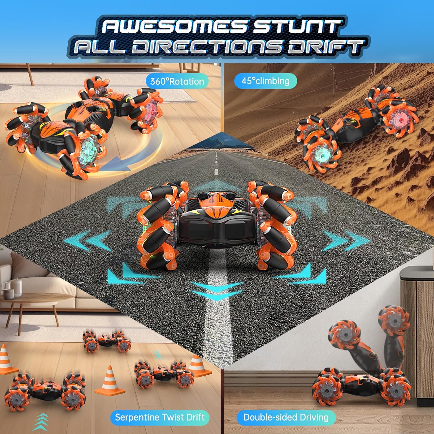 ️【Auto telecomandata All Terrain 2024】L'auto telecomandata è dotata di una carrozzeria fresca a colori. Ha fari freschi, luci di pneumatici, accompagnati da musica dinamica. Questa auto telecomandata a 4 ruote motrici con rilevamento di gesti può facilmente muoversi in tutte le direzioni, può anche guidare in doppio lato. Caratteristiche di arrampicata, torsione, anticipo e rinculo, rotazione a 360 gradi e inversioni a doppia faccia a 180 gradi. 【Doppio telecomando da 2,4 GHz】L'auto telecomandata viene fornita con un telecomando a 2,4 GHz e un orologio a rilevamento dei gesti. Con la tecnologia di frequenza anti-interferenza a 2,4 GHz e la distanza di controllo massima di 40 m per il telecomando, i bambini possono giocare insieme con i loro amici. 40 minuti di tempo di gioco lungo: auto telecomandata per bambini 5 anni dotata di 2 batterie ricaricabili da 3,7 V 500 mAh, ognuna offre 20-30 minuti di tempo di gioco, i bambini possono godere di circa 40-60 minuti di guida divertente. La batteria può essere completamente carica in 2 ore. Design di alta qualità per tutti i terreni: l'auto telecomandata per bambini ️【Giocattoli educativi ideali per bambini】L'auto telecomandata è un regalo ideale per i bambini a Natale/Compleanno/Capodanno. Prendi questa macchina telecomandata, lascia che i bambini si divertano, esercitino la coordinazione mano-cervello, la capacità di reazione e il pensiero creativo. Se avete domande riguardanti l'auto telecomandata, vi preghiamo di contattarci in qualsiasi momento.