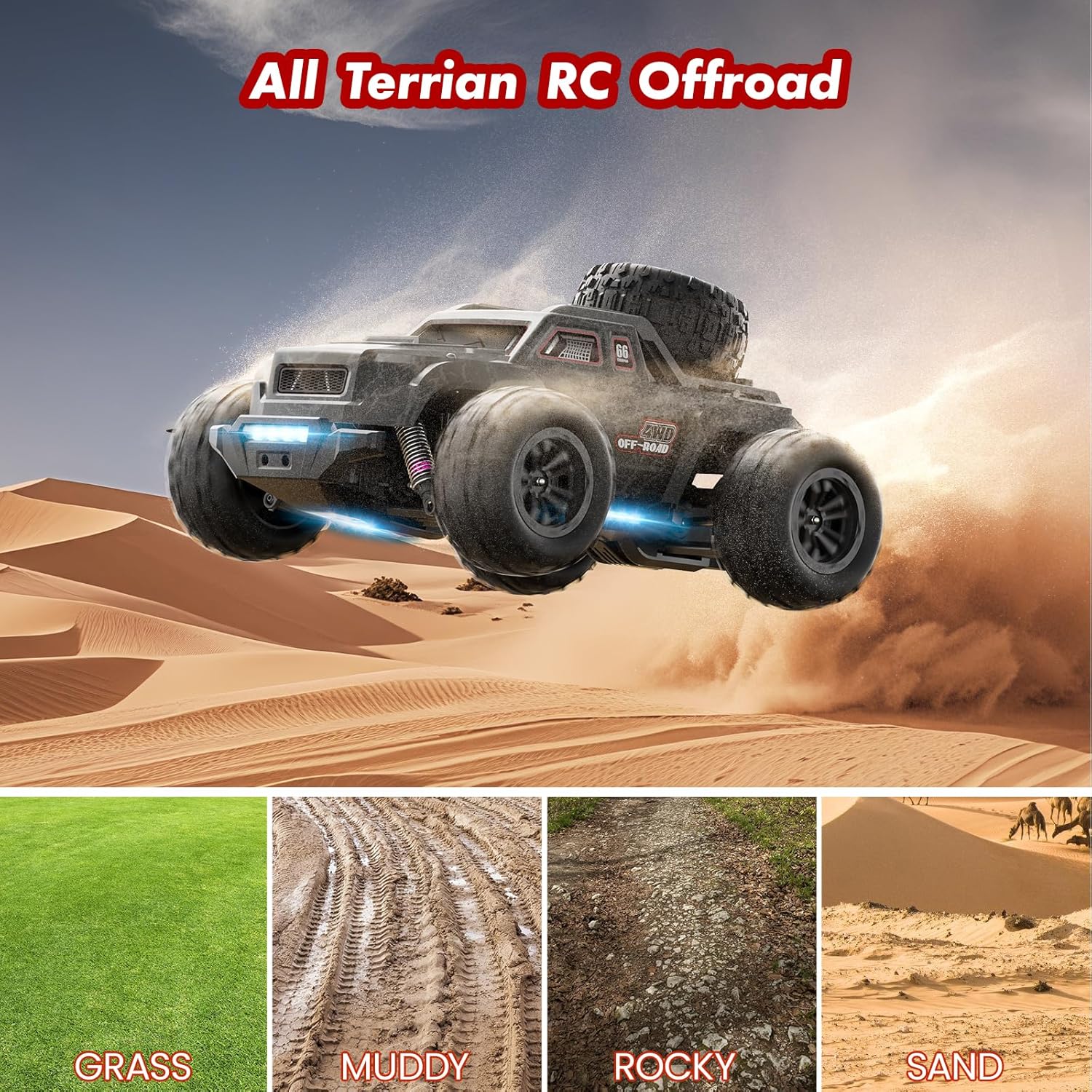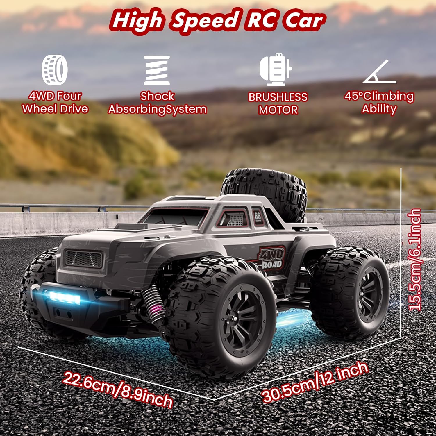 Auto RC veloce 42 km/H: un fuoristrada hobby in scala 1:16 con cuscinetti a sfera completamente incapsulati in metallo per una guida fluida. La sospensione ammortizzata a trazione integrale garantisce una maggiore flessibilità. Il potente motore brushless garantisce la massima potenza a basso consumo energetico e raggiunge una velocità massima di 42 km/h. Fuoristrada RC resistente agli urti: il fuoristrada RC è dotato di trazione integrale con protezione dagli urti, controllo della gravità e della velocità, forte prevenzione delle collisioni e alta resistenza agli urti. Quando si accelera su lunghe distanze, la sospensione ammortizzata a trazione integrale garantisce una guida fluida su terreni irregolari come erba e sabbia e protegge l'elettronica della carrozzeria. Telecomando da 2,4 GHz: con telecomando a 2.4 GHz completamente sincronizzato. La portata è di 100-150 metri. Funzionamento semplice, controllo delicato, adatto per i principianti. Con il telecomando è possibile regolare la velocità e l'angolo di sterzata individualmente. Funziona con 4 batterie AA da 1,5 V (non incluse). Dotato di 2 batterie: l'auto RC ad alta velocità viene fornita con due batterie agli ioni di litio da 7.4 V (1500 mAh). Due batterie offrono un'autonomia di oltre 80 minuti a piena carica. Ogni batteria ha una durata di oltre 40 minuti. Regalo per bambini e adulti: l'auto giocattolo ad alta velocità presenta luci e un design aerodinamico che è super da guidare. È la scelta ideale per le esperienze di corsa e fuoristrada e offre divertimento alla guida per bambini e adulti a partire dagli 8 anni. Questa auto da corsa ad alta velocità è il regalo perfetto per Pasqua, Natale, Capodanno, compleanno e festa dei bambini.