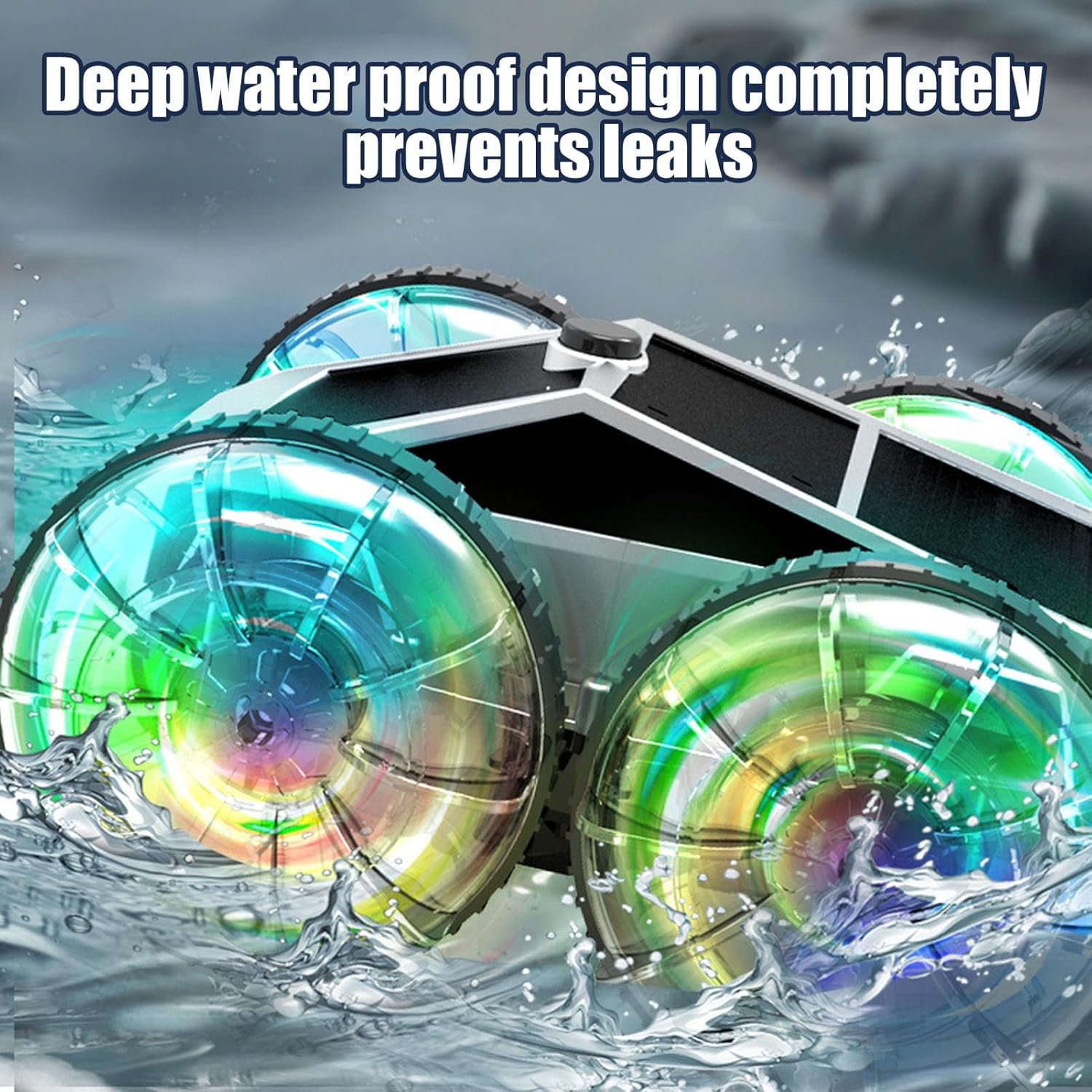AVVENTURA ANFIBIA PRONTA: questa macchina telecomandata conquista sia la terra che l'acqua con prestazioni senza interruzioni, permettendoti di guidare attraverso stagni, fango e marciapiedi per un divertimento esplorativo senza fine. DESIGN RESISTENTE ALL'ACQUA AD ALTA VELOCITÀ: Costruito per resistere a condizioni difficili, la sua struttura completamente impermeabile garantisce la guida sotto la pioggia, le pozzanghere o la neve, offrendo un'emozionante azione fuoristrada senza compromessi. POTENTE A 4 RUOTE: la robusta configurazione a 4 ruote motrici affronta con facilità scale, sentieri rocciosi e superfici irregolari, combinando forza e agilità per acrobazie impressionanti e capacità di arrampicata. BATTERIA RICARICABILE: Dotata di una batteria agli ioni di litio da 3,7 V 1200 mAh, questa vettura offre fino a 30 minuti di autonomia per carica riducendo gli sprechi, ideale per bambini e adulti che amano il divertimento sostenibile. ROTAZIONE A 360° CON LUCI COLORATE: Fatti notare di giorno e di notte con le vivaci ruote a LED e le acrobazie con rotazione a 360 gradi, rendendo questa macchinina RC una scelta straordinaria per l'intrattenimento e gli spettacoli mozzafiato.