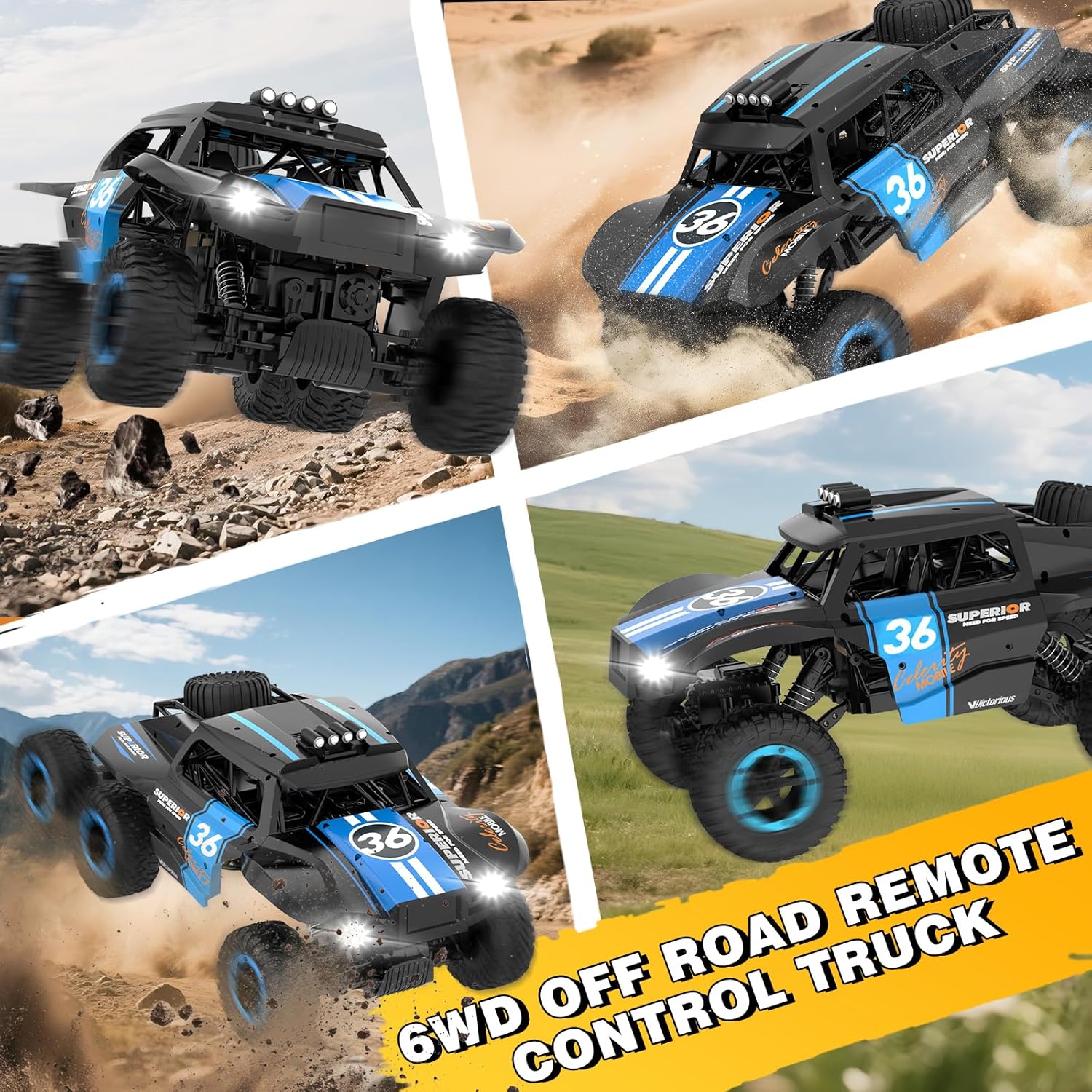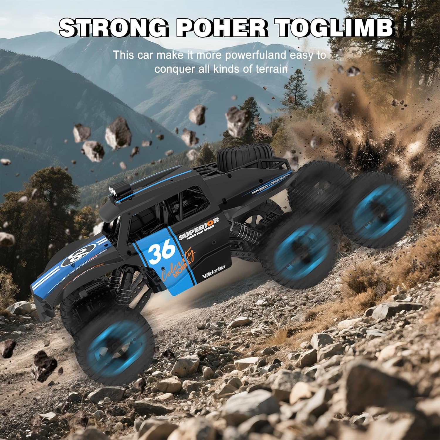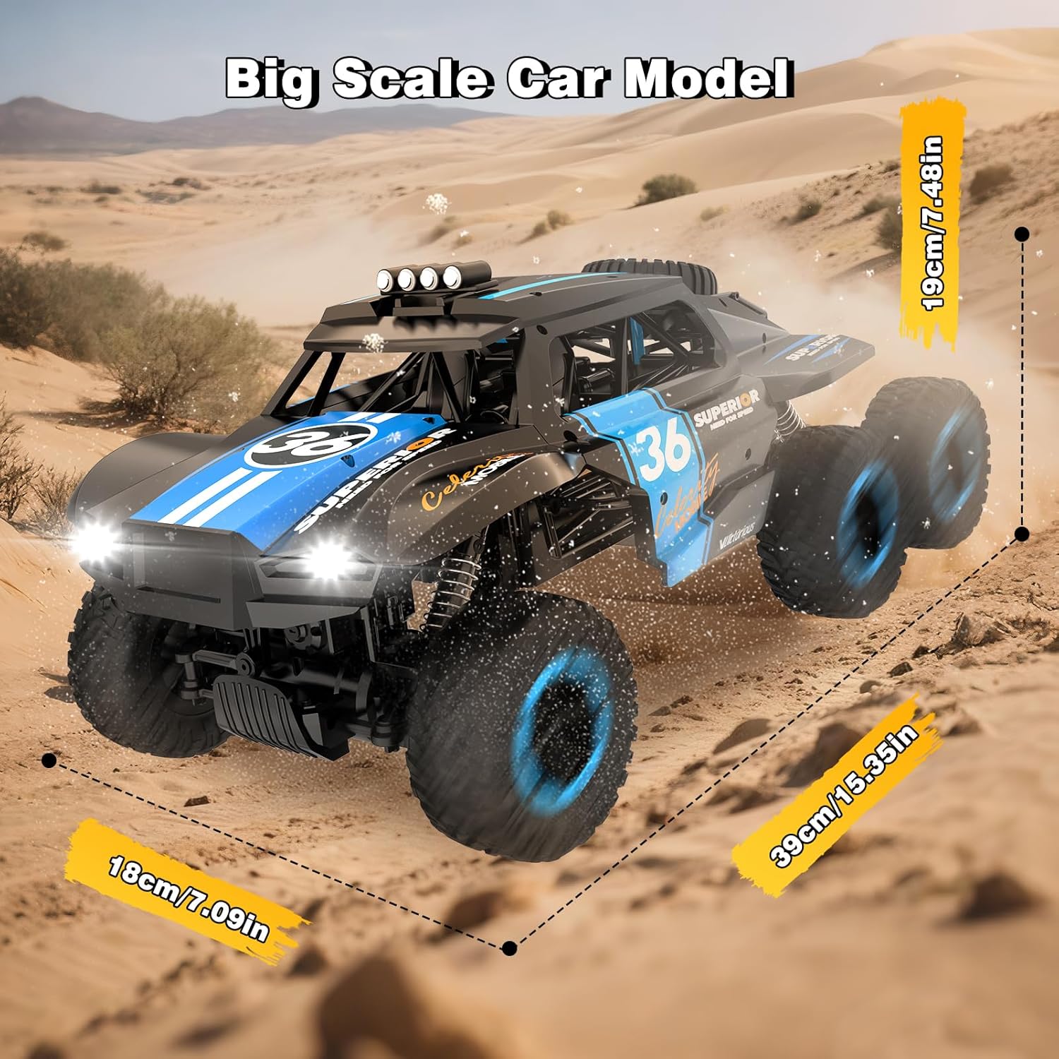 Auto telecomandata fuoristrada: questo grande camion RC è dotato di un potente motore che può circolare facilmente su terreni all'aperto come erba, sabbia, terra e ghiaia. Con una struttura robusta, pneumatici fuoristrada e un motore affidabile, offre buone prestazioni su terreni irregolari e lievi pendenze. Una scelta pratica per divertirsi all'aria aperta ogni giorno con un controllo stabile e prestazioni costanti Doppie batterie ricaricabili, tempo di gioco prolungato - Questa auto RC è dotata di due batterie ricaricabili ad alte prestazioni per un tempo di gioco più lungo. Ogni batteria offre fino a 25 minuti di divertimento continuo, per un totale di 50 minuti di azione emozionante con entrambe. Con le doppie batterie, i bambini possono immergersi nel divertimento delle corse e dell'esplorazione Sistema di controllo remoto a 2,4 GHz - L'auto RC 6WD è dotata di un telecomando wireless a 2,4 GHz per un funzionamento stabile e reattivo su lunghe distanze. Il segnale è resistente alle interferenze, garantendo un controllo fluido senza ritardi o confusione. È possibile utilizzare più auto giocattolo contemporaneamente, rendendo facile gareggiare con gli amiciv Giocate insieme con un'auto telecomandata - Questa auto giocattolo favorisce lo sviluppo della coordinazione occhio-mano grazie ai comandi intuitivi. Ideale per giocare all'aperto, promuove l'interazione tra bambini, amici e familiari. Un modo semplice e coinvolgente per legare, muoversi di più e godersi il tempo insieme
