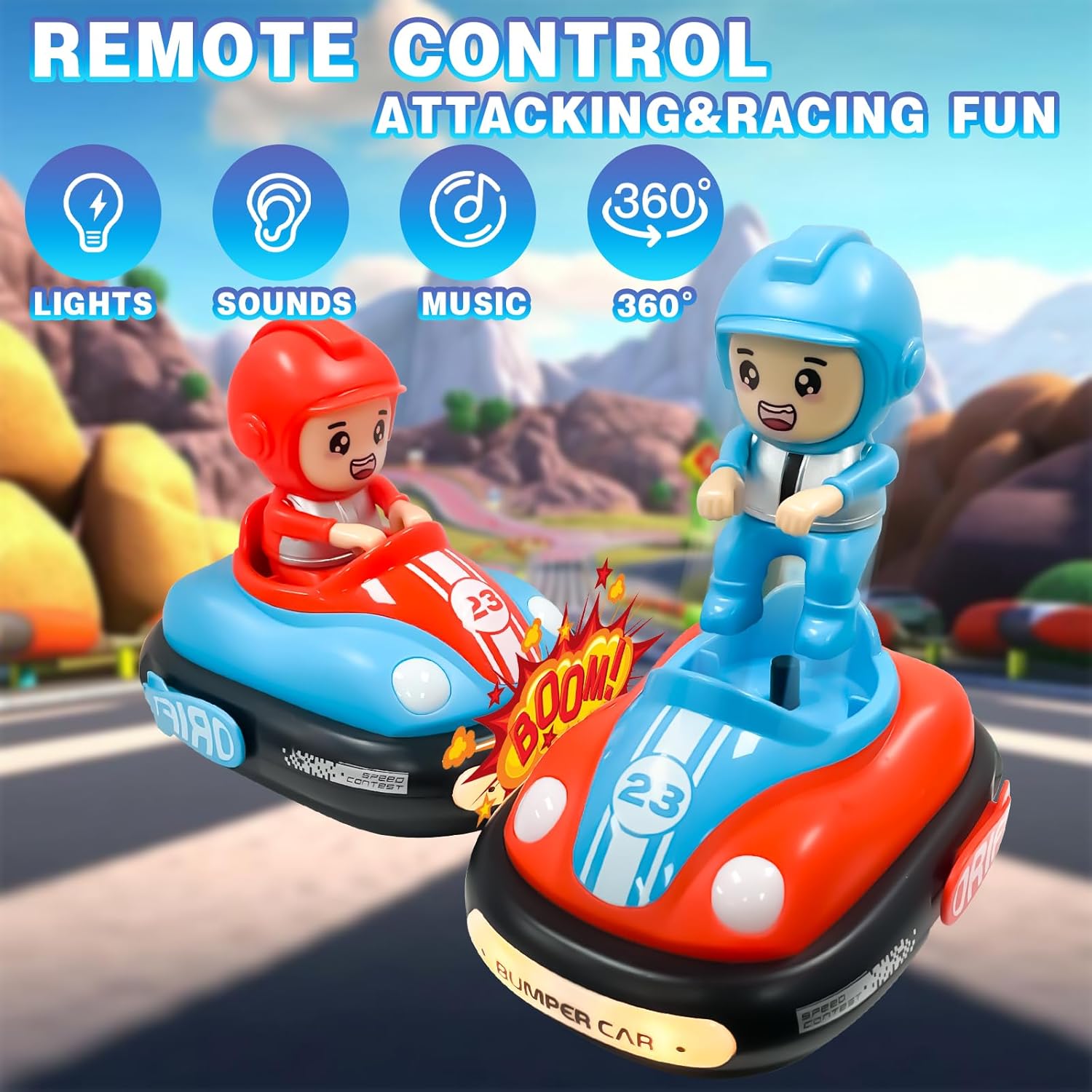 【 Paraurti auto per bambini】 Il monopattino per bambini radiocomandato per bambini contiene due auto da corsa e due cavi di ricarica e viene fornito con due telecomandi manuali e un cacciavite. Il telecomando manuale è semplice e intuitivo da usare e offre un'esperienza di controllo più moderna e interattiva. 【Robusto e durevole】La carrozzeria del monopattino è realizzata in materiale ABS di alta qualità e la struttura è robusta e durevole, che può resistere efficacemente agli effetti delle collisioni. Non solo garantisce la stabilità della custodia, ma anche la sua portabilità, quindi è facile da manovrare per i bambini mentre giocano. 【 Bumper car】 Auto scooter telecomandato per due giocatori, due giocatori controllano il proprio autoscooter. Ogni volta che il pulsante laterale viene premuto e l"altro conducente viene espulso con successo è accompagnato da allegri effetti sonori, l"illuminazione dei fari e delle luci posteriori non solo consente ai bambini di vedere chiaramente la carreggiata degli autoscooter di notte, ma fornisce anche una sensazione di mistero e tensione. Regalo ideale: questi mini scooter radiocomandati sono un regalo ideale per i bambini. Disponibile in rosso e blu, in modo che due giocatori possano giocare in modo competitivo. Il loro design è squisito e facile da usare, in modo che i bambini possano facilmente iniziare e godersi la guida. Sono molto adatti come regali di Natale, regali di compleanno, regali per compagni di classe e amici. Servizio clienti: se il prodotto è danneggiato o presenta altri problemi, non esitate a contattarci e vi daremo la migliore risposta.