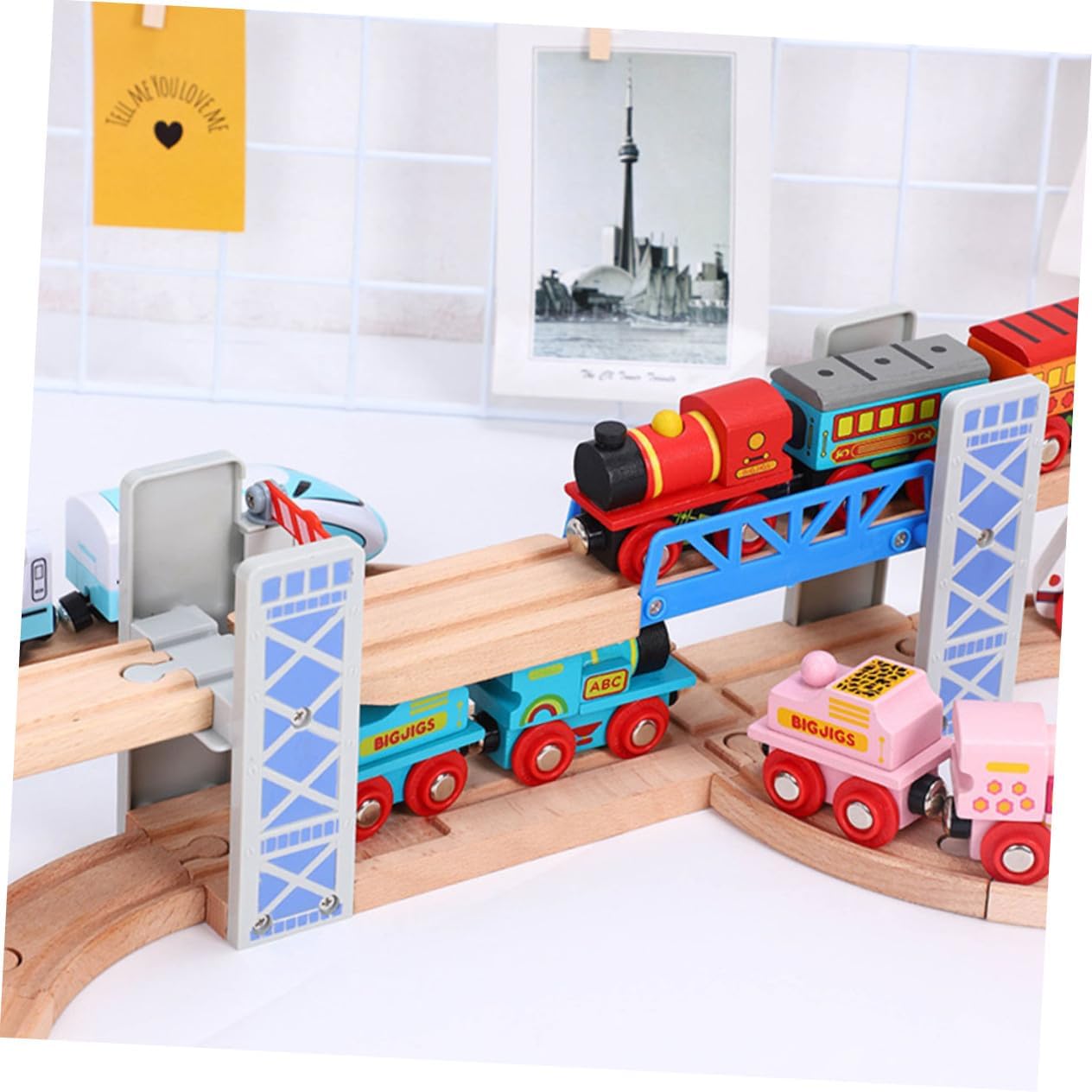 Binari del treno giocattolo: il regalo perfetto per Natale o per le vacanze per bambini creativi, progettato dai 3 anni in su, binari del treno Binari del treno: robusta costruzione in legno! Realizzato in legno di alta qualità e resisterà ad anni di uso intenso!, Ponte ferroviario di binari giocattolo - I collegamenti dei binari si collegano facilmente in modo da poter costruire i tuoi layout e binari del treno