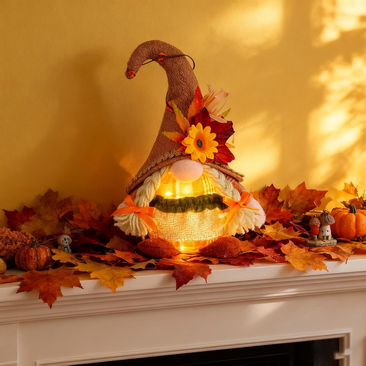 Decorazione autunnale festiva: progettato come uno gnomo di peluche, questo pezzo decorativo emette una morbida luce a LED per creare un'atmosfera autunnale festiva, trasformando caminetti e tavoli in display caldi; il suo tema del raccolto arricchisce l'atmosfera stagionale, fornendo alla tua casa un aspetto invitante Compatibilità versatile dello spazio: l'arredamento dello gnomo in peluche si adatta perfettamente a più spazi, con dettagli espressivi di barba e cappello che migliorano l'attrattiva visiva, mentre il suo morbido feltro e la sua struttura in cotone offrono un tocco accogliente, rendendolo adatto per salotti Indispensabile decorativo per le vacanze: la bambola di peluche gnomo funge da pezzo decorativo adatto al vassoio che migliora le celebrazioni multi-vacanze, aumentando l'atmosfera di raccolta e il divertimento mentre si adatta perfettamente su caminetti o console per aggiungere fascino festivo del Ringraziamento in ambienti accoglienti Arte stagionale premurosa: questo gnomo peluche dà vita al fascino dell'autunno attraverso un design premuroso e motivi festivi, creando un modo adatto per condividere la buona volontà con le persone amate; sia condiviso con colleghi o amici, favorisce il calore e la connessione in qualsiasi autunno Decorazione stagionale flessibile: il peluche dello gnomo del Ringraziamento funge da sorprendente punto focale autunnale, illumina senza sforzo davanzali e scaffali con il suo design delizioso, fornendo opzioni di arredamento versatili che passano senza soluzione di continuità tra spazi interni ed esterni