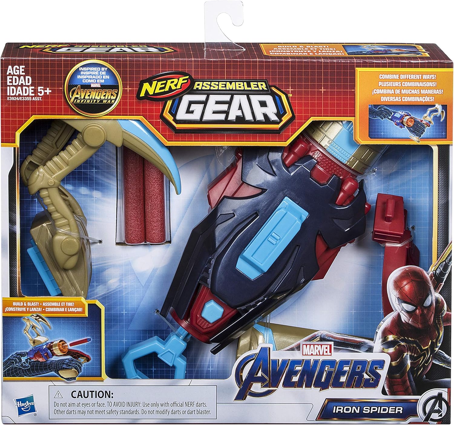 Diverse combinazioni di blaster Design ispirato al ragno di ferro di Avengers: Endgame Collegare i pezzi per costruire e saltare Lancio incluso freccette Nerf in azione Combinare con altri set di ingranaggi assemblatore Per oltre 100 combinazioni (ogni set venduto separatamente)