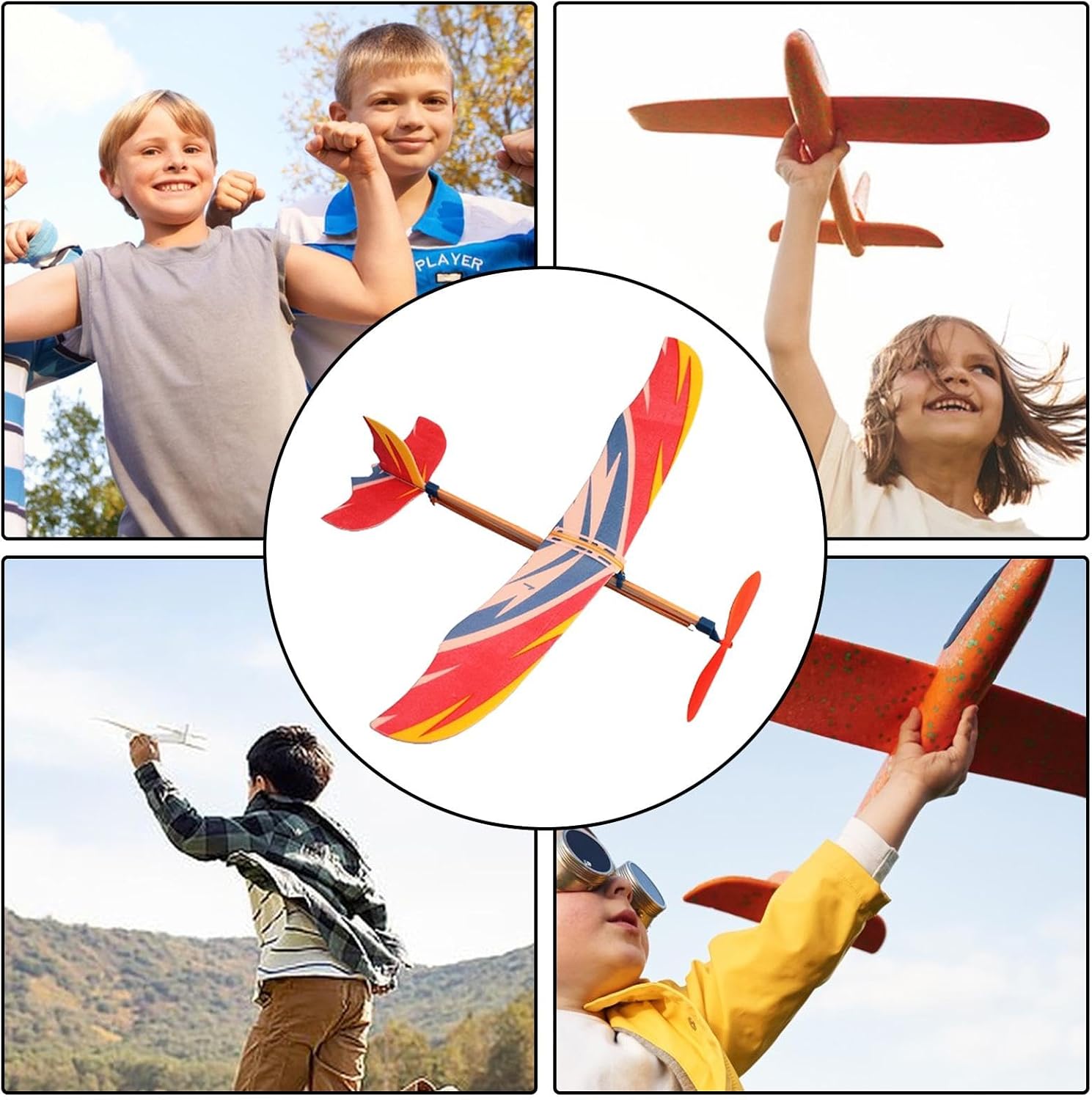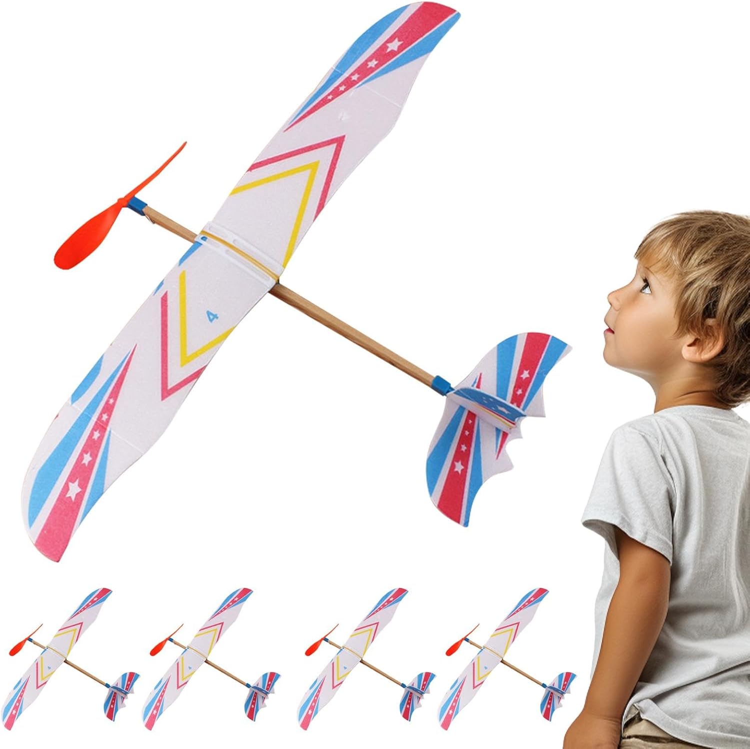 Grande durata: realizzato in ottimo materiale PP, prova un'eccitazione duratura con questo aeroplano alimentato da elastico progettato per una durata senza rivali durante il volo. Legame familiare attraverso il gioco: lasciati coinvolgere in una deliziosa avventura di assemblaggio con tuo figlio, favorendo un legame più stretto mentre costruisci, lanci e guardi volare l'aereo alimentato da elastici, creando momenti gioiosi e amore per le attività condivise. Comodo e portatile: porta il divertimento a nuovi livelli con questo aeroplano compatto e leggero alimentato da elastico. Puoi portarlo con te ovunque e goderti facilmente i momenti di gioco all'aperto. Ambito di applicazione: sperimenta il fascino di questo aeroplano alimentato da elastico, perfetto sia per la decorazione domestica che per intrattenere il di gioco. Che sia indoor o outdoor, sul prato o in soggiorno, è versatile e coinvolgente. Perfetto come regalo: regala l'avventura con questo aeroplano alimentato da elastico, perfetto per la famiglia, i colleghi e gli amici che amano il divertimento pratico 'aviazione.