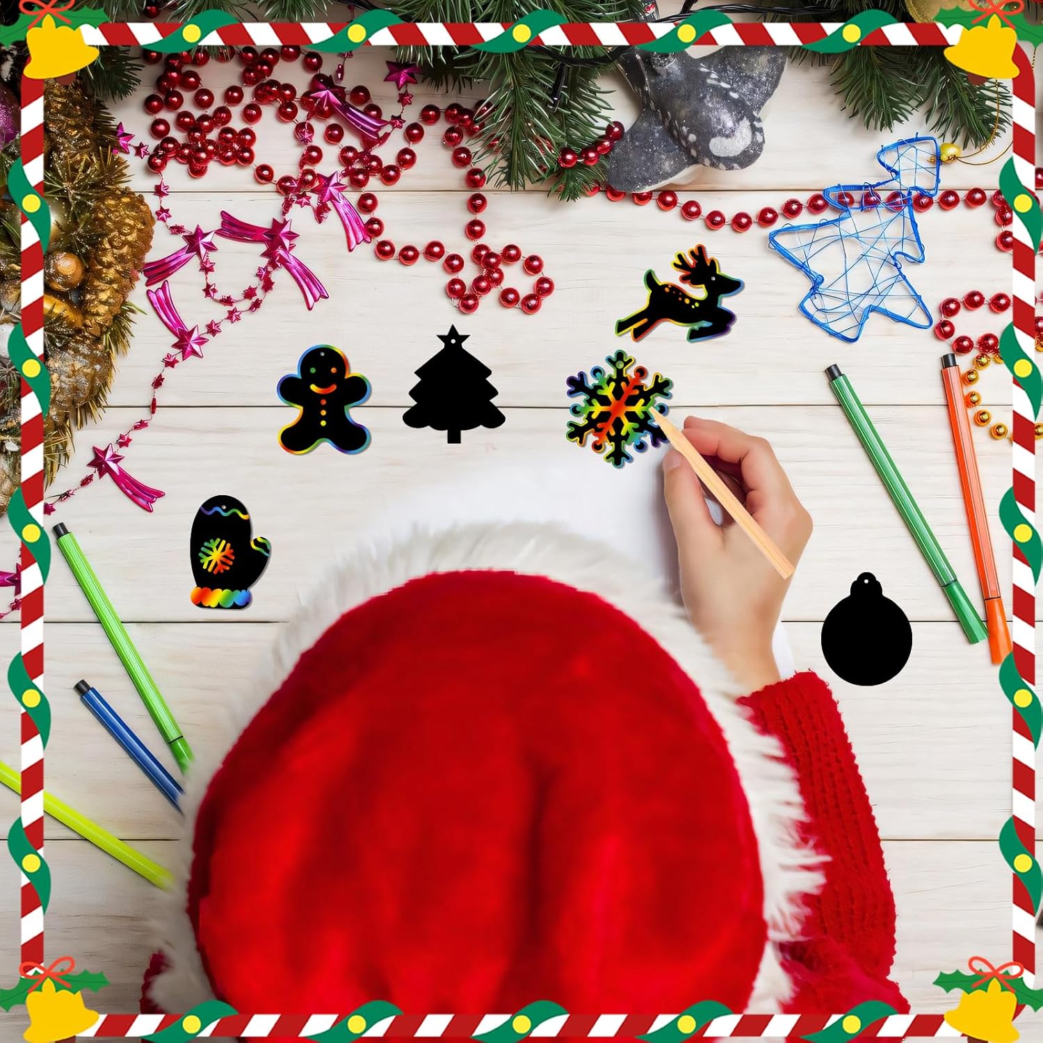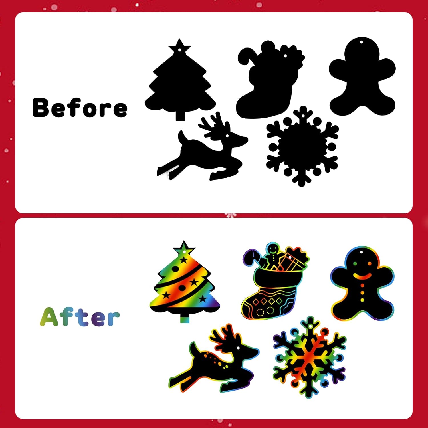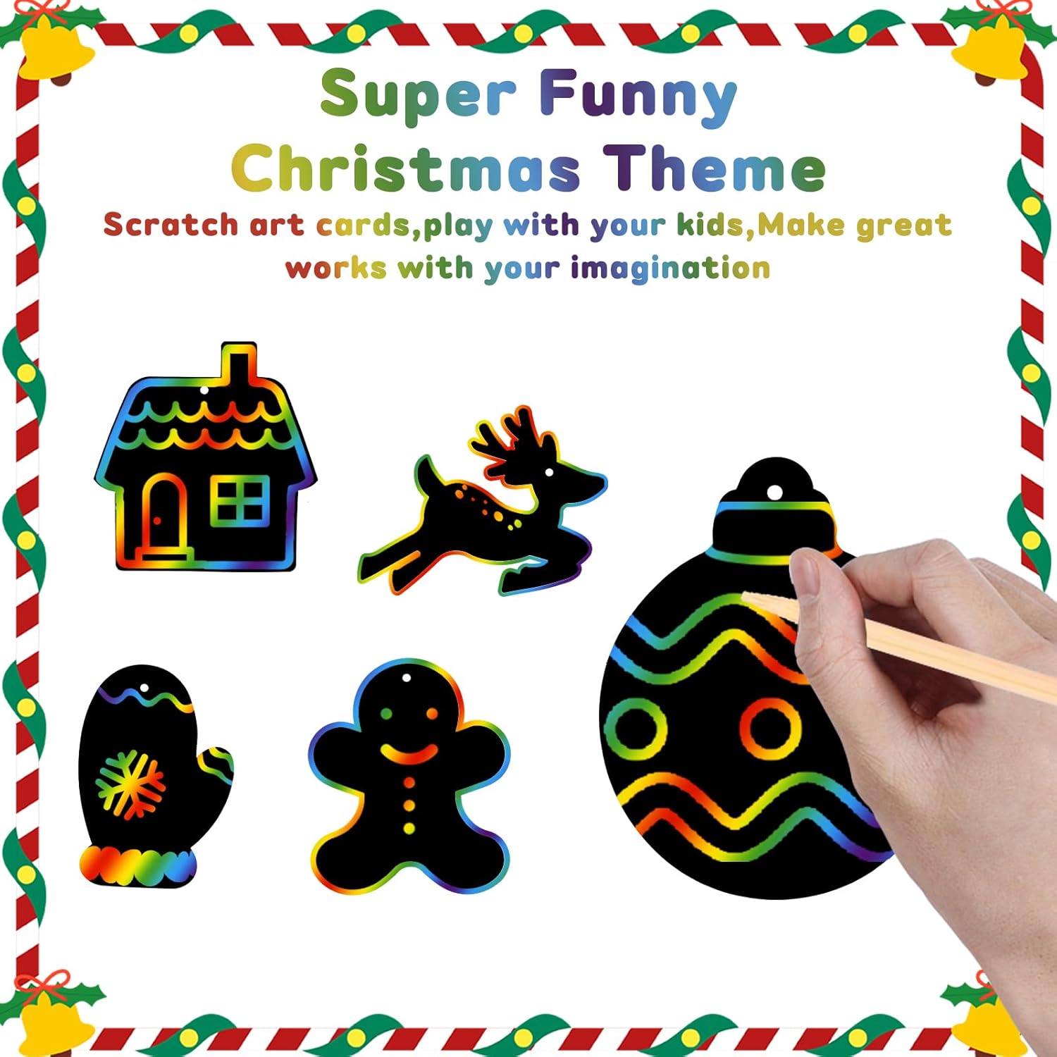 Confezione: riceverai 48 pezzi di scratch art natalizio, 24 pezzi di stilo in legno e 48 pezzi di nastri colorati, puoi realizzare liberamente questi scratch art natalizi Materiale: etichetta regalo in carta da grattare appesa realizzata in carta, il motivo si nasconde sotto il rivestimento opaco Come giocare: usa semplicemente lo stilo per grattare via la superficie nera opaca della carta magica arcobaleno, come dipingere casualmente, quindi ottieni i motivi fai da te dei colori dell'arcobaleno Ampiamente utilizzato: puoi appendere questi scratch art natalizi sugli alberi di Natale o come evento di caccia alle uova di Natale, etichetta regalo di Natale o riempitivo per sacchetti di festa di Natale, è un ottimo regalo per la tua famiglia o i tuoi amici Sicuro e non tossico: nessun sapore strano, nessuna polvere tossica, così i bambini possono prendersi il loro tempo per giocare, pensare, testare e prepararsi per i loro capolavori.