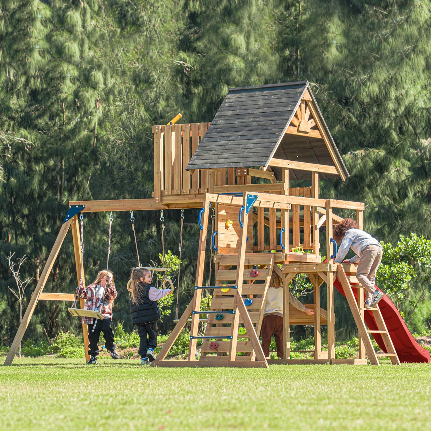 UN PARCO GIOCHI AVVENTUOSO NEL TUO GIARDINO: la torre giochi AXI Mitch mette insieme scivoli, arrampicate, altalene e osservatori in un unico gioco super resistente. Con la doppia altalena, il trapezio e il telescopio, ogni giardino diventa un parco giochi avventuroso. I bambini vivono ogni giorno emozionanti giochi di ruolo e sfide fisiche, da soli o con gli amici... TANTE FUNZIONI E IDEE DI GIOCO: La torre da gioco ha delle strutture per arrampicarsi, una parete da arrampicata, un lungo scivolo con attacco per l'acqua e persino un tavolo per attività creative, come un mini negozio. Nella sabbiera sotto la torre si possono costruire castelli creativi e torte di fango. In questo modo si stimolano in modo divertente la coordinazione, la forza e la creatività, con qualsiasi tempo. RESISTENTE, DURATURO E SICURO: Mitch è fatto al 100% di legno di cedro certificato FSC e non si scheggia, resiste alle intemperie e non marcisce. La vernice ecologica a base d'acqua protegge il legno a lungo ed è sicura per i bambini. MOLTO SPAZIO PER DIVERTIRSI: Dimensioni esterne: 482 x 500 x 338 cm (LxPxA), altezza piattaforma 120 cm. Dimensioni interne torre: 89,5 x 80 x 202,5 cm. Scivolo: 220 cm di lunghezza. Sabbiera: 158 x 80 x 8,6 cm. Capacità massima: 200 kg per la torre giochi e 200 kg per l'altalena. Adatto a bambini dai 3 ai 12 anni e fino a 5 bambini alla volta: perfetto per giardini grandi e famiglie avventurose. AXI: Parti all'avventura nel tuo giardino con AXI! Lasciati stupire dai design unici e dalle infinite possibilità che offrono le nostre casette e attrezzature da gioco in legno. Che tu stia cercando una casetta compatta o una grande torre con scivolo e altalene, AXI realizza i sogni dei bambini! AXI offre anche sabbiere, tavoli da gioco acquatici e una vasta scelta di accessori per rendere la casetta ancora più unica.
