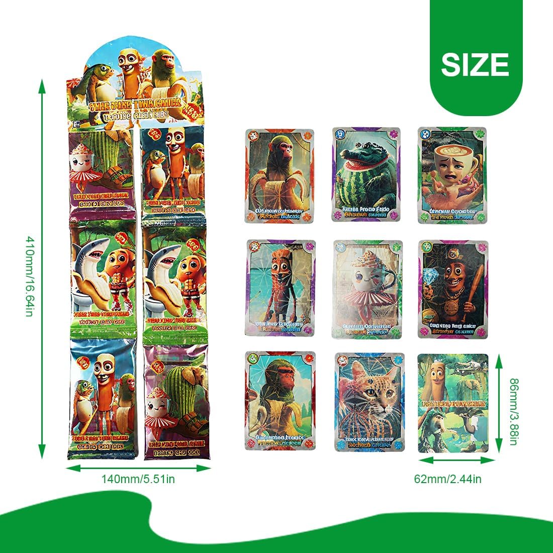 Il set include: 12 pacchetti di carte Italian Brainrot, con 8 carte per pacchetto. Cartoline umoristiche: carte da scambio, elementi di design umoristici, ricchi di gioia Compatto e portatile: le carte sono leggere e possono essere portate con sé, in qualsiasi momento e ovunque. Collezione o regalo: un buon oggetto da collezione o regalo per i giocatori che amano le carte da scambio. Social hard currency, divertimento condiviso: il raddoppio della gioia durante lo smaltimento, lo scambio di carte con gli amici può rivivere il divertimento dell'infanzia. Che tu sia il protagonista di una conversazione sul tavolo o di una festa di scambio offline, ti rende il ragazzo più divertente!