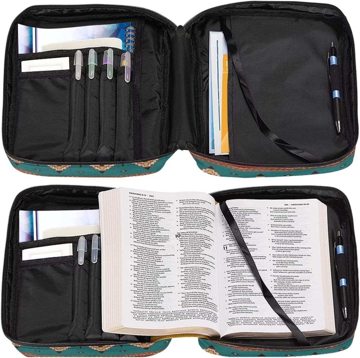 Grande capacità - 10,5 × 8 × 1,25,4 cm Adatto per varie dimensioni di biblie/libri/pad/. Ha una tasca frontale e più tasche interne organizzanti che sono comode per trasportare i tuoi oggetti personali come cellulare, penne, appunti, ecc. Materiale durevole: la copertura della Bibbia è realizzata in poliestere di alta qualità e cerniere mentali, è resistente, morbida e leggera. Può essere a prova di polvere e mantenere pulita la Bibbia. Design conveniente: ci sono due cerniere in metallo per aprire e chiudere facilmente. L'interno ha 2 tasche laterali, 1 tasca verticale, 1 slot per segnalibri, 5 slot per penne. Sia in chiesa, o partecipare a lezioni, puoi estrarre il libro più facilmente. Con manico portatile e tasche esterne, ti permette di andare fuori portando con solo una borsa per la bibbia. Multifunzionale: con questa borsa della Bibbia, puoi usarlo in molti modi, come una borsa per documenti, una valigetta, una borsa per iPad, una borsa. Questa custodia protettiva bibbia è adatta per trasportare alcuni dei tuoi piccoli oggetti. Regalo perfetto: ci sono vari tipi di bellissimi modelli tra cui scegliere. È un bel regalo per i tuoi amanti, bambini, amici. È anche una buona scelta da inviare il giorno del Ringraziamento, Natale, festa della mamma, festa del papà.