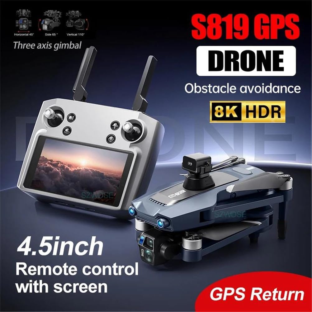 [Riprese aeree professionali a 2,7K] Cattura riprese incredibilmente fluide con la fotocamera gimbal ELS a 3 assi a 2,7K integrata nel drone S819. Sperimenta fotografie e video aeree di livello professionale con stabilizzazione elettronica dell'immagine, un campo visivo di 90° e un sensore da 2/3 di pollice per foto e video nitidi da 10 MP con una risoluzione fino a 5780x2890. Perfetto per i creatori di contenuti che cercano riprese con droni di alta qualità. [Rilevamento ostacoli laser a 360° avanzato e sicurezza GPS] Vola in tutta sicurezza grazie al rilevamento laser omnidirezionale completo per l'evitamento degli ostacoli. Questo drone GPS è dotato di funzioni di ritorno automatico in caso di batteria scarica, perdita del segnale o superamento della distanza di controllo di 6000 metri. Goditi il decollo e il ritorno con un solo tasto e un posizionamento stabile per voli sicuri in diverse condizioni. [Prestazioni del motore brushless a lunga durata]Sperimenta un'autonomia di volo di 30 minuti grazie agli efficienti motori brushless. L'S819 resiste a venti inferiori a 10 km/h e vanta una struttura robusta con un peso massimo al decollo inferiore a 1 kg. La sua batteria rimovibile da 7,6 V 2600 mAh garantisce una rapida sostituzione per avventure aeree continue. [Trasmissione in tempo reale 5G FPV a 6 km e telecomando a schermo]Goditi un volo immersivo in prima persona (FPV) con trasmissione video in tempo reale a 6 km a bassissima latenza tramite Wi-Fi a 5 GHz. Il telecomando incluso è dotato di un comodo display da 12,5 cm per il monitoraggio in movimento senza bisogno del telefono. Connettiti tramite app, telecomando o Wi-Fi per un controllo flessibile. [Pacchetto completo drone con telecamera pronto al volo]Ottieni tutto ciò di cui hai bisogno per iniziare a volare immediatamente. Questo kit completo include il drone S819 (290 g), un telecomando con batteria da 7,4 V e 3000 mAh, eliche di ricambio, una scheda di memoria da 16 GB, attrezzi e cavi. Dotato di gimbal a 3 assi, riflettore e zoom digitale 50x, è lo strumento ideale per la fotografia aerea per gli appassionati dai 14 anni in su.