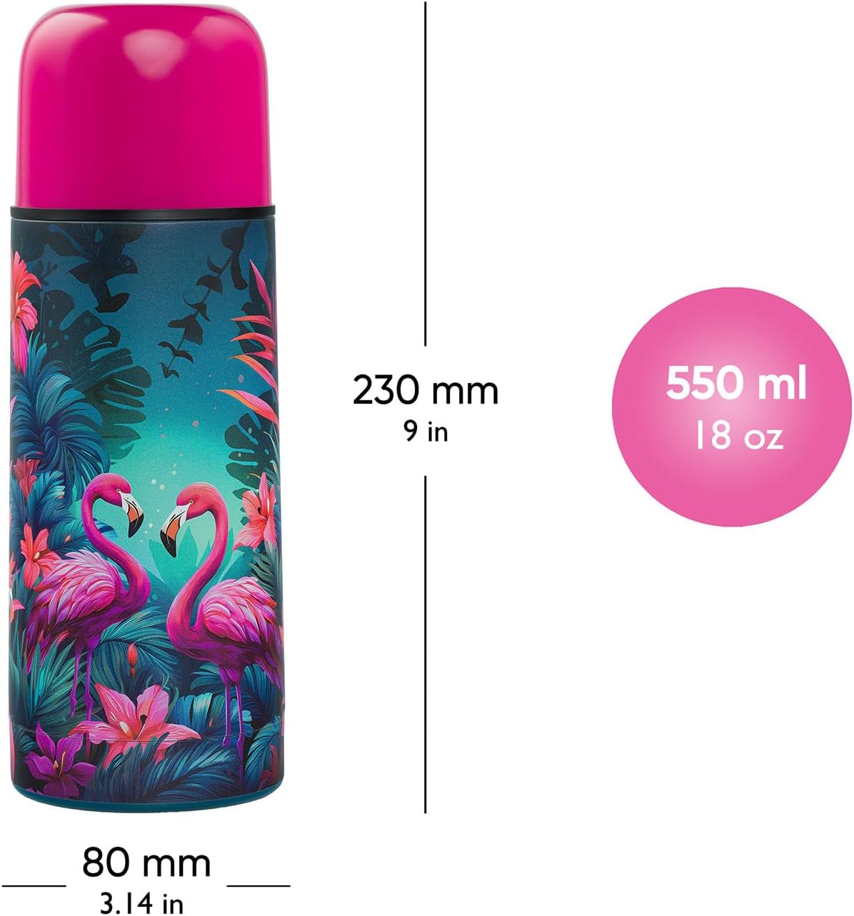Isolamento a doppia parete: mantiene le bevande calde fino a 12 ore e fredde fino a 24 ore, ideale per scuola, gite, ufficio o attività all'aperto Coperchio a vite 2 in 1 con funzione bicchiere, pratico coperchio che funge anche da bicchiere, perfetto per bevande calde come tè o cacao in viaggio Design moderno e senza BPA: elegante bottiglia in acciaio inox dal design alla moda per bambini e adulti, 100% senza BPA, insapore ed ecologica A prova di fuoriuscite e versatili: chiusura sicura e antigoccia, perfetto per zaini, borse per la scuola o bagaglio a mano in viaggio Dettagli tecnici: capacità: 550 ml, peso: circa 367 g. Dimensioni: altezza circa 23 cm. Diametro: circa 8 cm. Robusto, durevole e facile da pulire