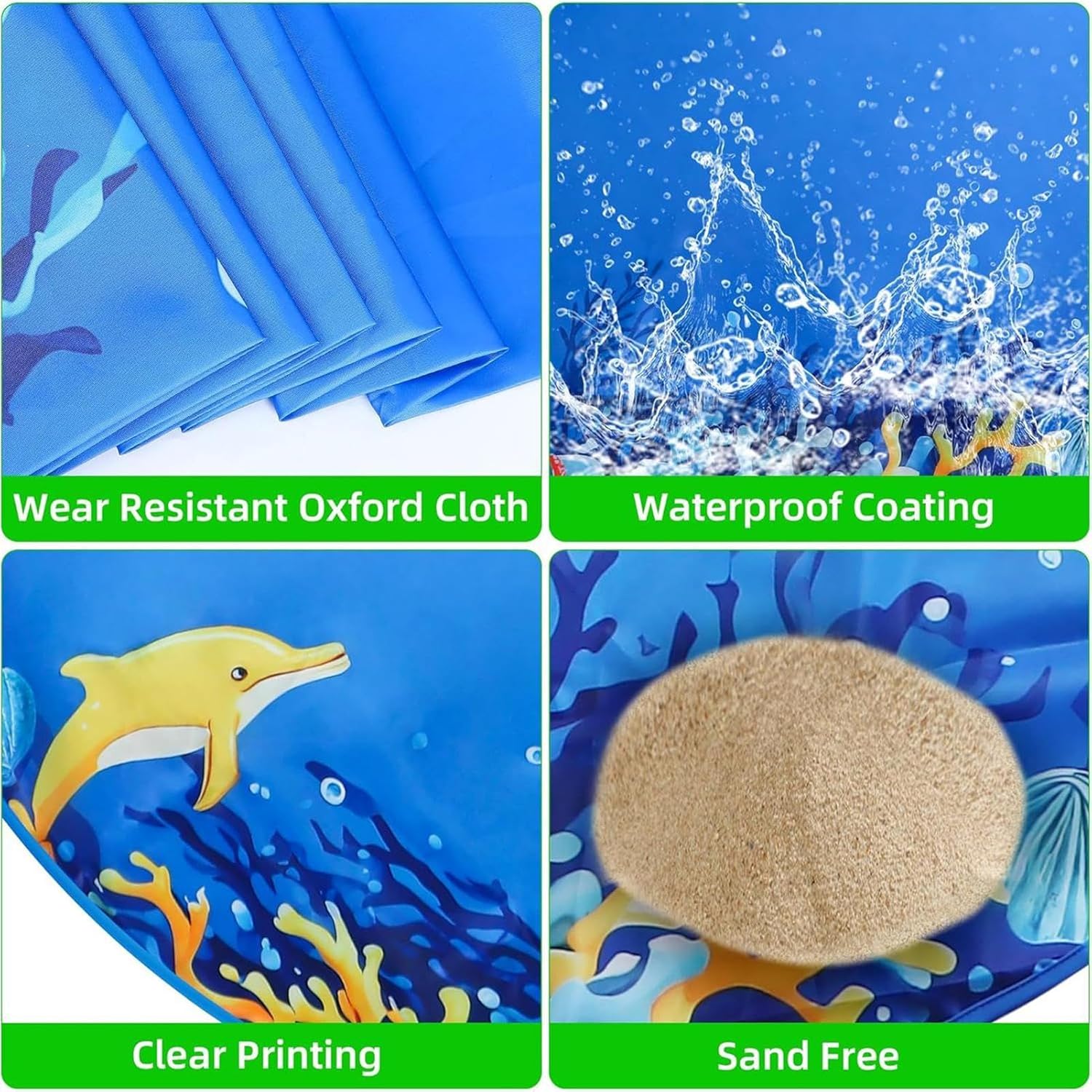 Soluzione all'aperto versatile: piscina da spiaggia per bambini progettata per un uso versatile in vari scenari all'aperto, questa piscina da spiaggia 2 in 1 consente ai bambini piccoli di divertirsi e rilassarsi con un tappetino a prova di e una piscina a spruzzo poco profonda per comfort e divertimento Assemblaggio e stabilità senza sforzo: la coperta per bambini con componenti rinforzati e picchetti di terra inclusi, questa piscina per bambini piccoli fornisce una configurazione stabile senza strumenti aggiuntivi, supporta il riempimento dell'acqua diretta e viene fornita con una borsa per il trasporto per portabilità senza sforzo durante il viaggio o il tempo di gioco Resiste a liquidi e liquidi: la piscina per bambini portatile delle superfici impermeabili avanzate blocca efficacemente il liquido e ripristinando la pulizia con facilità e preservando l'attrattiva e le prestazioni del prodotto Base stabile: tappeto d'acqua per bambini piccoli con un design non gonfiabile, la piscina consente la sicurezza e la stabilità per i bambini utilizzando il riempimento per formare un'area di acqua sicura senza preoccupazioni di interruzioni di perdite d'aria Gioco marino interattivo: mini piscina pieghevole con motivi marini accattivanti, incoraggia l'esplorazione e i momenti giocosi, promuovendo la connessione tra genitori e bambini piccoli sulla spiaggia o negli ambienti di campeggio
