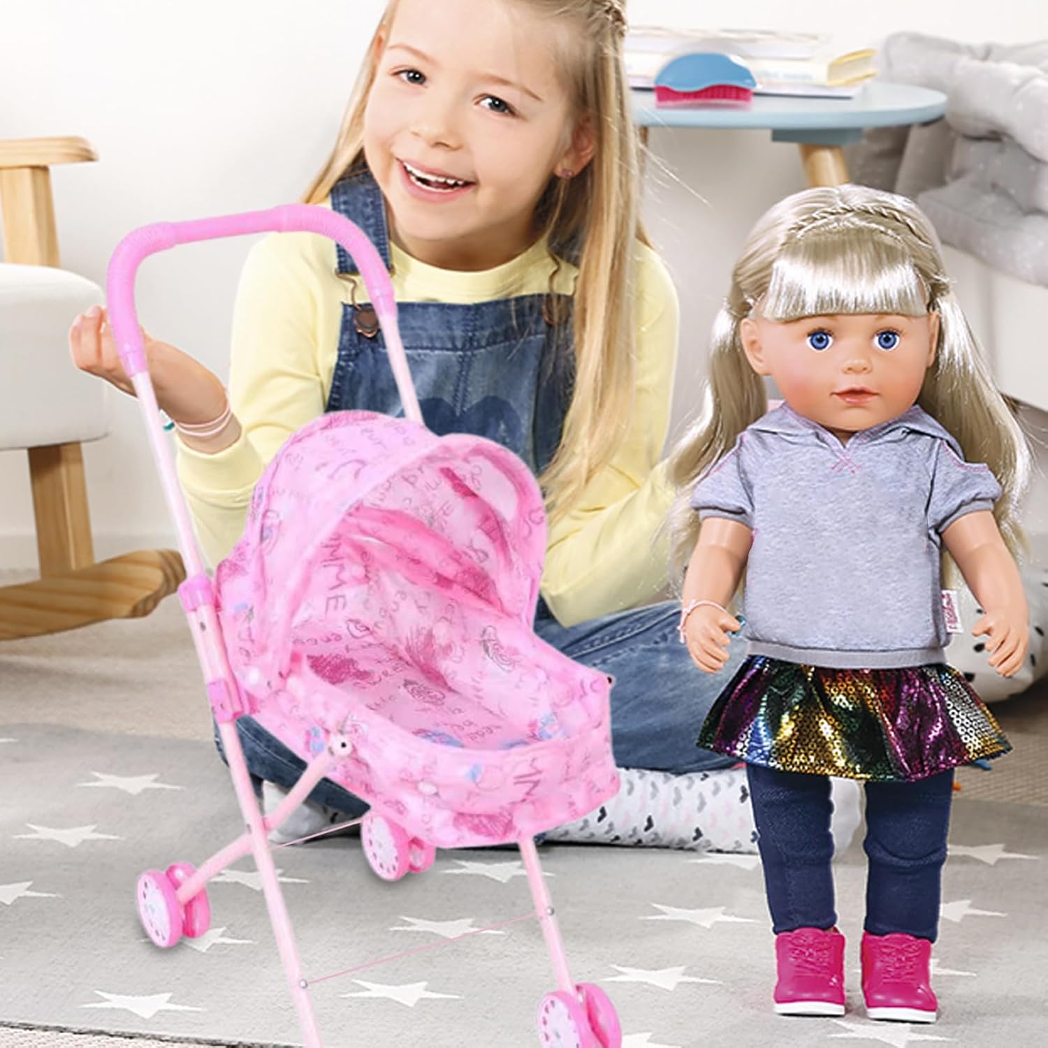 Fai finta di giocare divertente: incoraggia il gioco di ruolo fantasioso mentre i bambini spingono le loro bambole in questo passeggino pieghevole, per casa, scuola, viaggi, feste o attività all'aperto durante lo sviluppo di abilità sociali e motorie Design pieghevole: leggero e facile da trasportare, questo passeggino giocattolo si piega per lo stoccaggio compatto e il trasporto senza sforzo, rendendolo ideale per i bambini che amano portare le loro bambole preferite in viaggio o visite Scelta regalo perfetta: ideale per ragazzi e ragazze dai 3 anni in su, questo passeggino per bambole fa un regalo di compleanno, vacanze o feste ponderato, incoraggiando il gioco creativo, l'interazione sociale e le abilità di educazione mentre sono in viaggio o a casa Protezione al baldacchino: presenta un baldacchino regolabile per proteggere le bambole dalla luce o offrire un'esperienza di passeggino realistica, migliorare il gioco di ruolo e rendendolo un ottimo accessorio per i pretendenti viaggi, le feste o l'uso casuale di casa Durevole e sicuro: realizzato con materiali per bambini, cornice robusta e ruote a rotolamento liscio, garantendo ore di gioco sicuri, sostenendo in modo sicuro le bambole durante le avventure di gioco sia all'interno che all'esterno