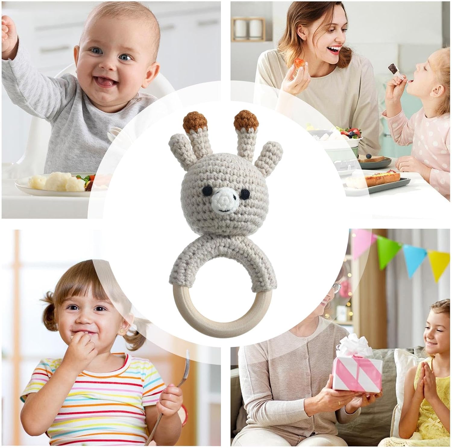 Comfort incrociato a mano: realizzato con precisione per affascinare e intrattenere, offrendo un'aggiunta distintiva e affascinante ai must-have del tuo bambino Esperienza di gioco interattiva: realizzato con colori vivaci e affascinanti disegni di animali, questo baby -bocchetto in legno offre un'esperienza di gioco interattiva che affascina e delizia i sensi Materiale robusto: il design a misura di bambino promuove lo sviluppo delle abilità motorie attraverso anelli di legno facili da formare, garantendo la salute sicura e la crescita dello sviluppo Uso ampio: abilmente realizzati per migliorare il coordinamento occhio-mano, questi giocattoli funzionano anche come agenti rilassanti, incoraggiando i bambini a afferrare, toccare ed esplorare, rafforzando così lo sviluppo sensoriale Presente gioioso: adatto a nuovi genitori e bambini, rendendolo meraviglioso per i regali per bambini, regali di luna piena o celebrazioni di compleanno. I colori vivaci e le trame stimolano lo sviluppo sensoriale