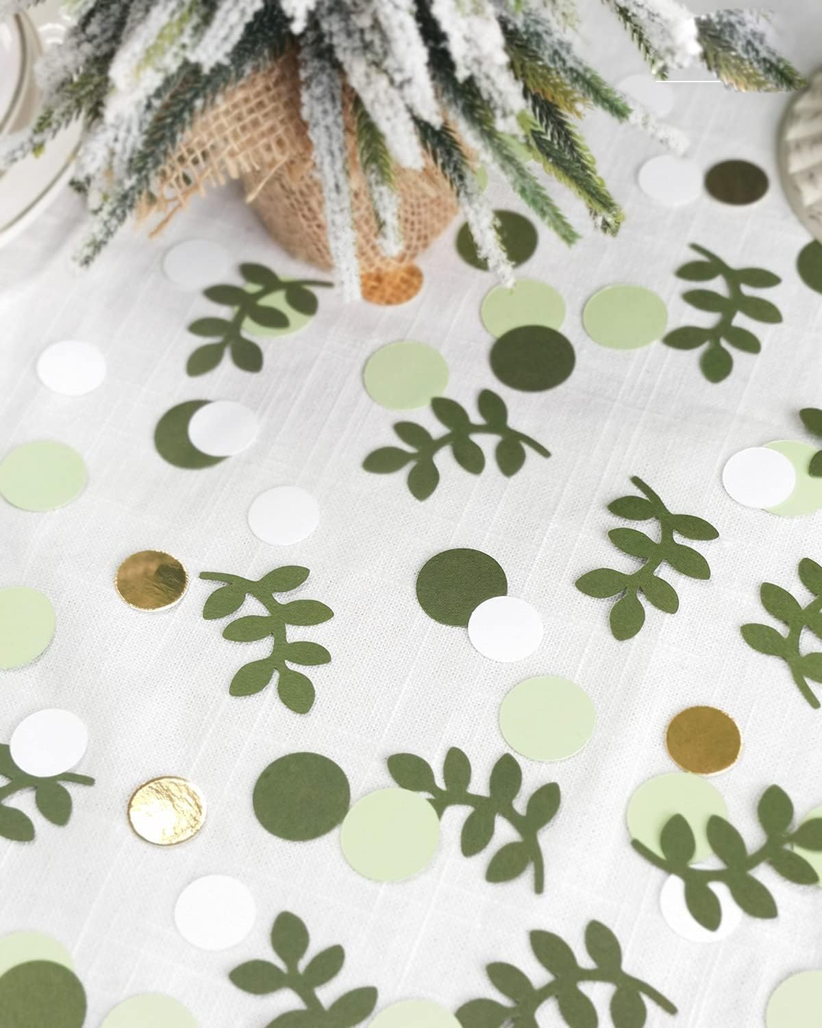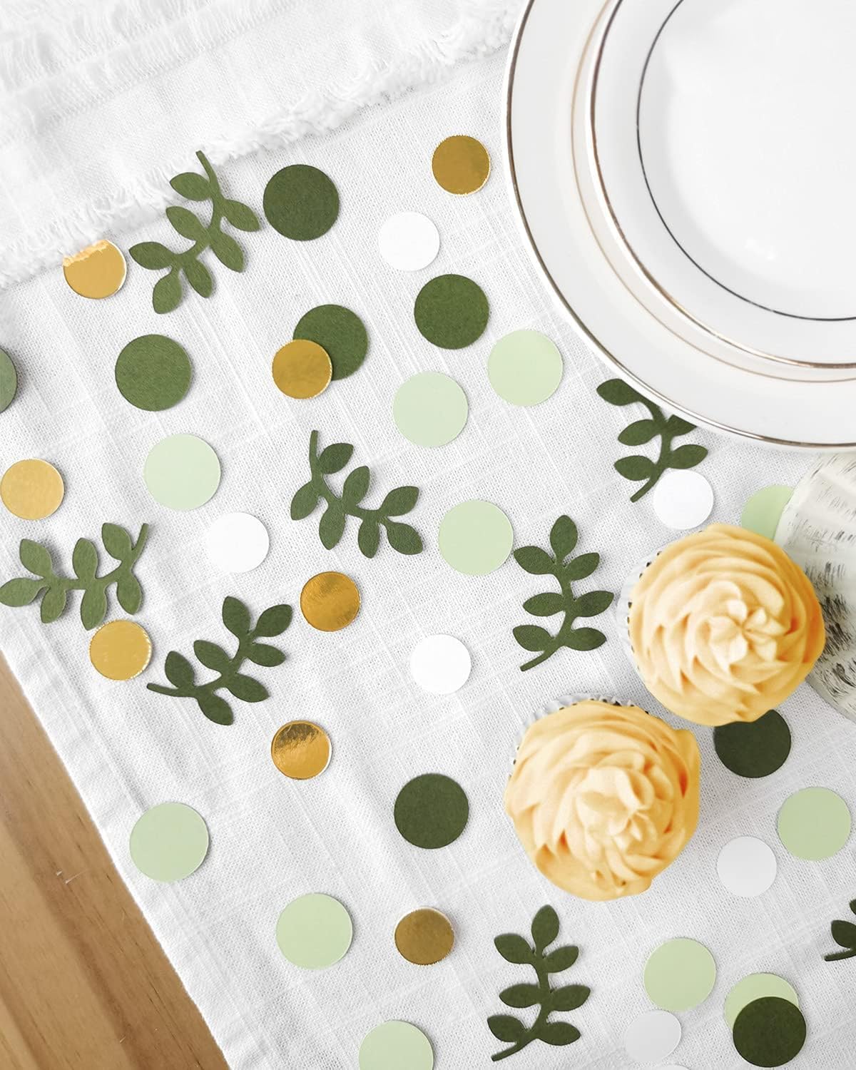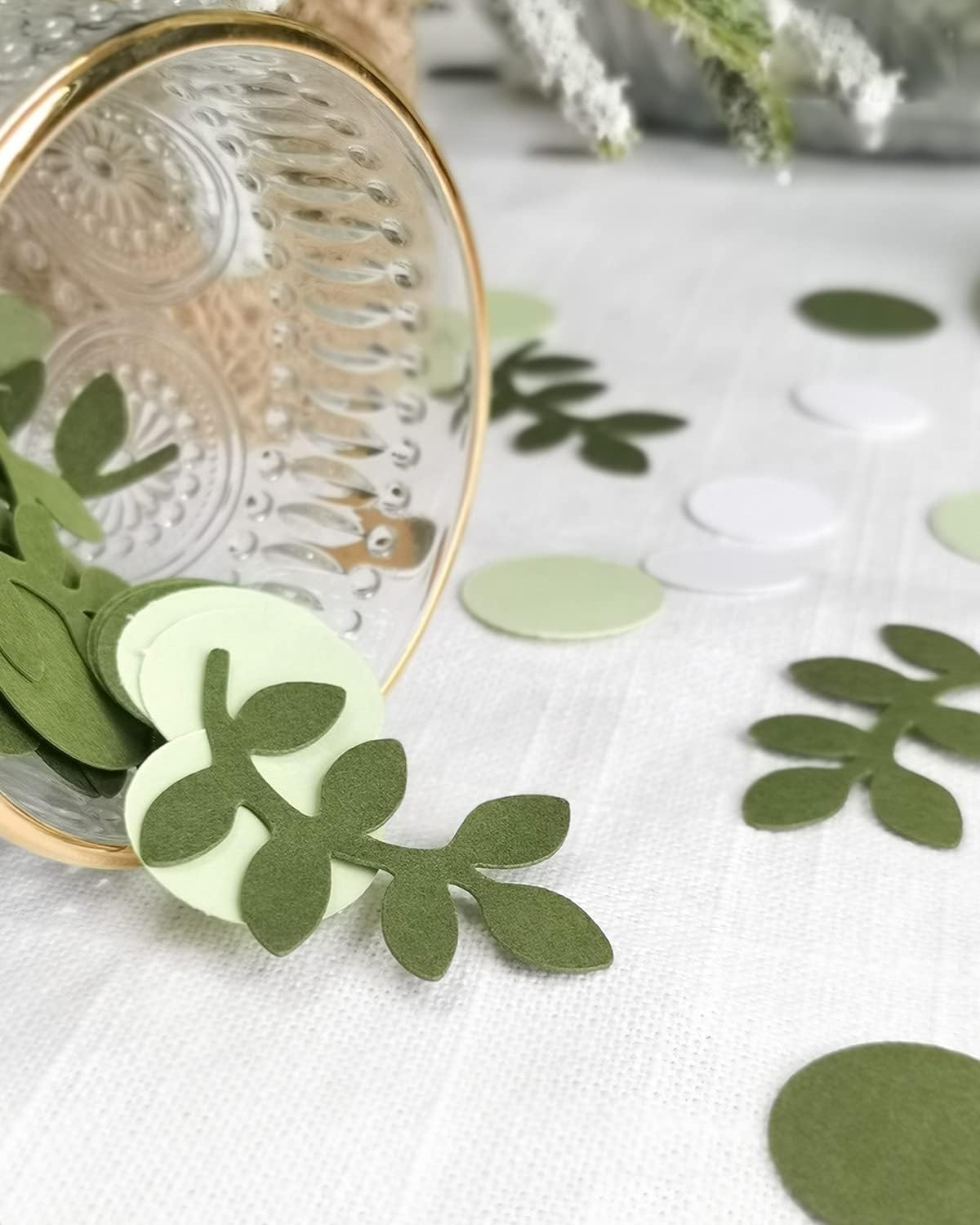 I coriandoli dorati sono realizzati con cura e attenzione a mano. Materiale: realizzato con carta design di alta qualità. Dimensioni: Cerchio 1; Foglio 2.1. Quantità: ca. 210 pezzi. Porta la tua tavola da festa al livello successivo! Spargi i nostri coriandoli in oro verde di alta qualità al tuo prossimo evento e dai ai tuoi ospiti i dettagli che meritano. Disposizione perfetta del tavolo per il tuo baby shower. Può anche essere utilizzato come abbellimento per i tuoi progetti di artigianato nel verde, creazione di biglietti, inclusa la prenotazione di rottami. Ci saranno tantissime decorazioni, inviti e persino album! Abbiamo varie decorazioni per ghirlande di coriandoli disponibili per il baby shower