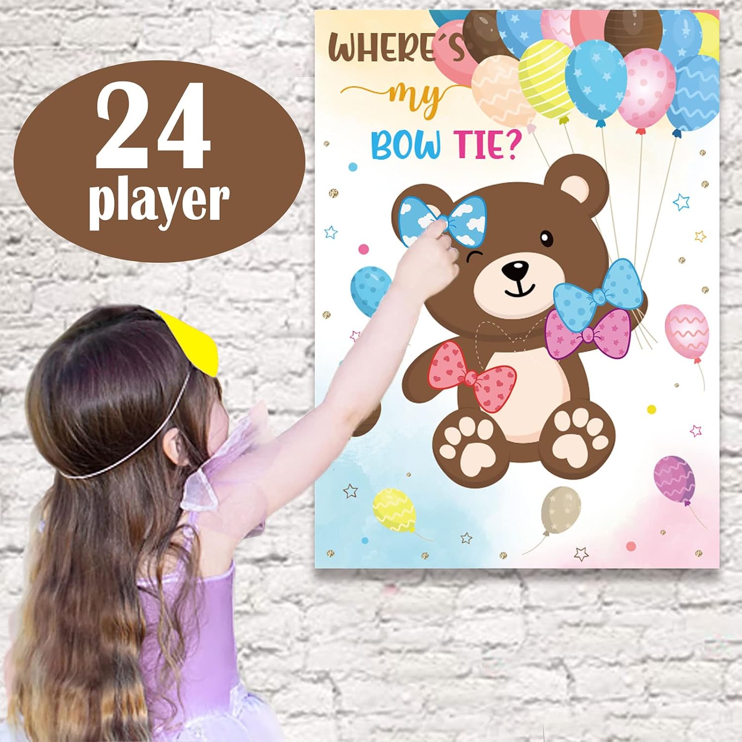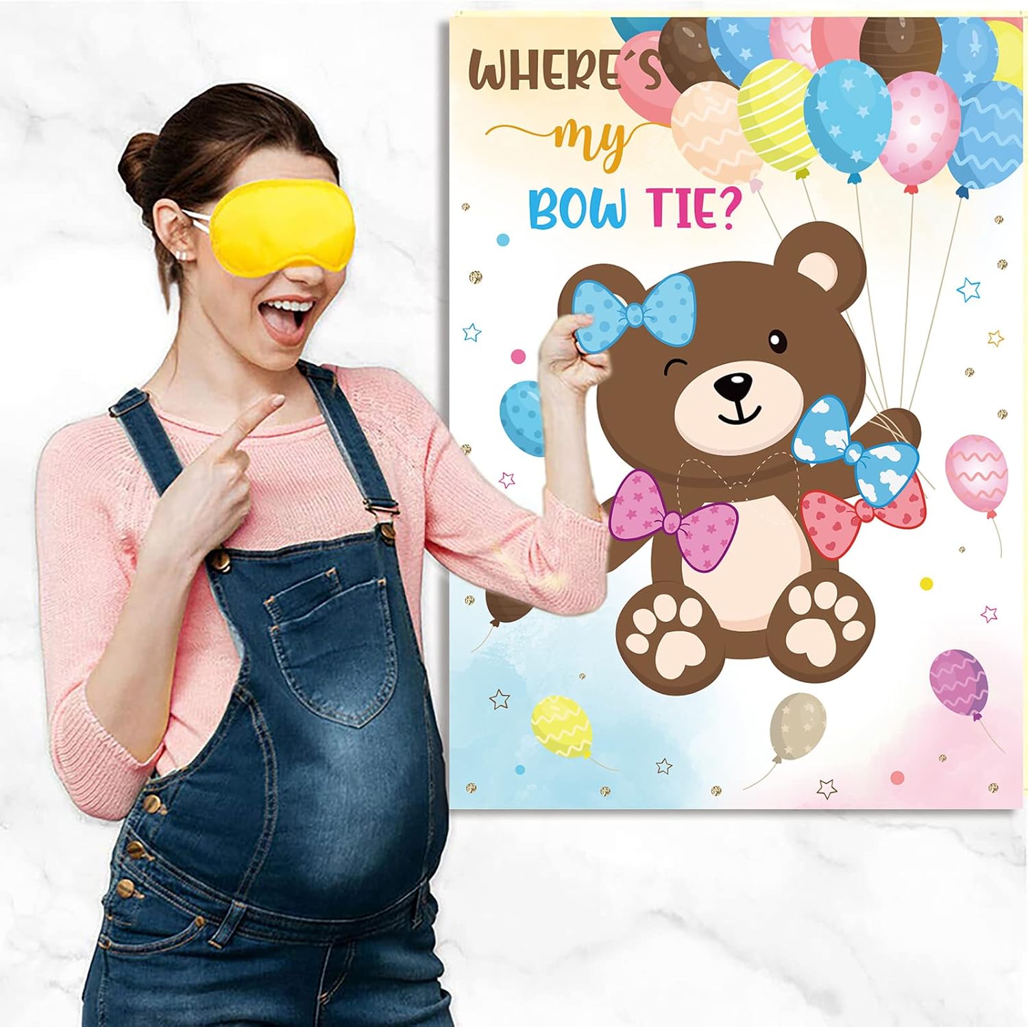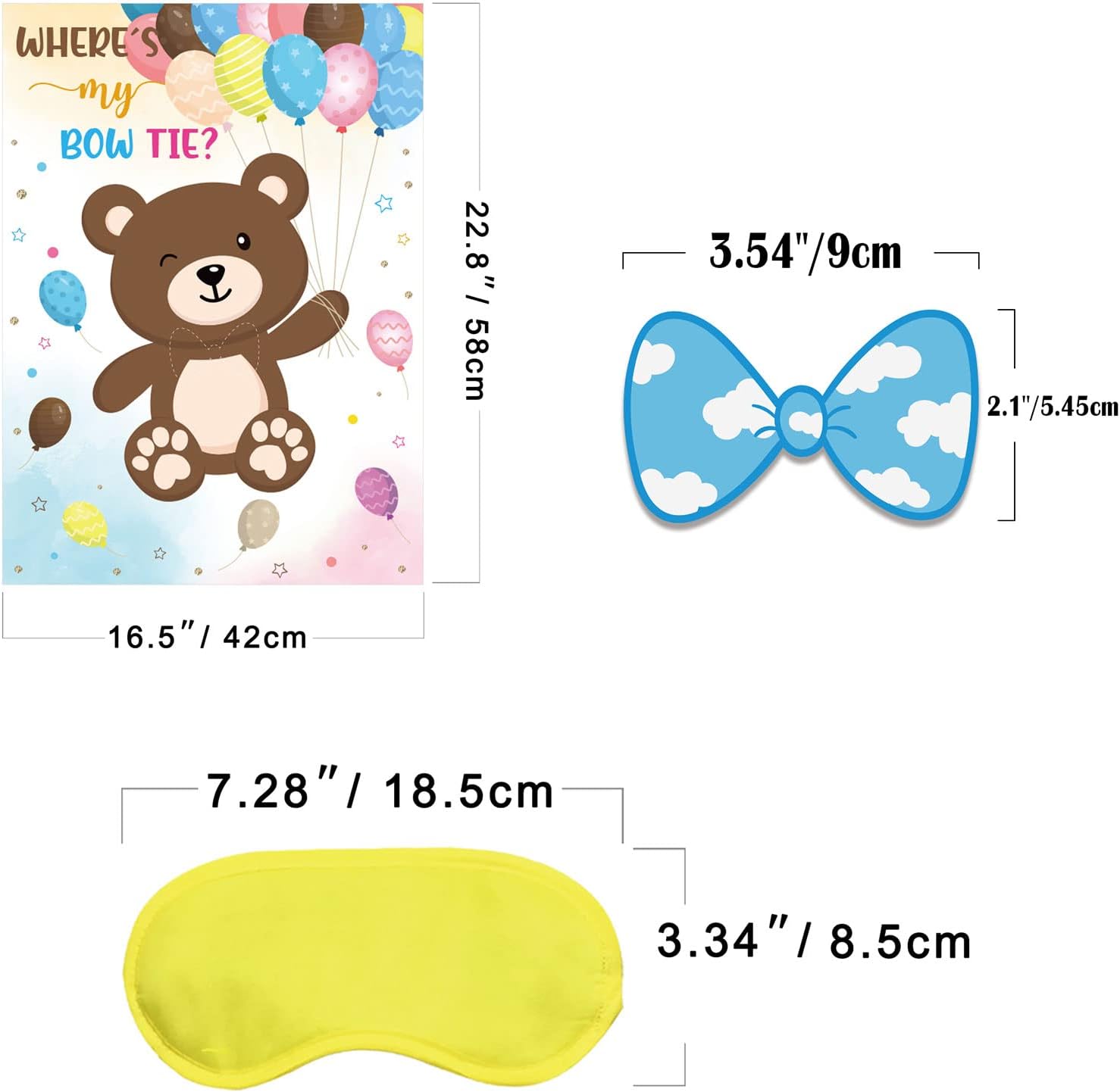 Applicazioni: grande successo per baby shower party o festa di compleanno. Può anche servire come decorazioni per la casa, decorazioni da parete, decorazioni per la stanza. La confezione include: 1 poster (57 x 41 cm), 1 mascherina per gli occhi, 24 adesivi con fiocco e 1 carta a pois adesivi. Pin The Bowknot Baby Shower Game. Divertente design dai colori vivaci, per feste di baby shower. giocare? Indossa la mascherina, prendi un adesivo con fiocco e fissa il poster, chi è più vicino, chi Gli adesivi sono rimovibili e riutilizzabili. I giocatori possono scrivere il nome sugli adesivi bowknot.