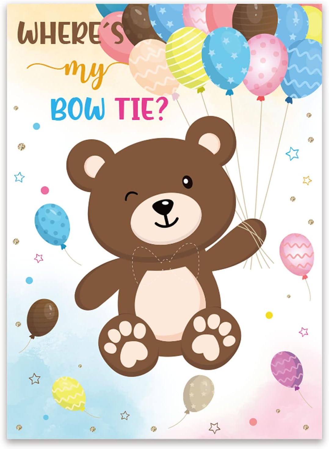 giocare? Indossa la mascherina, prendi un adesivo con fiocco e fissa il poster, chi è più vicino, chi Applicazioni: grande successo per baby shower party o festa di compleanno. Può anche servire come decorazioni per la casa, decorazioni da parete, decorazioni per la stanza. Pin The Bowknot Baby Shower Game. Divertente design dai colori vivaci, per feste di baby shower. Gli adesivi sono rimovibili e riutilizzabili. I giocatori possono scrivere il nome sugli adesivi bowknot. La confezione include: 1 poster (57 x 41 cm), 1 mascherina per gli occhi, 24 adesivi con fiocco e 1 carta a pois adesivi.