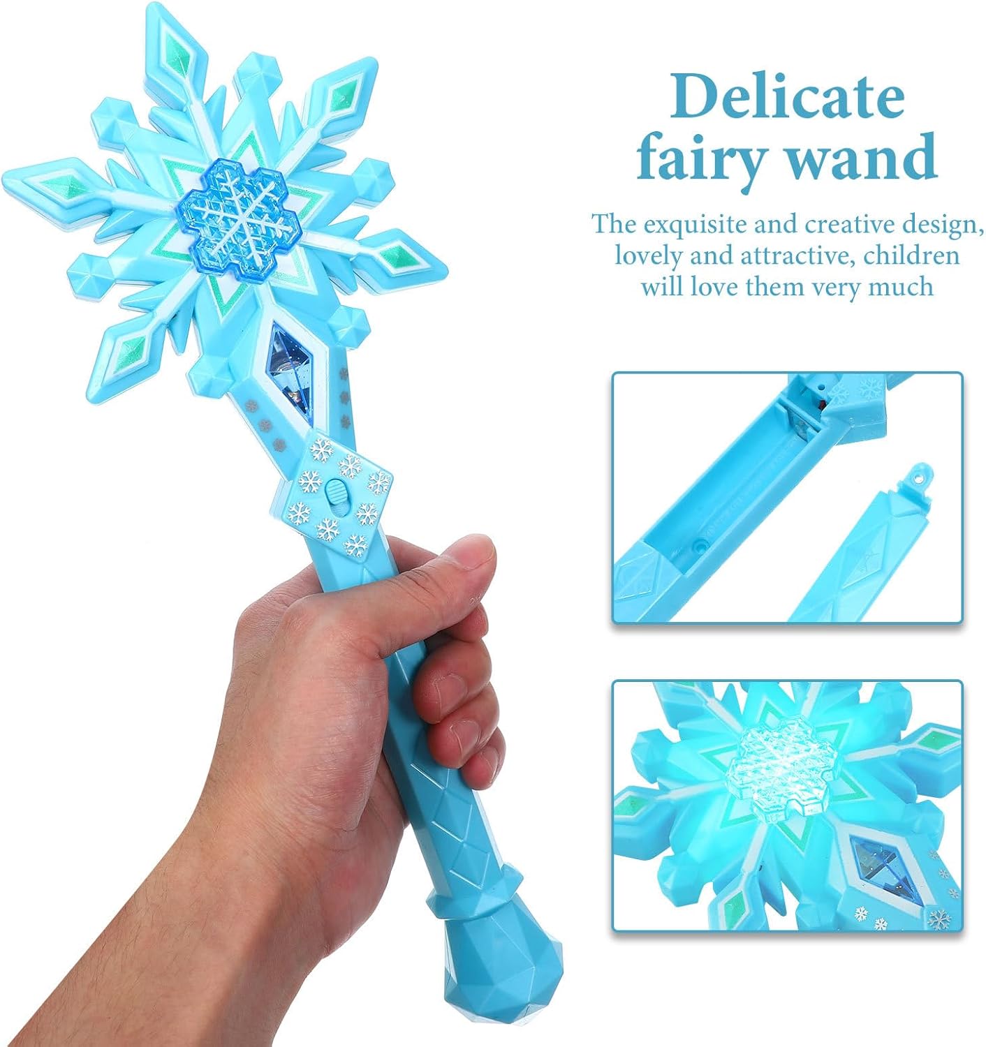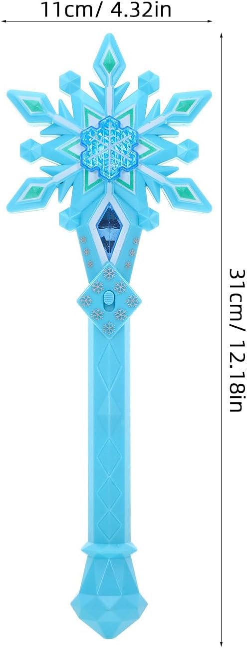 Adorabile design a fiocco di neve luminoso. Presenta una punta a forma di fiocco di neve dal design accattivante che brilla con magici effetti luminosi, offrendo un fascino visivo affascinante durante spettacoli ed eventi. Materiale ABS di qualità professionale Realizzata in plastica ABS di alta qualità che garantisce durata e facilità d'uso, rendendola adatta per un uso prolungato durante le esibizioni. Dimensioni ottimali per le prestazioni: misurando 31 x 11 x 3,5 cm, questa bacchetta offre una presenza significativa e un'eccellente visibilità pur mantenendo un equilibrio confortevole e una facile maneggevolezza. Comoda alimentazione a batteria con 2 batterie AA (non incluse) per libertà di movimento wireless e utilizzo ininterrotto durante spettacoli ed eventi. Applicazione tematica versatile. Ideale per spettacoli teatrali, feste in costume, servizi fotografici e mostre decorative. L'accessorio perfetto per varie occasioni a tema magico.