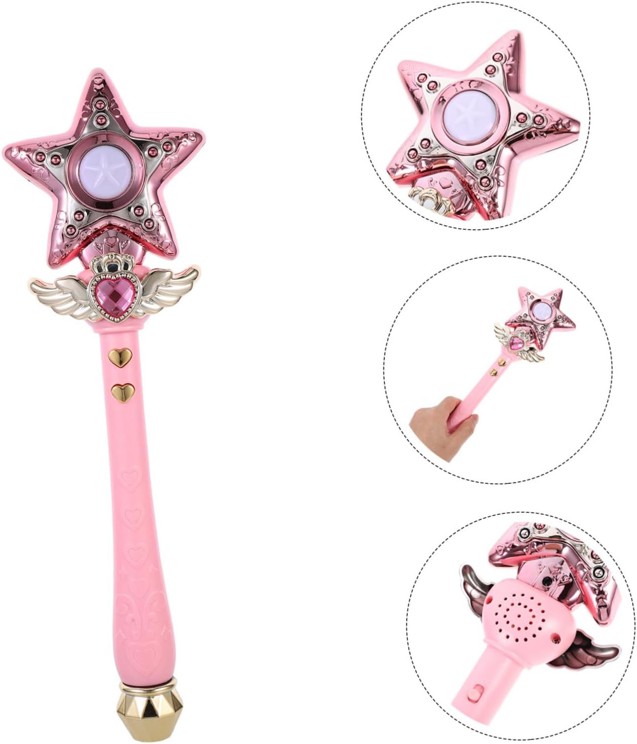 Rotante: la funzione rotante garantisce ulteriore eccitazione e dà ai bambini la sensazione di far parte di un mondo, bacchetta magica, bacchetta rotante per eventi: ideale per eventi come feste di compleanno e feste di famiglia, dona ad ogni occasione un tocco speciale e divertente, bacchetta musicale, funzione rotante del bastone dello scettro: la funzione rotante offre un'esperienza unica e la rende più emozionante ed emozionante. bastone luminoso per giochi di ruolo Materiali: realizzato con materiali che garantiscono un ambiente adatto ai bambini, bacchette magiche con stelle, costume da re Funzione rotazione: la funzione rotazione aggiunge un elemento dinamico e incantevole al gioco e fa sentire i bambini come se lanciassero un vero bastone reale o un bastone pentagramma