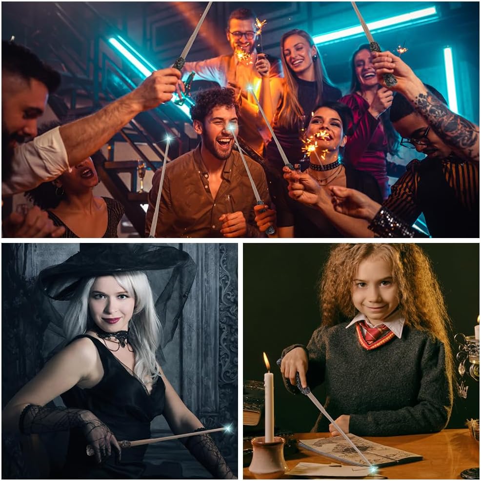 Contenuto: 1 bacchetta magica, 1 biglietto, 1 collana, 1 caricatore, 1 foglio istruzioni, 1 card, 1 porta bacchetta magica nera. Dimensioni: 36 cm. Confezionate in un'attraente confezione regalo, le nostre bacchette magiche offrono un ottimo rapporto qualità-prezzo. Riproduzione di dimensioni perfette per farti sentire come se fossi nella scena di un film. Immergiti in loro e senti di cosa si tratta. Bacchetta magica con luce: la nostra bacchetta magica è dotata di luce, il pulsante nascosto sul muro attiva la punta luminosa, pronta per battaglie con la bacchetta o ripetizione di incantesimi. Ogni bastoncino giocattolo è lungo 36 cm e l'impugnatura ergonomica è comoda e facile da impugnare. Realizza piccoli sogni magici per gli adulti e portali nel mondo magico Materiale premium: la bacchetta magica è realizzata in resina, con lavorazione squisita, il corpo ha un tubo d'acciaio cavo incorporato, che rende la bacchetta magica stabile e durevole e dà anche una sensazione pesante quando viene rimossa dalla mano, facile da sbiadire, non si rompe facilmente come al solito con la plastica ed è durevole. Accessorio ideale per il costume: i dettagli della bacchetta magica sono realistici, ogni trama è accuratamente progettata e altamente restaurata, può creare meglio un'atmosfera piacevole, lasciare che i giocatori si immergano come se entrassero personalmente nel mondo magico. Le bacchette magiche sono i dettagli che rendono speciale il tuo outfit, rendendolo unico e personalissimo. Ampia applicazione: le nostre bacchette magiche sono adatte a tutte le occasioni, possono essere utilizzate per Halloween, Natale e Mardi Gras, possono anche essere utilizzate per feste cosplay, alla festa devi essere la presenza più brillante. Può anche essere usato come regalo di compleanno per i tuoi adulti.