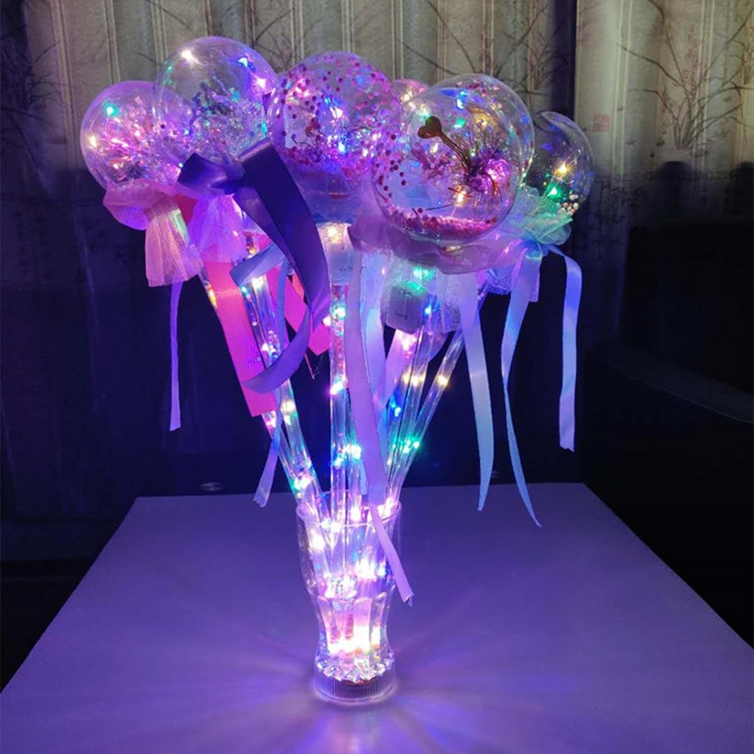 Emana luce colorata al buio: con questa bacchetta magica luminosa il tuo bambino potrà godersi uno spettacolare spettacolo di luci al buio. È dotato di luci LED colorate che lampeggiano e brillano, conferendogli un aspetto fiabesco e incantevole. Stili diversi: i bambini possono scegliere tra molte forme in base alle loro preferenze, come ad esempio: B. Farfalle, bambole, quelle ricoperte di zucchero, cuori, stelle a cinque punte, ecc. Queste bacchette possono illuminarsi e creare un'atmosfera festosa per gli alberi di Natale. Funzionamento pratico: premendo rapidamente un pulsante su questa bacchetta magica, i bambini possono attivare o disattivare l'effetto di luce radioso e scintillante. È un giocattolo semplice e divertente per bambini di tutte le età. Giocosa e creativa: questa bacchetta magica luminosa ha un duplice scopo e può essere utilizzata come giocattolo o oggetto di scena per varie occasioni come festival, feste, spettacoli e altro ancora. Sicuro e inodore: i materiali utilizzati per questa bacchetta magica luminosa non sono irritanti e innocui per la pelle. Inoltre sono inodori e sicuri, così potrai divertirti con la fata senza odori sgradevoli o rischi.