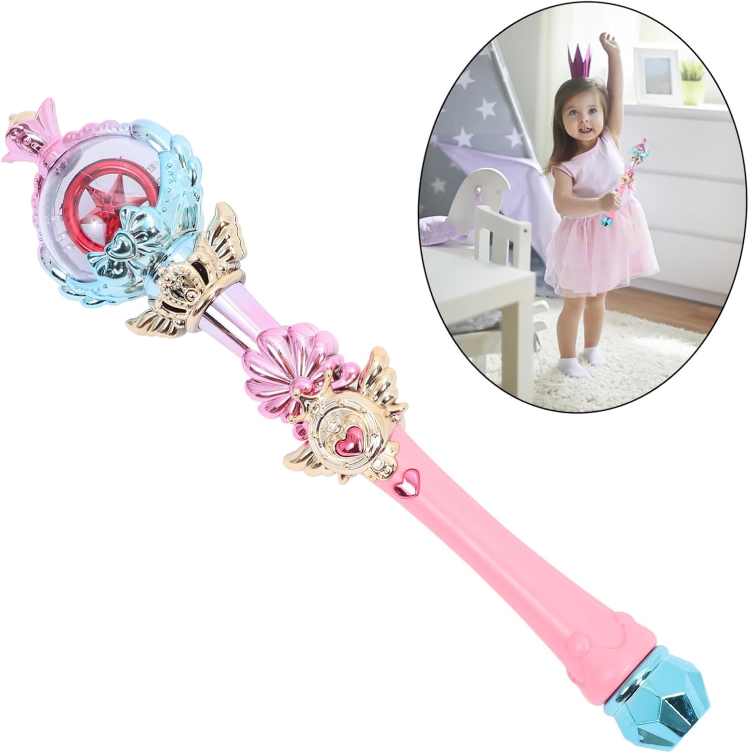 Bacchetta magica per ragazze - bella e pratica, leggera e liscia, facile da impugnare, offre intrattenimento, bacchetta magica con scettro e bacchetta magica - e può tenerla facilmente. È molto comoda ed è una bacchetta magica, una bacchetta luminosa per ragazze - è dotata di luci e musica in diversi colori, in modo che le ragazze possano brillare di colori alla festa Bacchette colorate luminose - questa bacchetta magica è molto adatta per fate, fate, elfi alle feste di Halloween o altri festival, bacchetta magica per bambini Bacchetta giocattolo - questa bacchetta magica luminosa è leggera e facile da usare e riporre. bacchetta magica decorativa