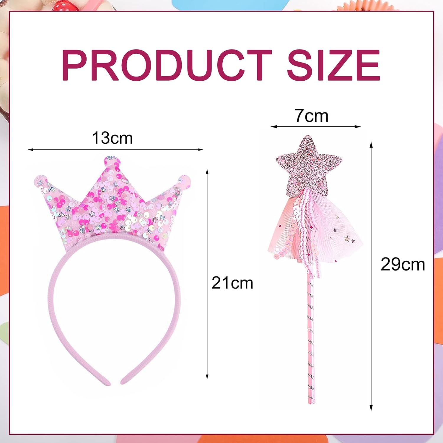 Contenuto della confezione: riceverai 1 cerchietto + 1 bacchetta magica a forma di stella. Il cerchietto è realizzato in tessuto lucido con paillettes, ha la forma di una corona e brilla come diamanti. Ogni bacchetta magica a forma di stella ha uno speciale design con frange. Con questo giocoso set di bacchette magiche puoi trasformare le bambine nelle loro principesse preferite. Dimensioni adeguate: il cerchietto ha un diametro di circa 11,5 cm e un'altezza di 80 cm. La bacchetta a forma di stella è lunga circa 12 pollici. Adatto a donne e ragazze, alla moda ed elegante. Comodo da indossare: questo cerchietto pesa solo 31 grammi, è leggero e resistente. È durevole e comodo anche se indossato per lungo tempo. La larghezza del cerchietto può essere regolata in base alla forma della testa. La nostra bacchetta magica da principessa è realizzata in tessuto di alta qualità, facile da trasportare e riporre e non sbiadisce né si deforma facilmente. Versatile: versatile per feste di compleanno, matrimoni, giochi di ruolo, sfilate, Natale, come accessorio per foto o Halloween. Design alla moda: il design con paillettes scintillanti si abbina facilmente ad abiti e acconciature festosi e aggiunge un tocco di fascino in più al tuo look.