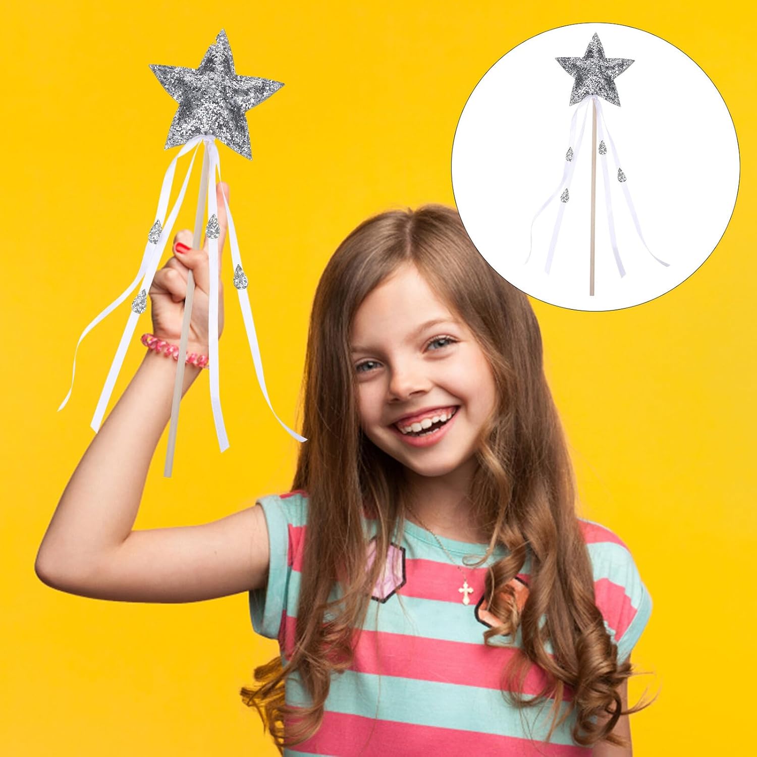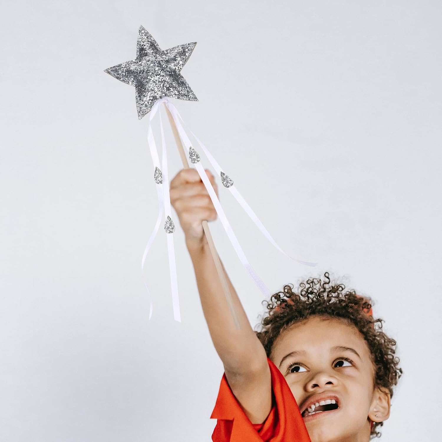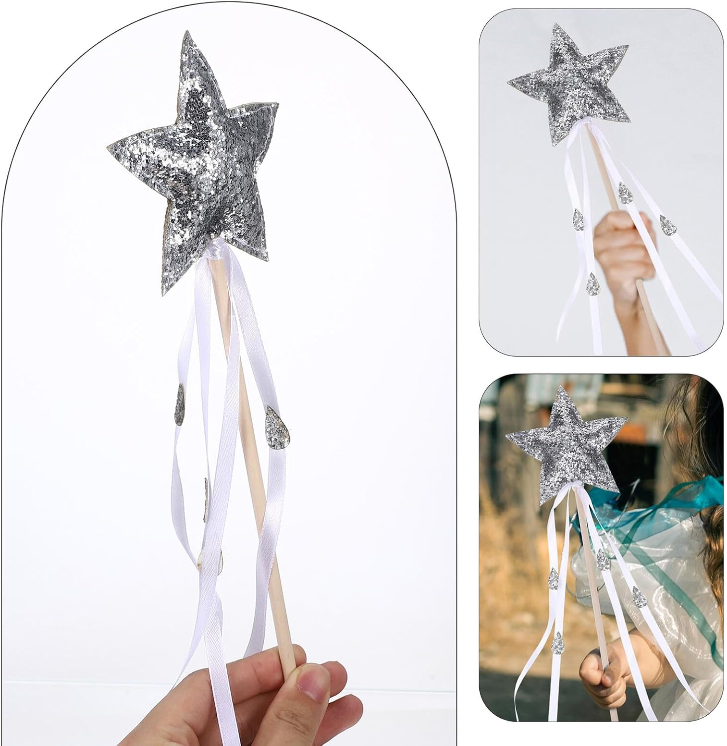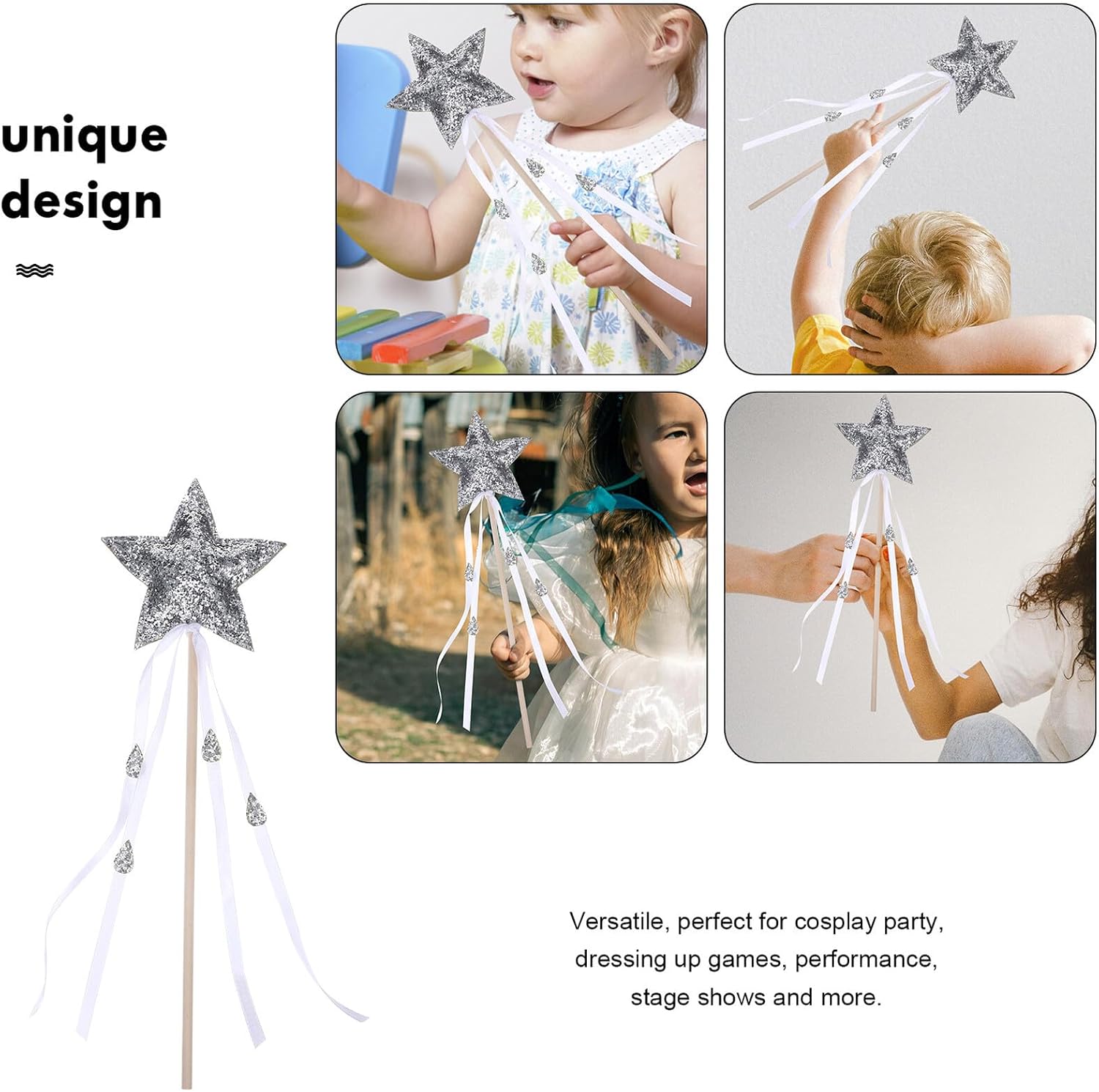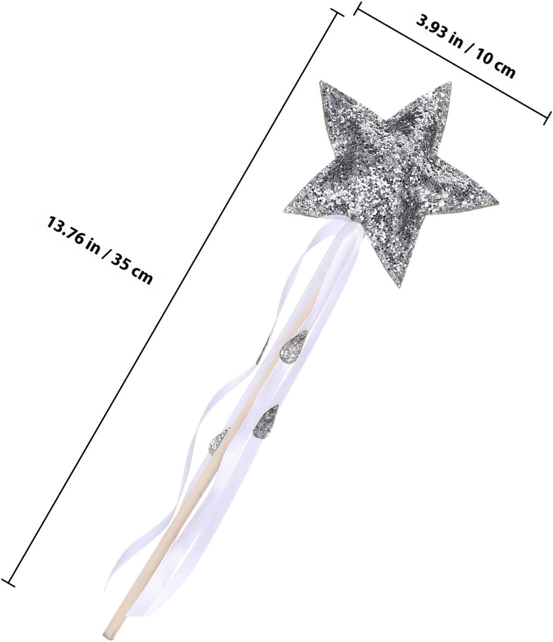 Bacchetta magica: bacchetta magica ben fatta fatta di nastro, progettata per creare un'atmosfera speciale che ti piace, bacchetta magica per le feste Bacchette glitterate: con questa bacchetta magica decorativa e originale a forma di stella puoi distinguerti alla festa Bacchette magiche: fatte di tessuto e legno, leggere, con buona fattura, bacchette magiche delle stelle Bacchette magiche da principessa: questa bacchetta magica è molto adatta per fate, fate, elfi, feste di Halloween o altri festival, bacchetta magica bacchetta magica con fiocco: tu e la tua famiglia potete facilmente tienilo, che è comodo ed è un accessorio da star
