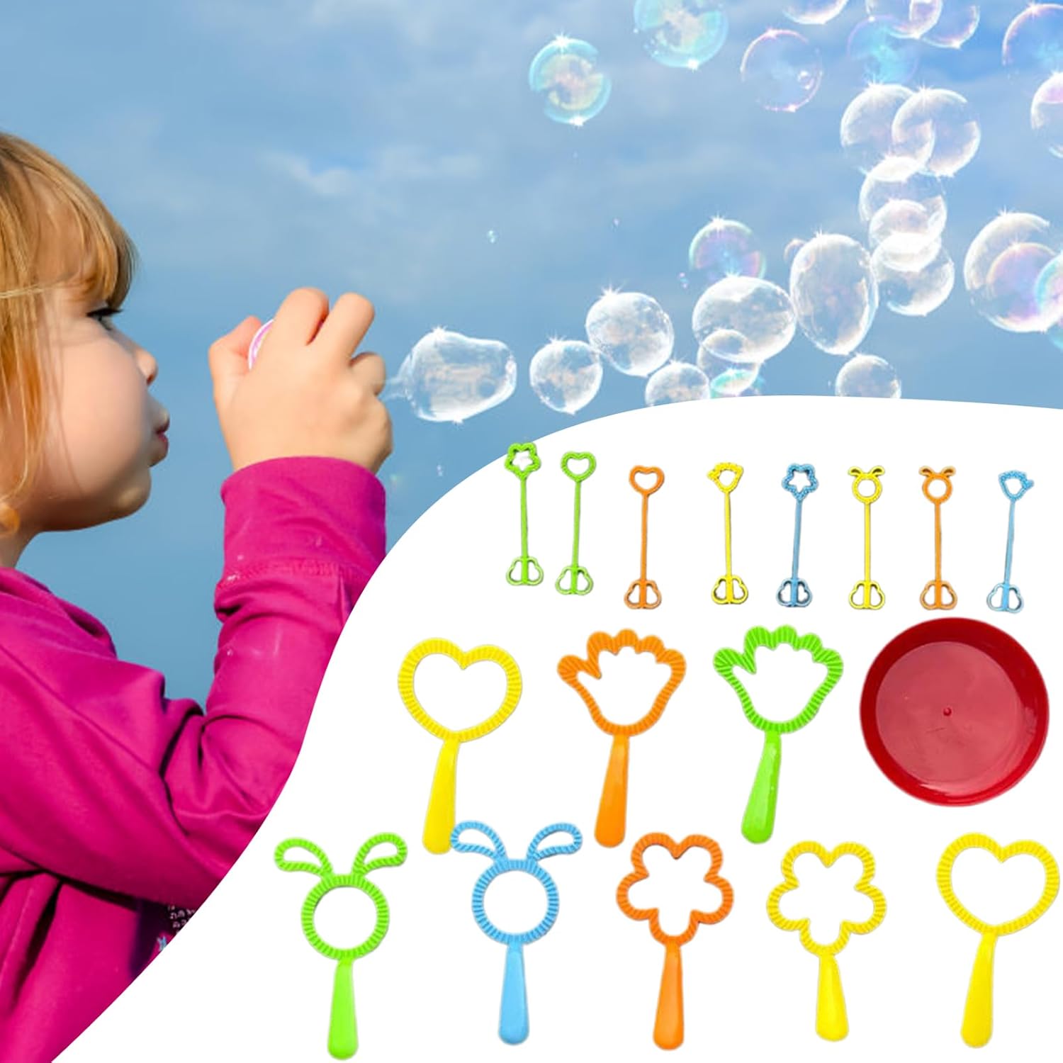 Struttura : Bordi perfettamente lisci e materiale indeformabile assicurano stabilità durante l'uso, ideale per creare bolle senza sforzo Vassoio Soluzione Bolle: Dotato di pratico contenitore integrato per la soluzione e impugnatura anatomica, permette di creare bolle in modo continuativo senza interruzioni, ideale per giochi prolungati in spiaggia o giardino con presa salda e controllo preciso Attività per famiglie: Rafforza le relazioni attraverso sessioni di gioco interattivo con la bacchetta , che rende più piacevole il all'aperto sviluppando abilità motorie e cognitive in modo naturale Adatto a tutte le età: Gamma completa di dimensioni per soddisfare bambini dai 3 anni in su, con di produzione bolle affidabile e impugnatura anatomica per ore di divertimento outdoor Divertimento collettivo: 17 diversi accessori con forme floreali e cuoricini ideali per attività di gruppo, progettati per ispirare creatività e garantire momenti di gioco condiviso