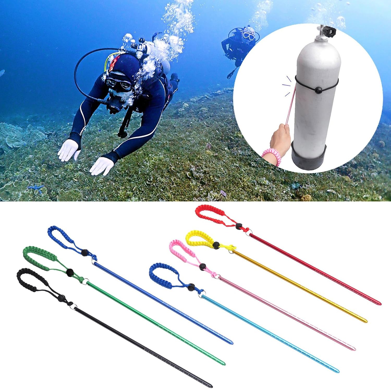 Bastone da immersione: questo bastone puntatore adatto per utilizzare creature sconosciute per proteggersi e fare rumore per attirare l'attenzione delle persone circostanti quando sei in persone rischiose Regolabile: con nodo regolabile cinghia da polso per regolare il miglior comfort, facile da agganciare e trasportare. Si può tenere intorno al polso Misurazione più semplice: produttore di rumore sommergibile si attacca con una scala di 15 cm, il bastone è possibile regolare la lunghezza di pesci, rocce e semplicemente più sotto l'acqua Uso versatile: ti aiutano a muoverti attraverso il fondo del mare e ben sottoposto a principianti o professionisti, ottimi accessori per immersioni, snorkeling e sport di esplorazione Solido e durevole: l'asta è realizzata in materiale di alluminio 6061, leggero, anti deformazione, durevole e resistente alla corrosione in acqua salata. Pertanto, molto comodo e pratico, facile da capire