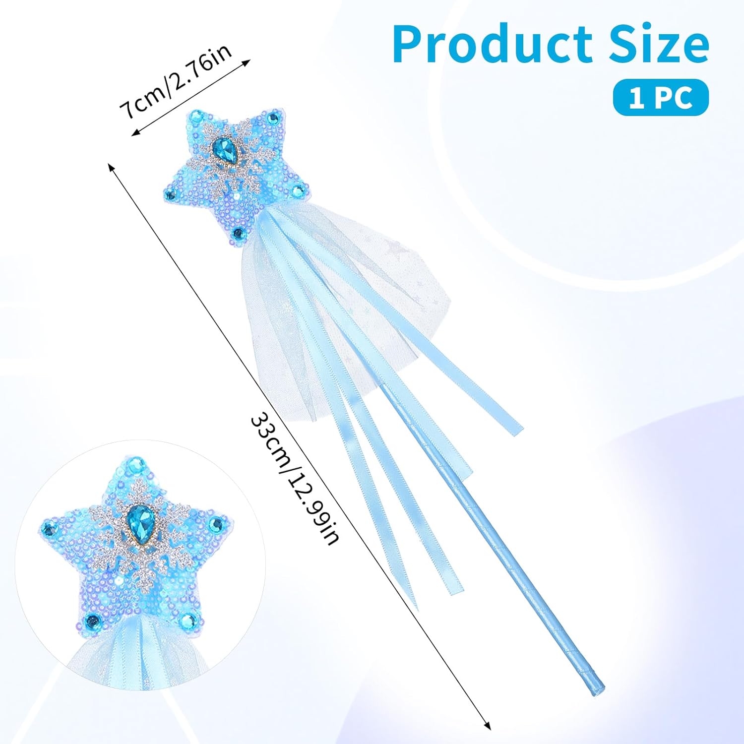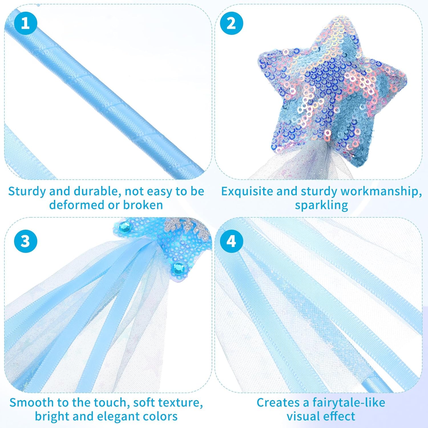 Cosa ottieni: riceverai una stella blu lunga 33 cm, inclusa una blu e una blu. Le nostre aste da principessa possono creare un look meraviglioso, e puoi personalizzare il tuo look a tuo piacimento. MATERIALI DI ALTA QUALITÀ Questo bastone da fata blu è realizzato in poliestere di alta qualità, con una superficie liscia che non danneggia le mani e la finitura colorata aggiunge un tocco di eleganza, rendendoti ancora più delicato e bello quando ti vesti. Design affascinante: la nostra bacchetta da fata blu è decorata con paillettes luccicanti e nastri morbidi, e al centro c'è un diamante che crea un'atmosfera da sogno ed effetti visivi fiabeschi. Accessori per costume: la nostra bacchetta da fata blu è perfetta per travestimenti e giochi informali, adatta per piccole principesse, fate, ballerini, accessori per costumi di Halloween, abbina il bastone con costumi da principessa e accessori per creare un look meraviglioso ed essere ancora più affascinante. Multiuso: l'asta delle fate è adatta per una varietà di occasioni festive, tra cui feste a tema principessa, matrimoni, feste di Halloween, feste di compleanno, giochi di ruolo di Natale e giochi di ruolo in costume da principessa. Queste bacchette sono ideali anche per travestimenti, giochi di ruolo e come accessori per spettacoli di danza o spettacoli di vacanza.