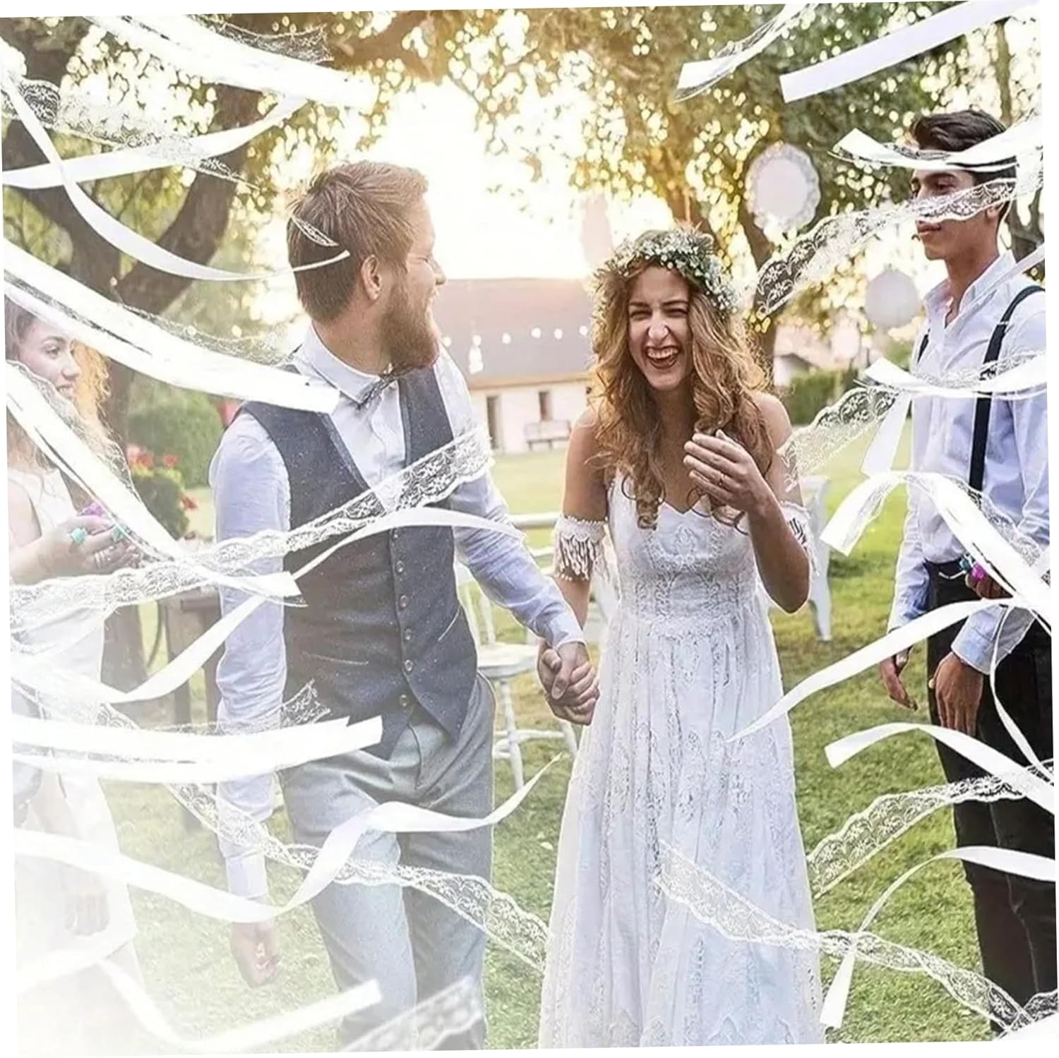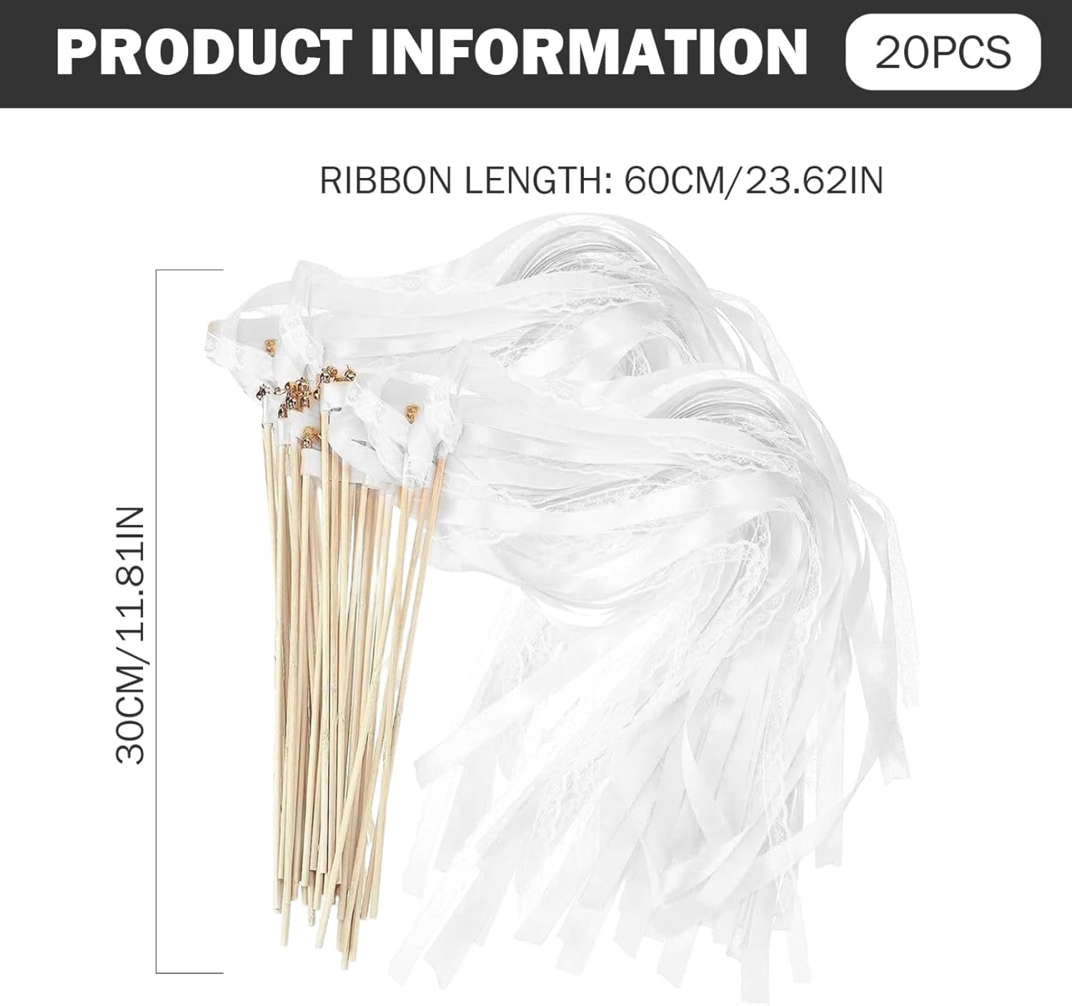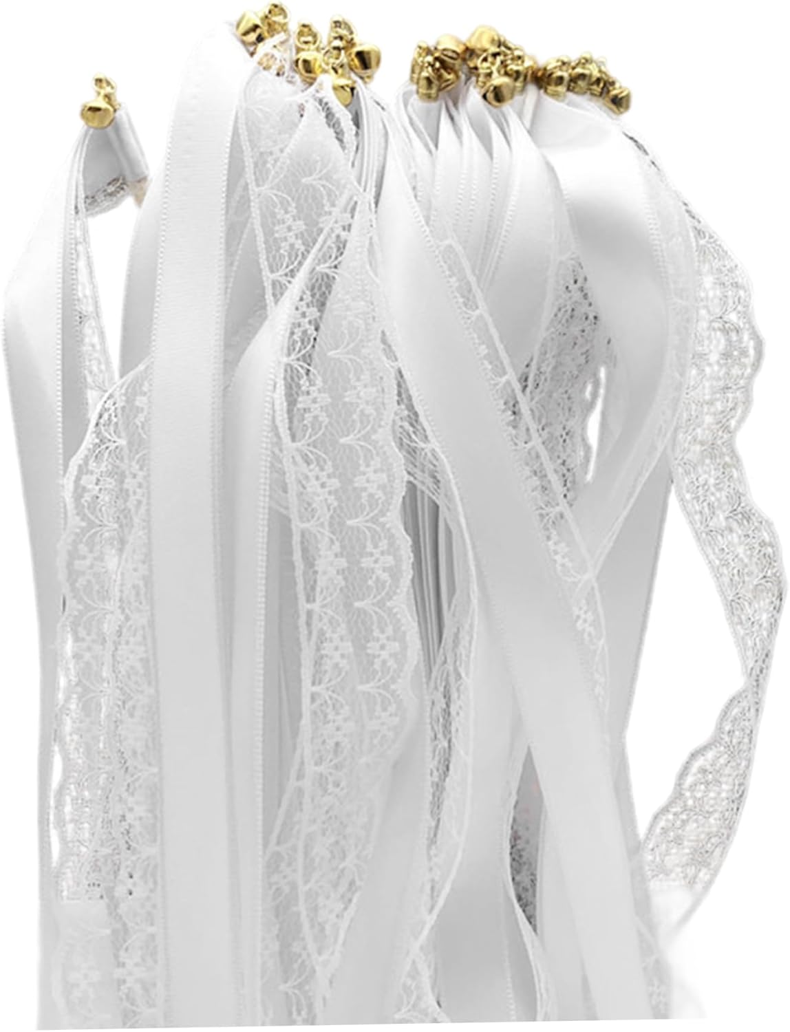 Elegante arredamento per matrimoni: queste bacchette per matrimoni da 20 pezzi presentano delicati pizzo bianco e streamer a nastro di seta che scorre, aggiungendo un tocco aggraziato e romantico a qualsiasi cerimonia o ricevimento di nozze..Perfetto per creare momenti fotografici memorabili e migliorare l'arredamento del tuo locale con fascino elegante. Bomboniere di nozze perfette: leggeri e facili da gestire, questi bastoncini a nastro rendono bomboniere ponderate e pratiche che i tuoi ospiti ameranno..Il sottile jingle della campana d'oro aggiunge elementi sensoriali unici, creando un'atmosfera gioiosa. Facile da usare e archiviazione: dimensioni comode e realizzate per essere robuste ma leggere, queste bacchette di nozze sono semplici da distribuire e archiviare, consentendo l'uso senza sforzo durante il tuo evento e dopo l'imballaggio facile per i ricordi. Materiali di qualità premium: realizzati con nastri bianchi morbidi, intricati pizzo e campane dorate, ogni bacchetta è progettata per la durata e una sensazione lussuosa, garantendo che i tuoi accessori per matrimoni rimangano belli e funzionali durante il giorno e oltre. Accessori per feste versatili: ideale per varie occasioni tra cui matrimoni, docce nuziali e feste, queste bacchette a nastro doppiano come divertenti oggetti di scena da ballo, consentendo agli ospiti di festeggiare con stile aggiungendo movimenti e colori vivaci al tuo evento.