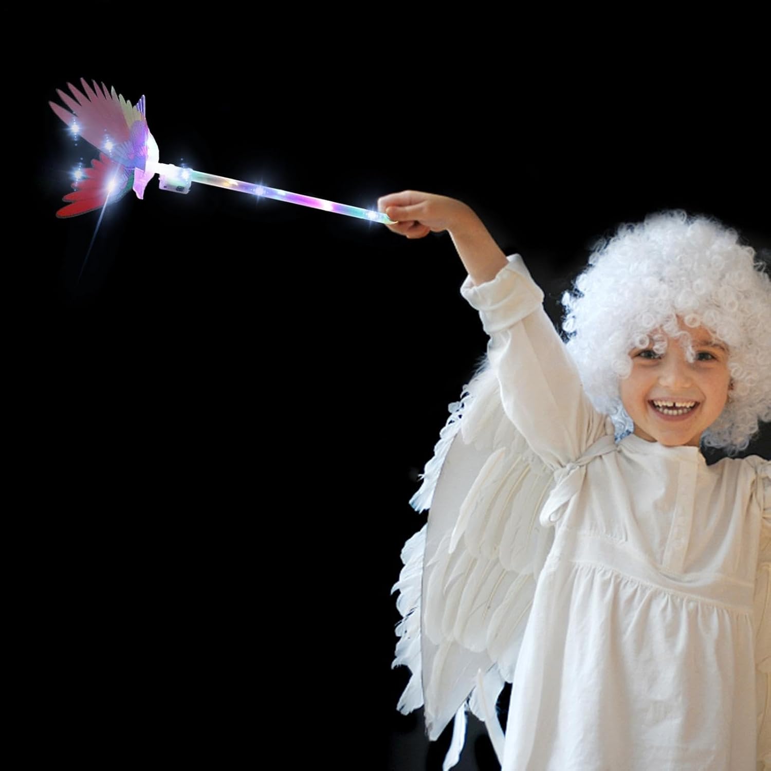 Incantevole bacchetta magica: il tuo bambino adorerà questa bacchetta magica luminosa che può creare uno straordinario bagliore nell'oscurità. Ha luci a LED che cambiano colore e si illuminano intensamente, facendolo sembrare fiabesco e incantevole. Tante forme tra cui scegliere: Che preferiscano farfalle, bambole, ricoperte di glassa o altre forme, i bambini potranno trovare quella ideale per illuminare l'albero di Natale e divertirsi. Facile da usare: premendo il pulsante su questa bacchetta magica, i bambini possono controllare l'effetto della luce che brilla e brilla. È una caratteristica pratica e divertente per i bambini di tutte le età utilizzare questo giocattolo. Creativa e pratica: questa bacchetta magica luminosa è un giocattolo e un oggetto di scena per varie occasioni come festival, feste, spettacoli e altro ancora. Ha diverse modalità di luce che aiutano i bambini a mostrare la loro personalità e creatività. Delicata al tatto: la bacchetta magica luminosa ha una superficie liscia che è innocua per la pelle e i sensi. È realizzato con materiali di alta qualità, inodori e sicuri. Puoi giocare con la fata comodamente e con sicurezza.